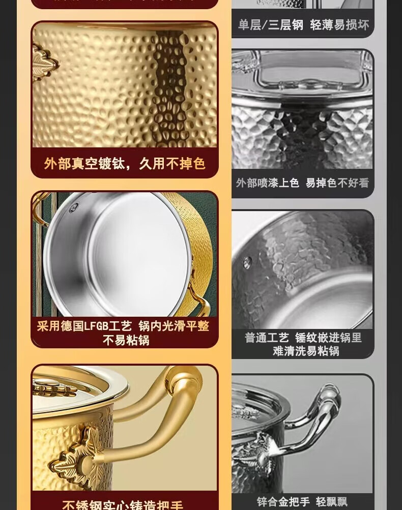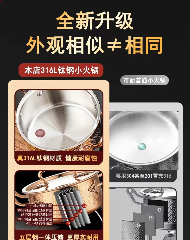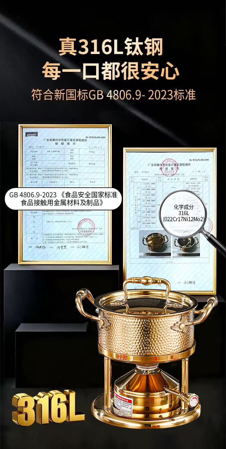 CZGY real titanium steel 316L high-end single-person small hot pot gas stove one person one pot household small commercial club inflatable real titanium steel 316L five-layer extra thick_luxury gold_Swiss style stove core-lifetime warranty 16cm