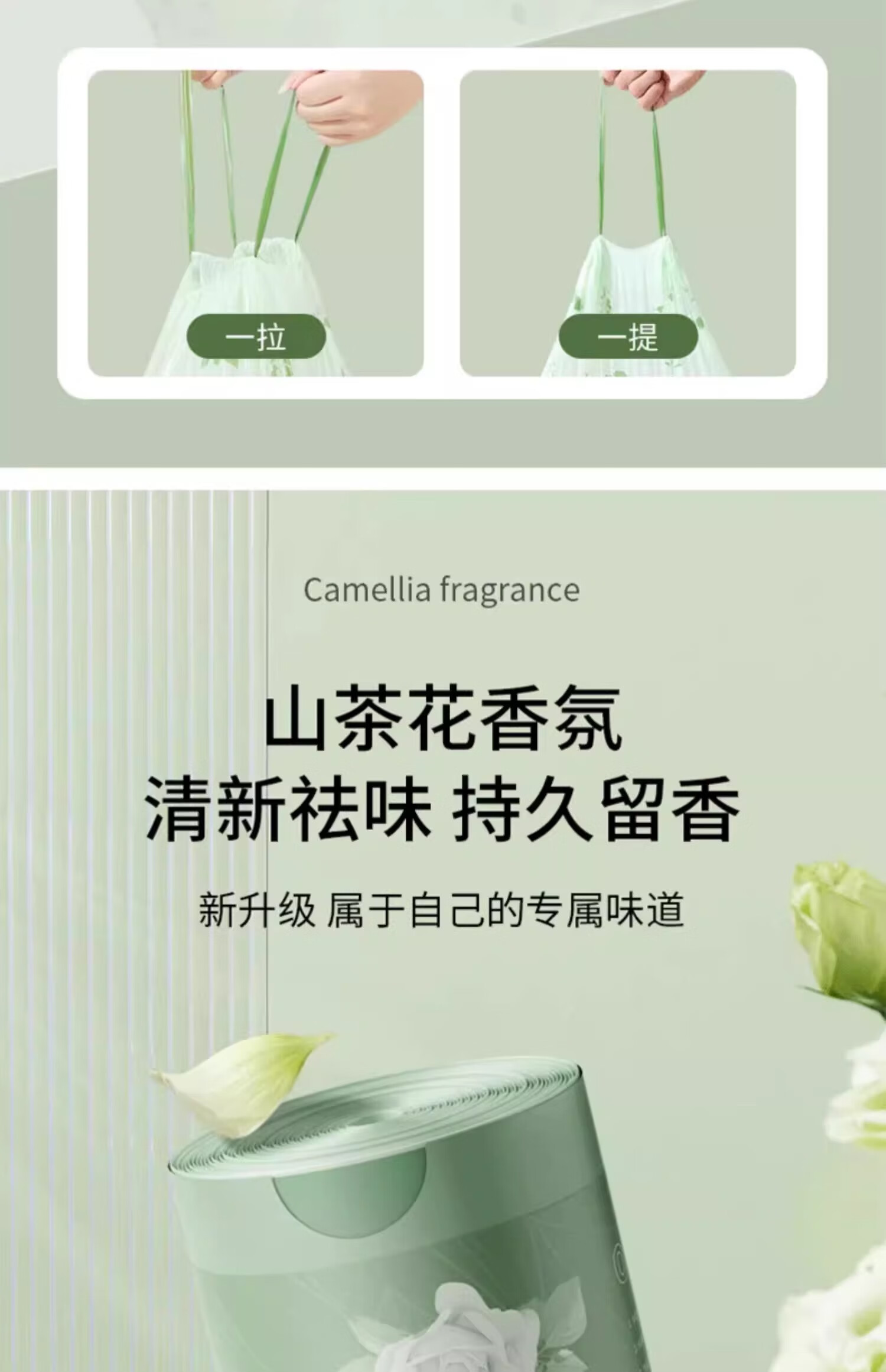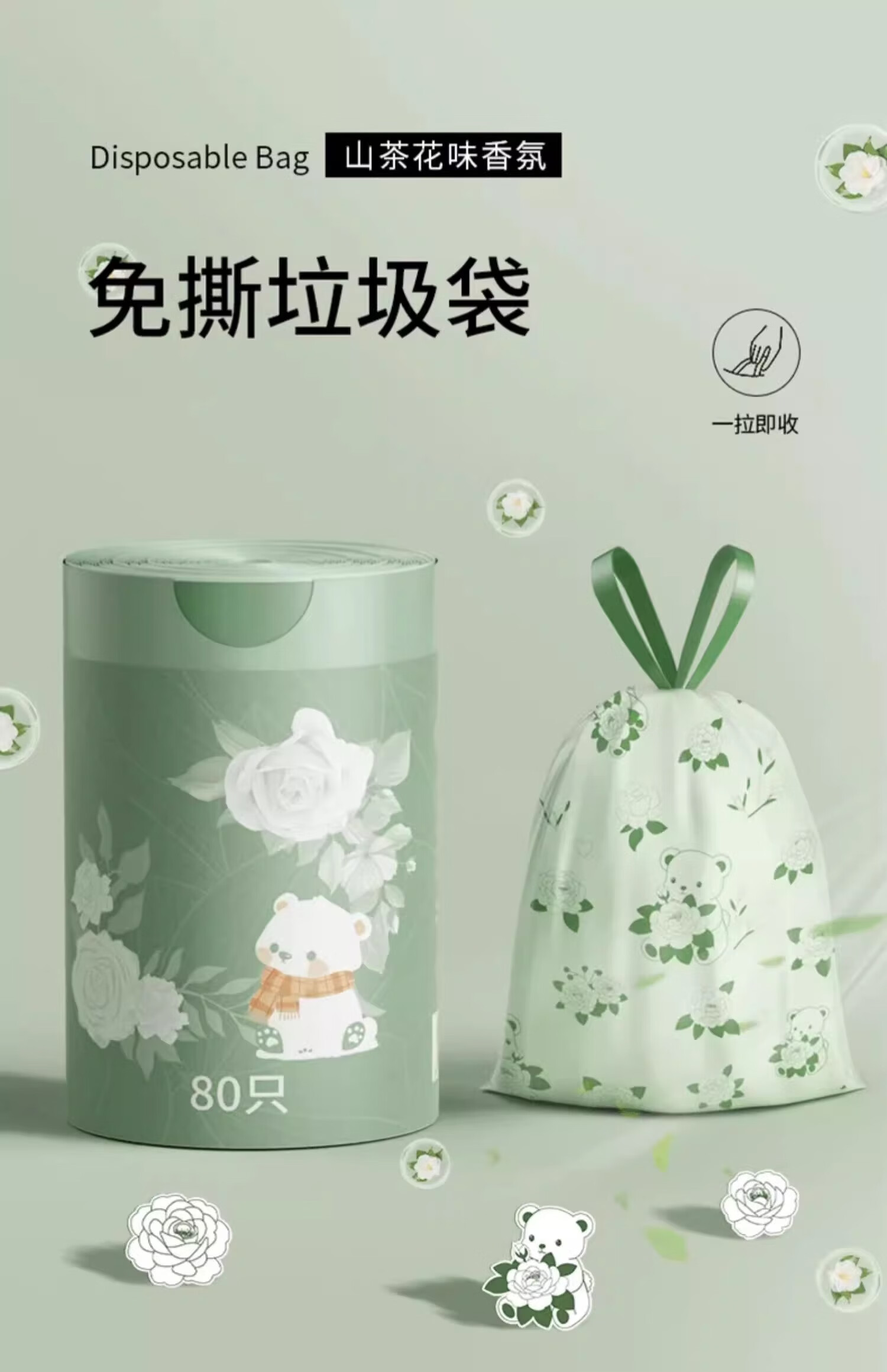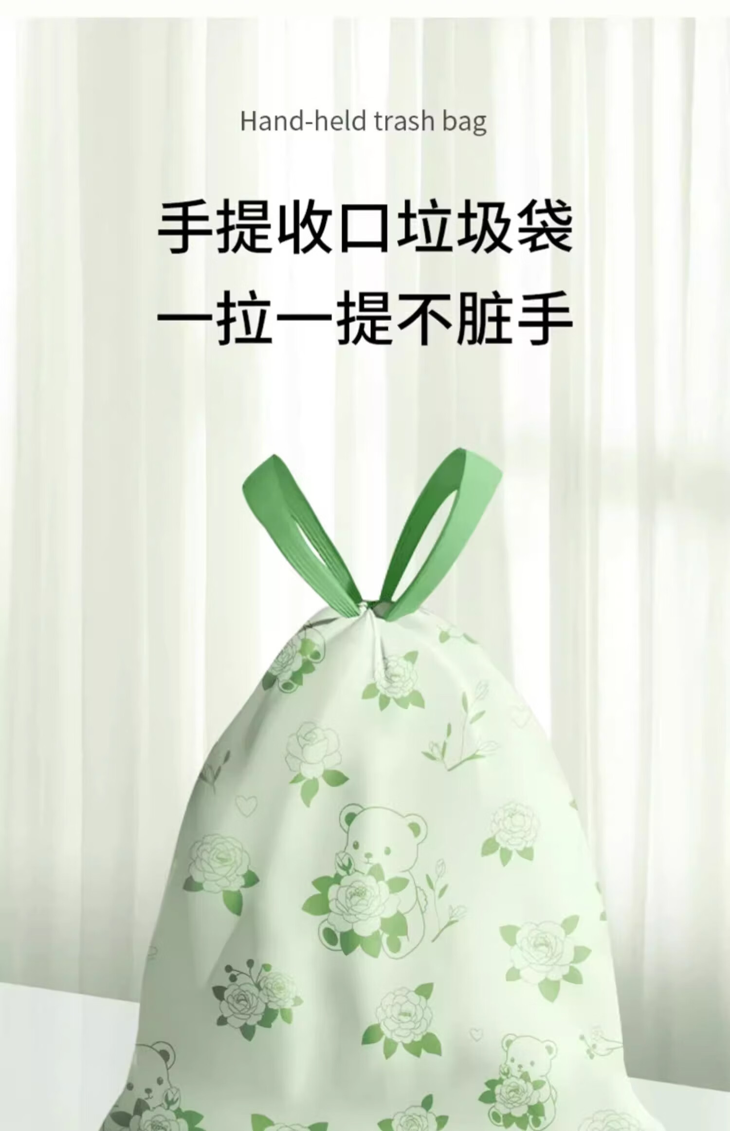 Exclusive for Newcomers Camellia Drawstring Garbage Bag Home Large Thickened Portable Kitchen Tear-Free Camellia Garbage Bag 30 Drawstrings 1 Roll