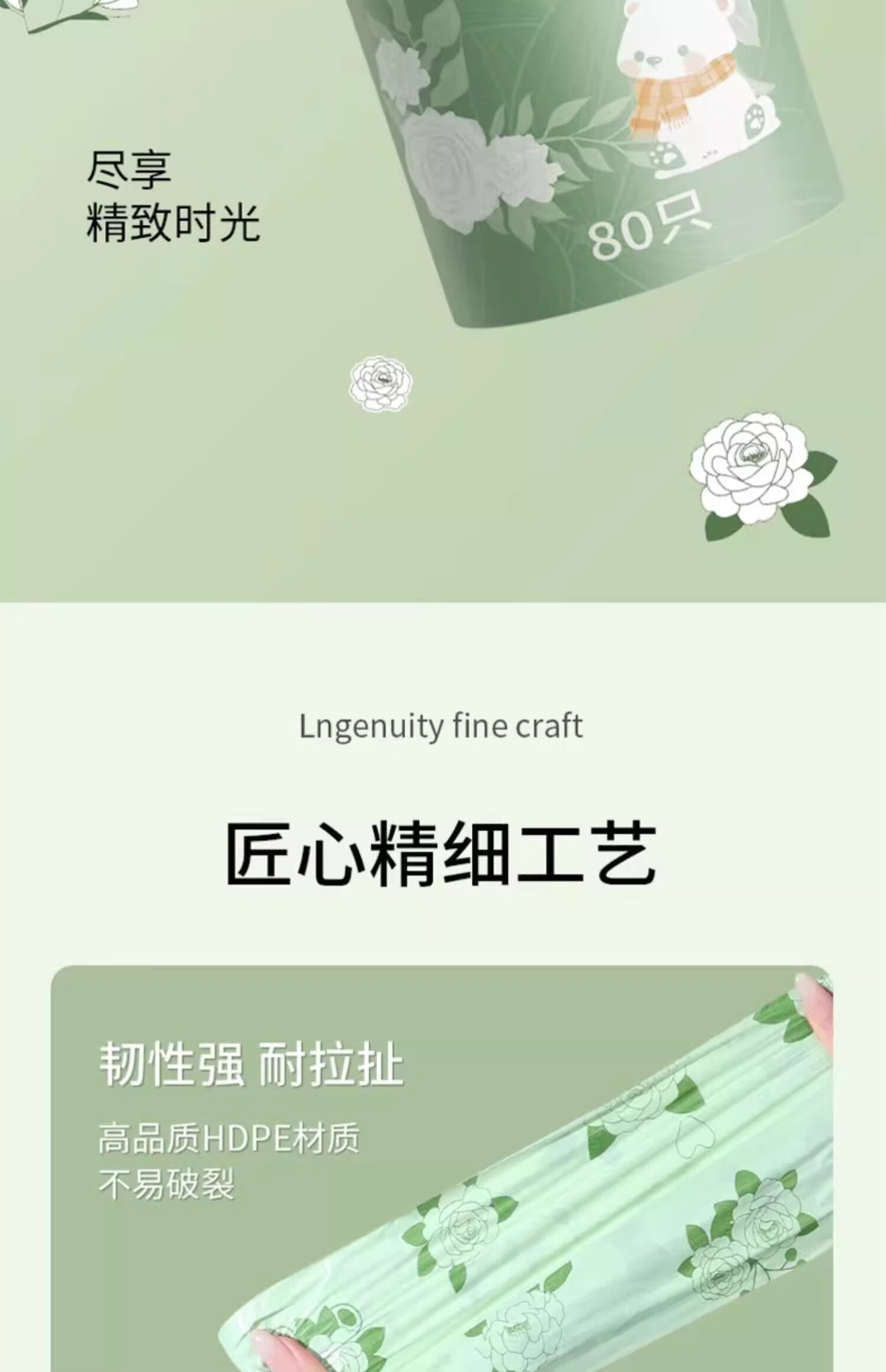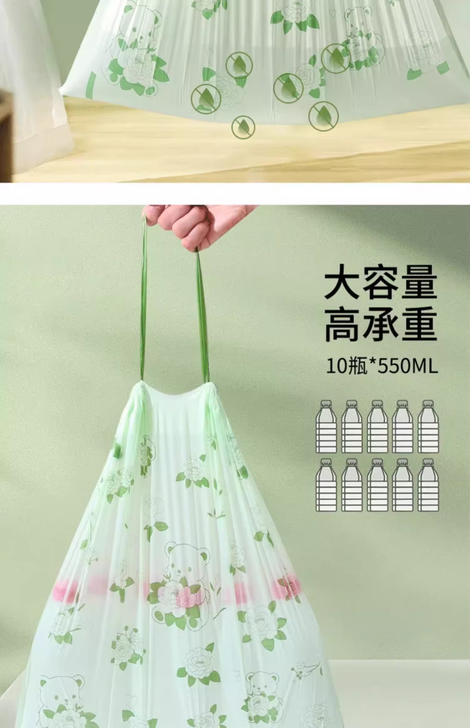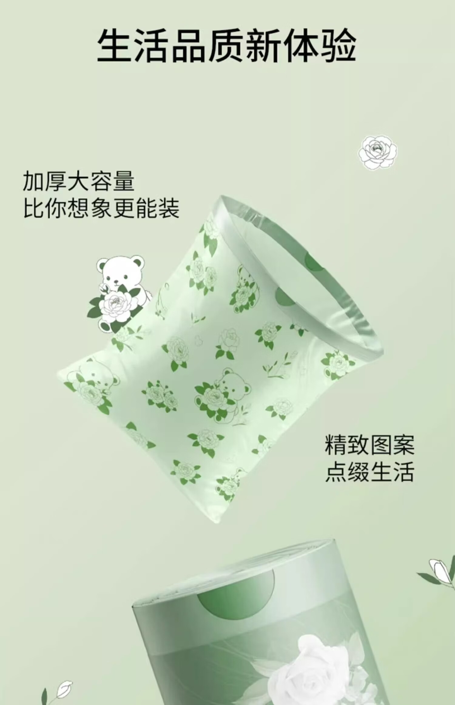 Exclusive for Newcomers Camellia Drawstring Garbage Bag Home Large Thickened Portable Kitchen Tear-Free Camellia Garbage Bag 30 Drawstrings 1 Roll