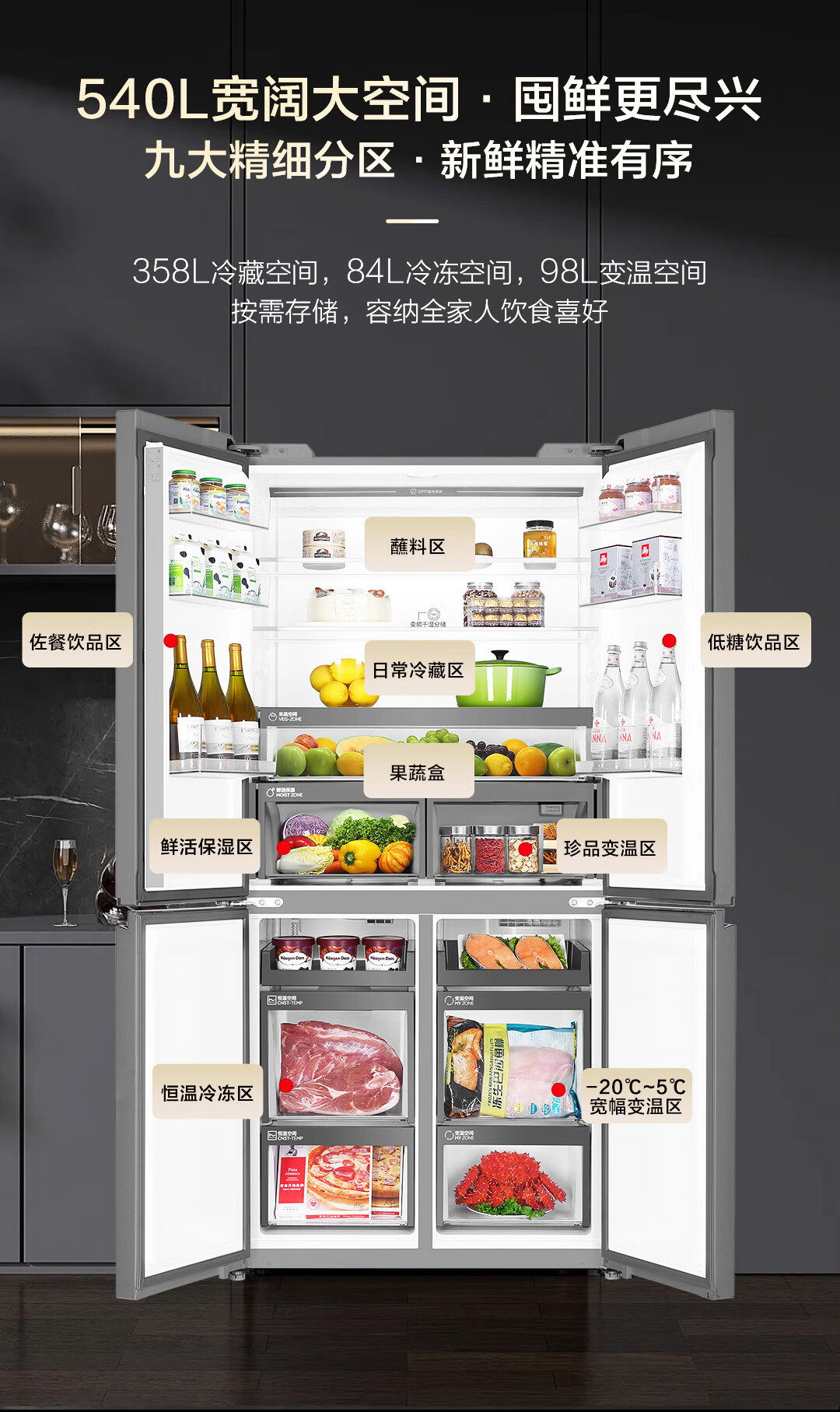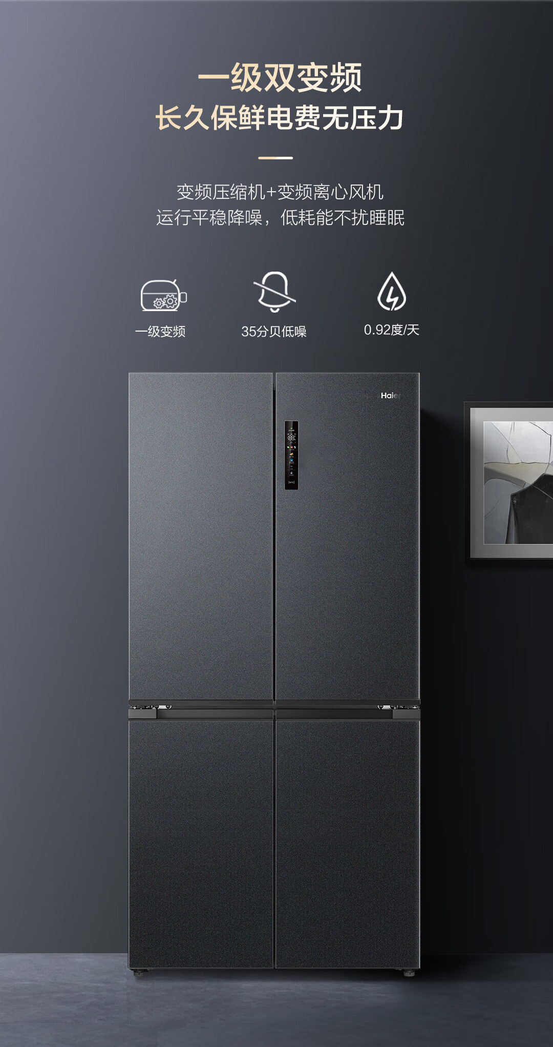 Haier 540L four-door cross-door refrigerator ultra-thin zero-embedded EPP ultra-clean full-space insurance technology oxygen-blocking dry and wet storage wide temperature variable large-capacity smart refrigerator BCD-540WGHTD14GPU1 (grey)