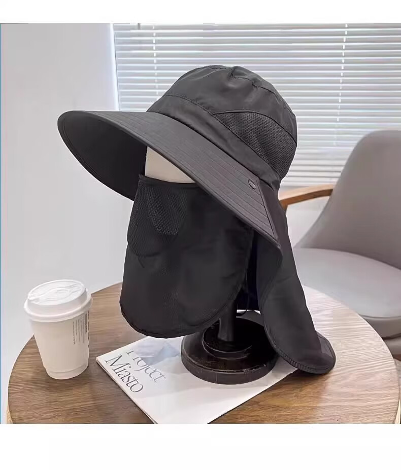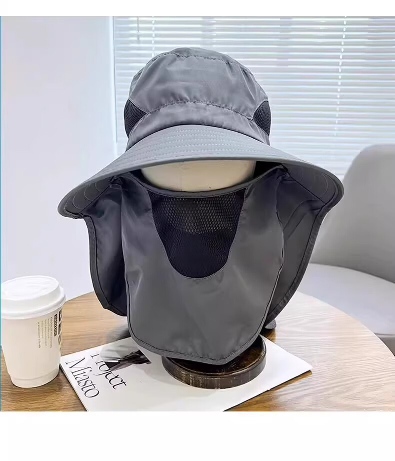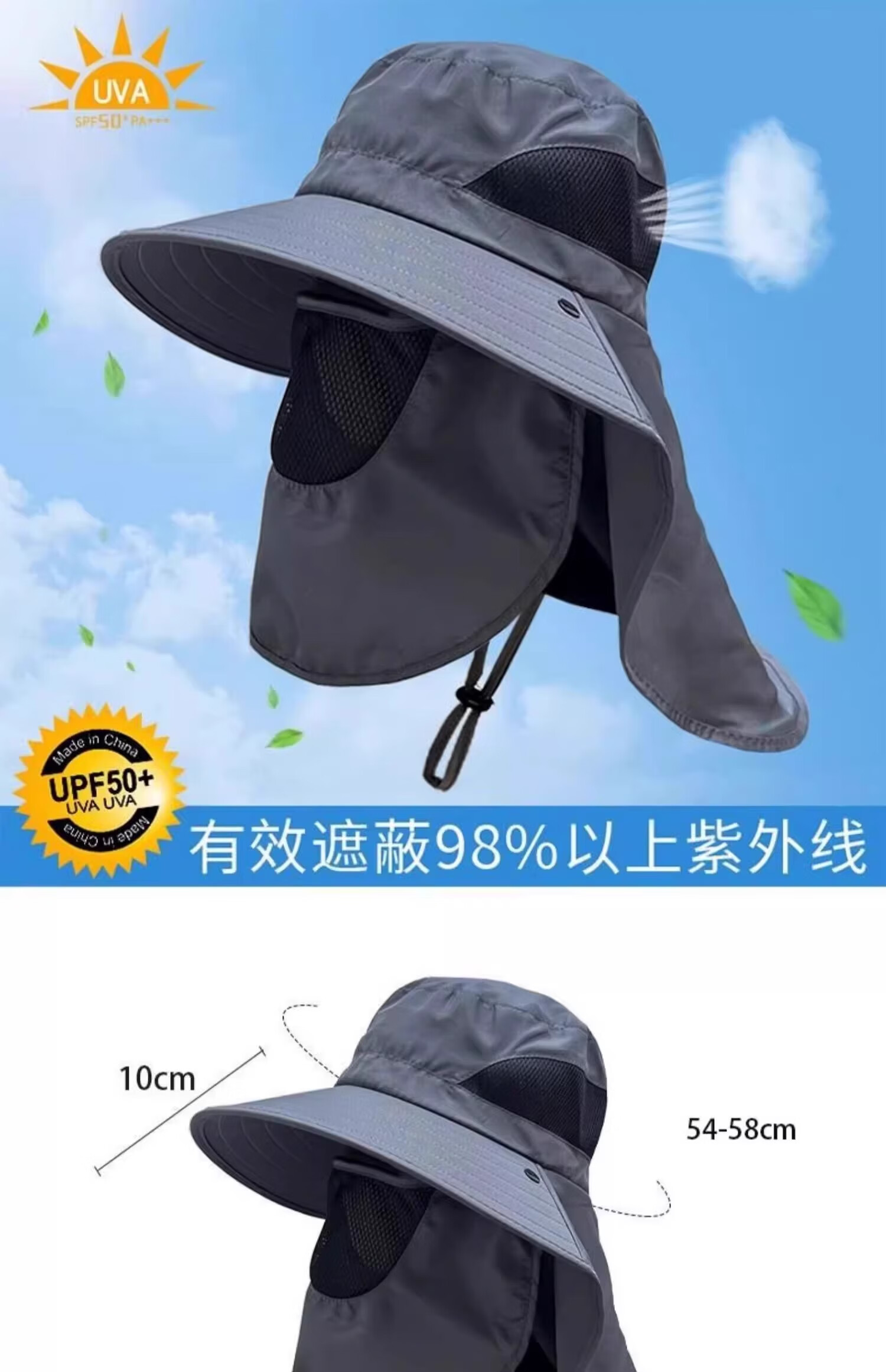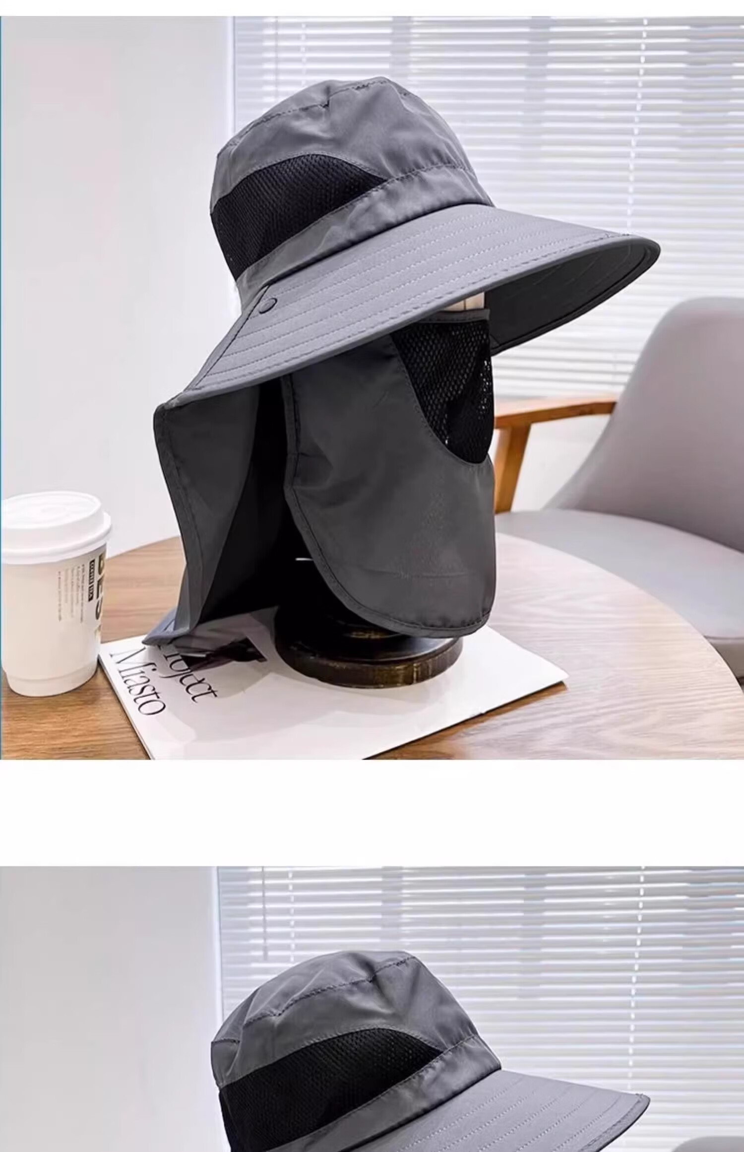 Men's summer anti-UV outdoor fishing mask with large brim, dark gray (with mask - same style for men and women)