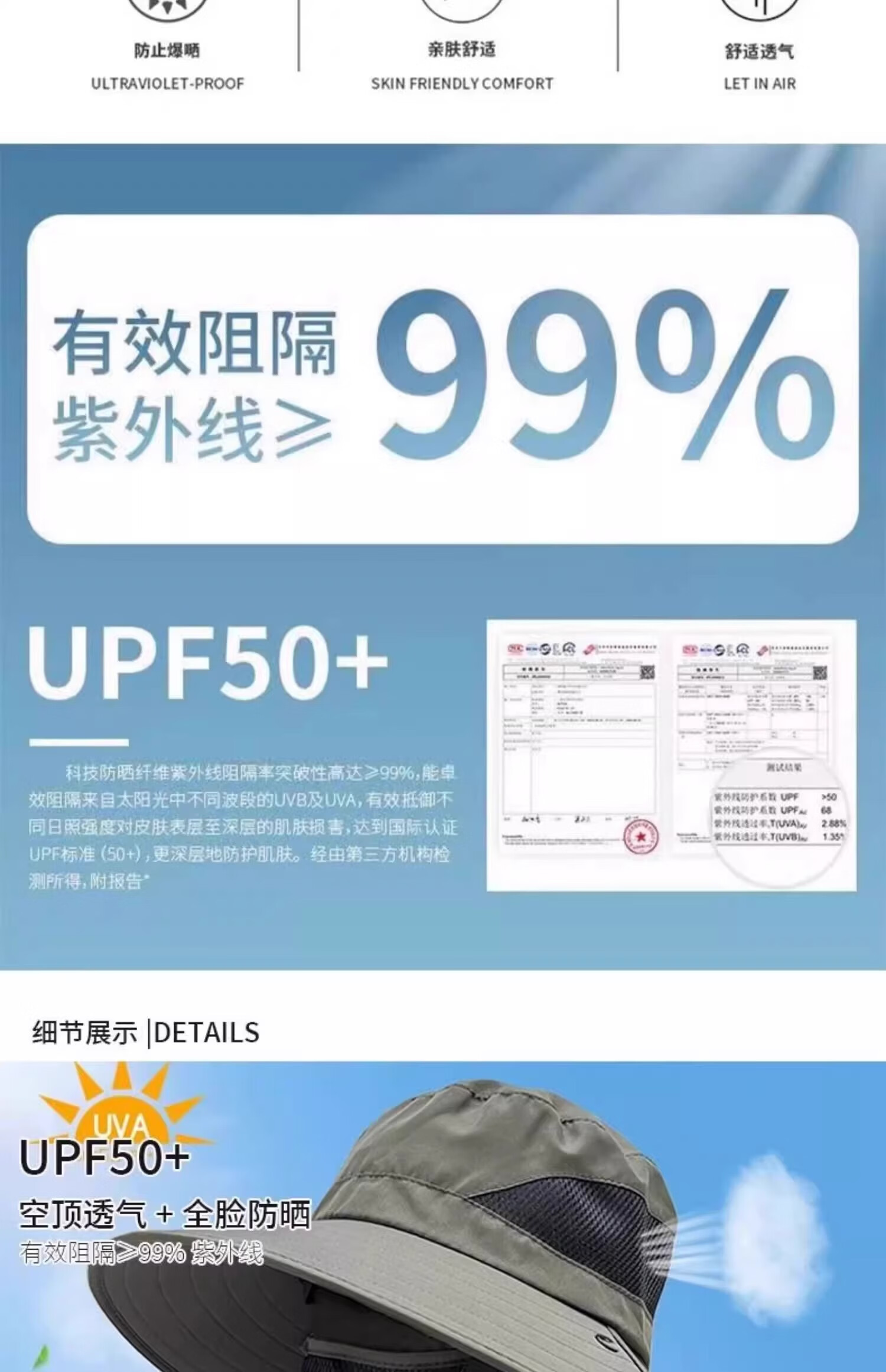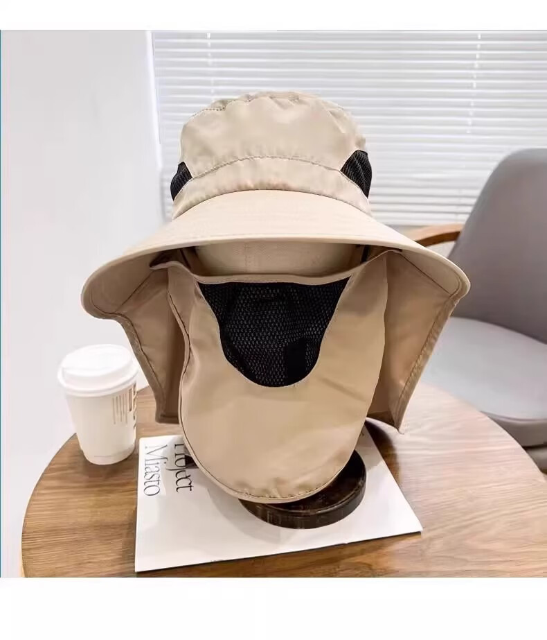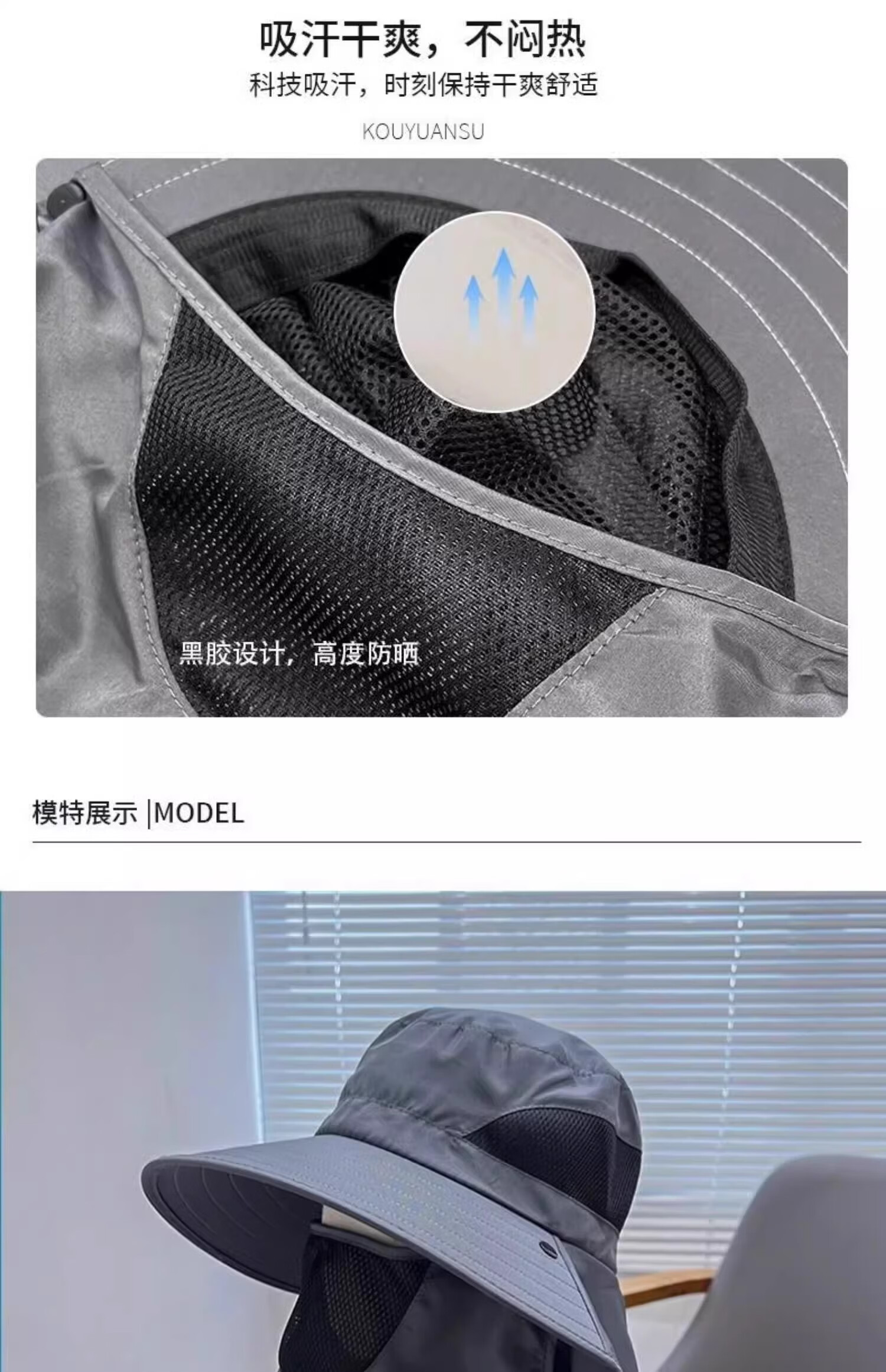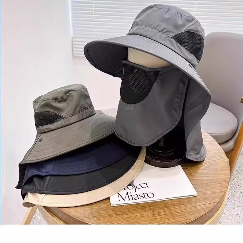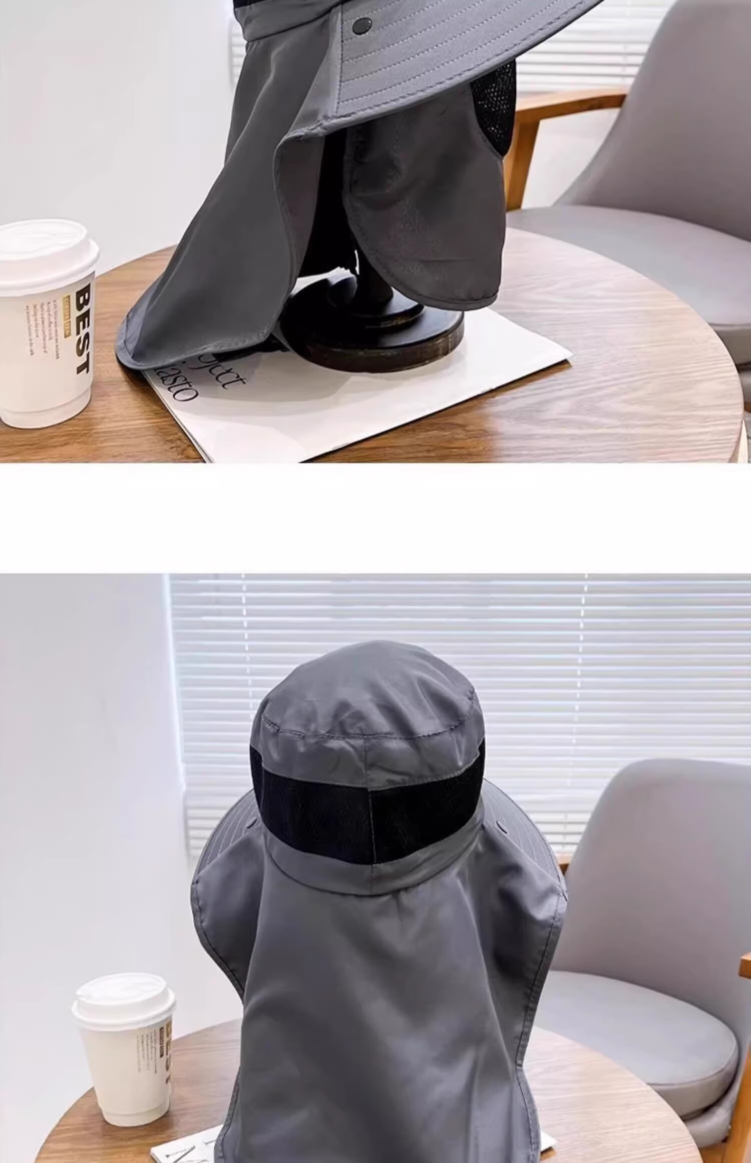 Men's summer anti-UV outdoor fishing mask with large brim, dark gray (with mask - same style for men and women)