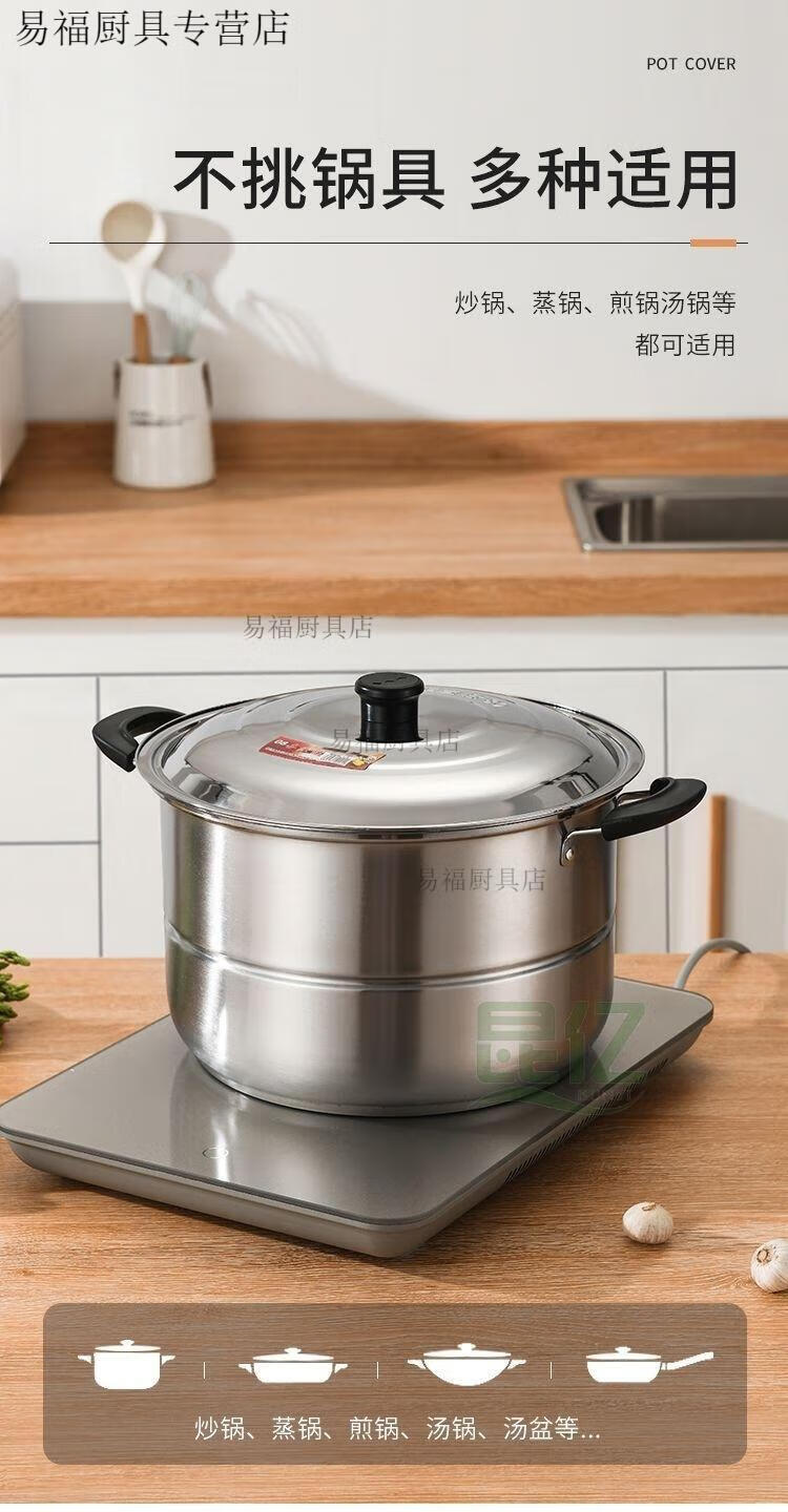 Baichao large pot lid stainless steel household emergency pot lid thickened stir-fry iron pot lid universal stew pot lid old-fashioned round stainless steel extra thick pot lid 24cm