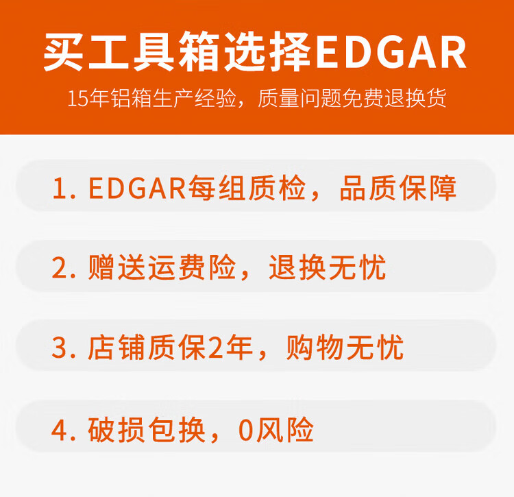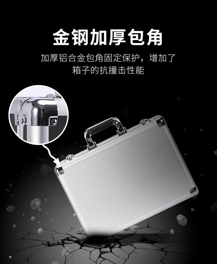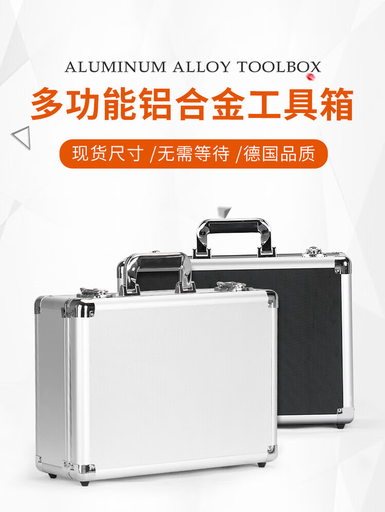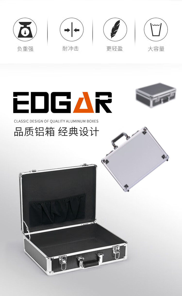 EDGAR portable aluminum alloy tool box safe file box hardware equipment instrument box multi-function (large black + sponge) 48*35*15cm