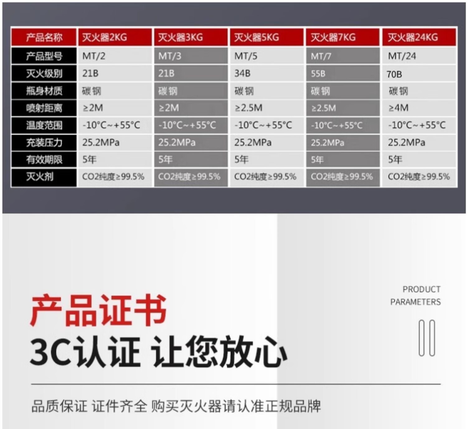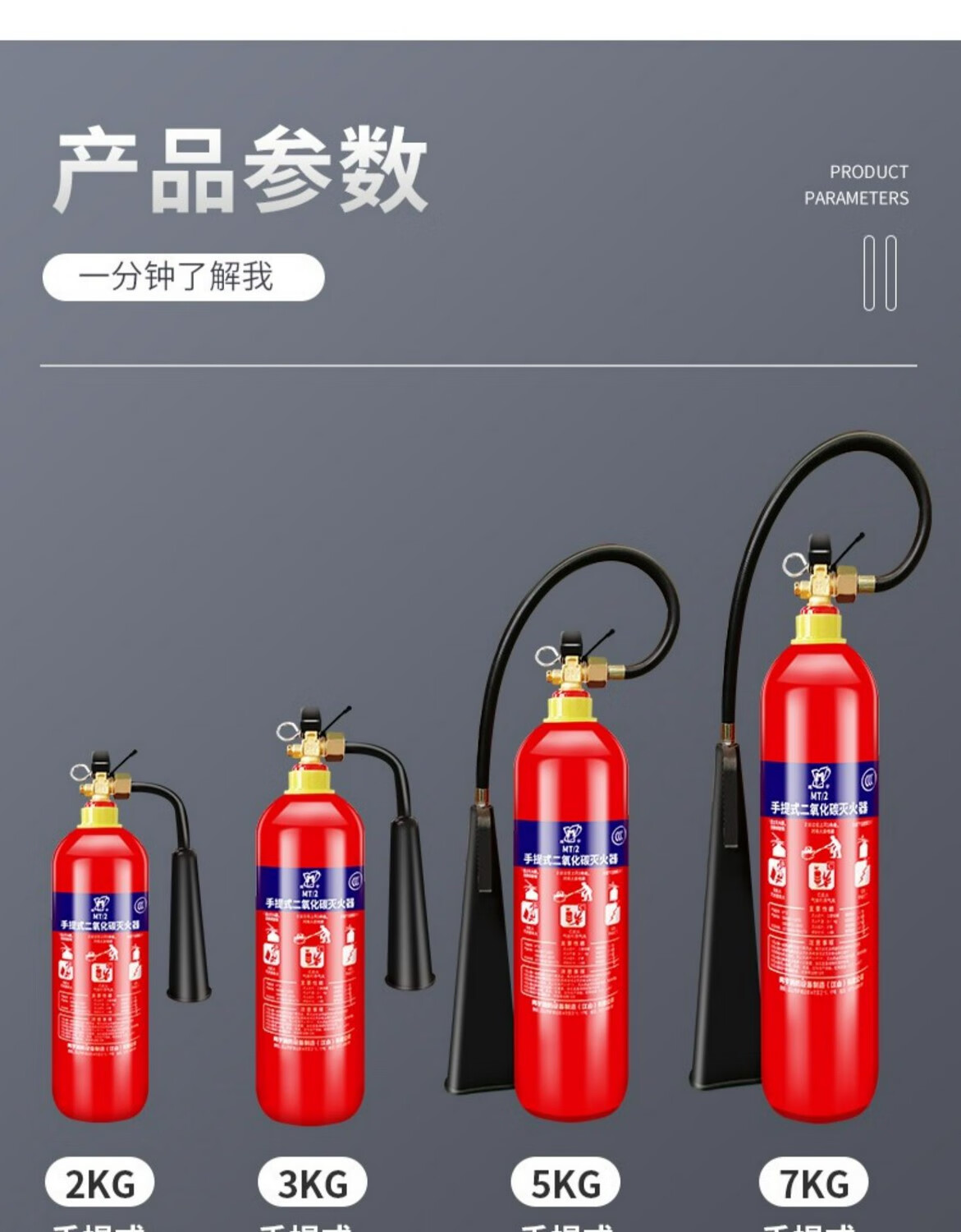 Mingyu carbon dioxide fire extinguisher 3/7/5kg two kilograms portable trolley type CO2 dry ice gas machine room factory dedicated 3kg carbon dioxide 3kg portable carbon dioxide