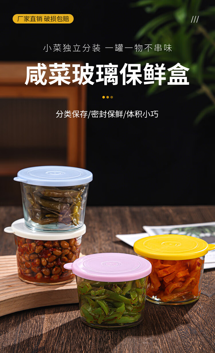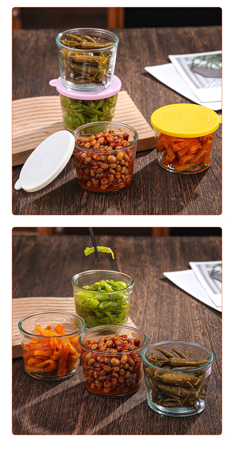 260ml covered pickle bowl, portable side dish and fruit crisper for office workers, kitchen refrigerator with lid, sealed pickles, 6-pack of side dish crisper