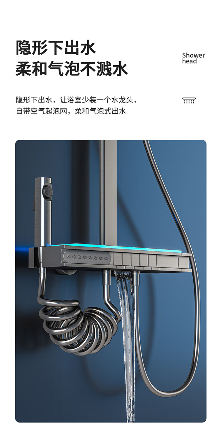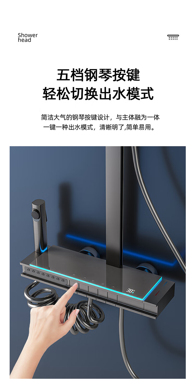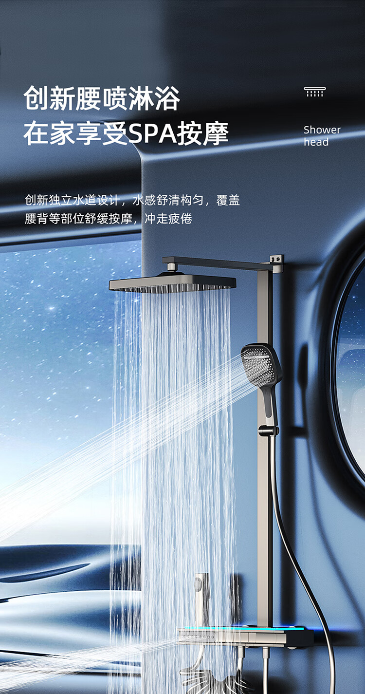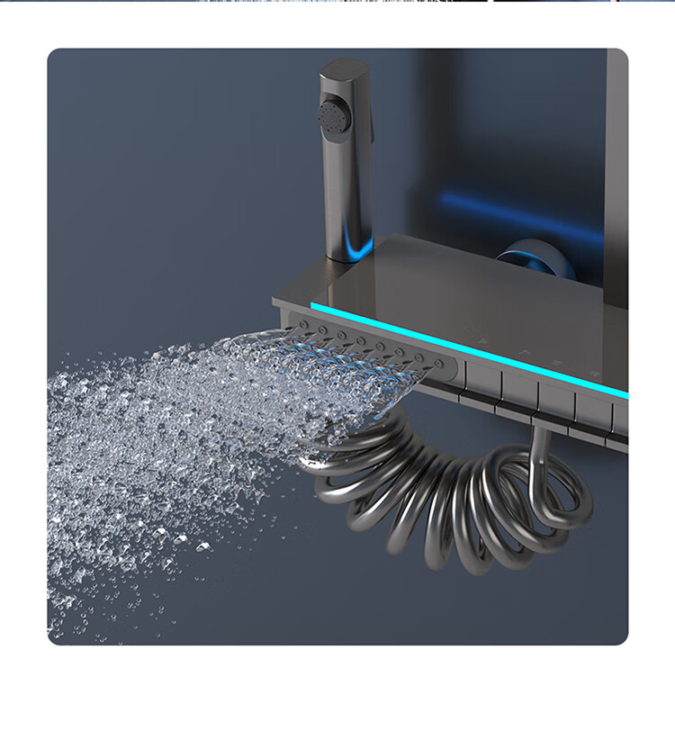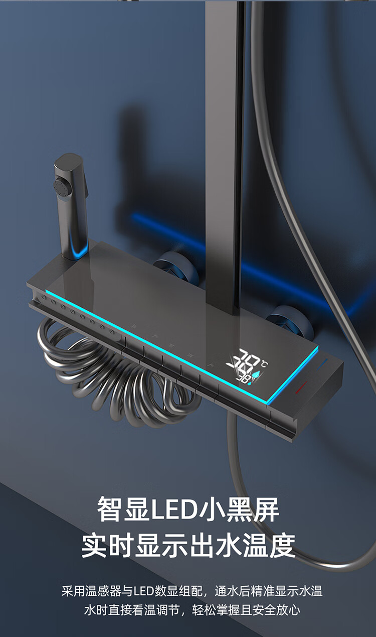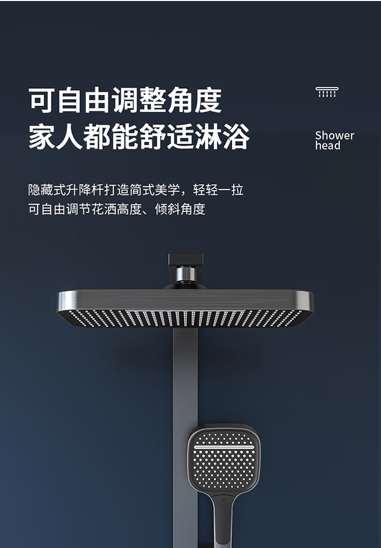 JOMOO Gun Gray Constant Temperature Shower Set Home Bathroom Bath Booster Shower Set Full Copper Intelligent Digital Display Gun Gray Constant Temperature Square Model