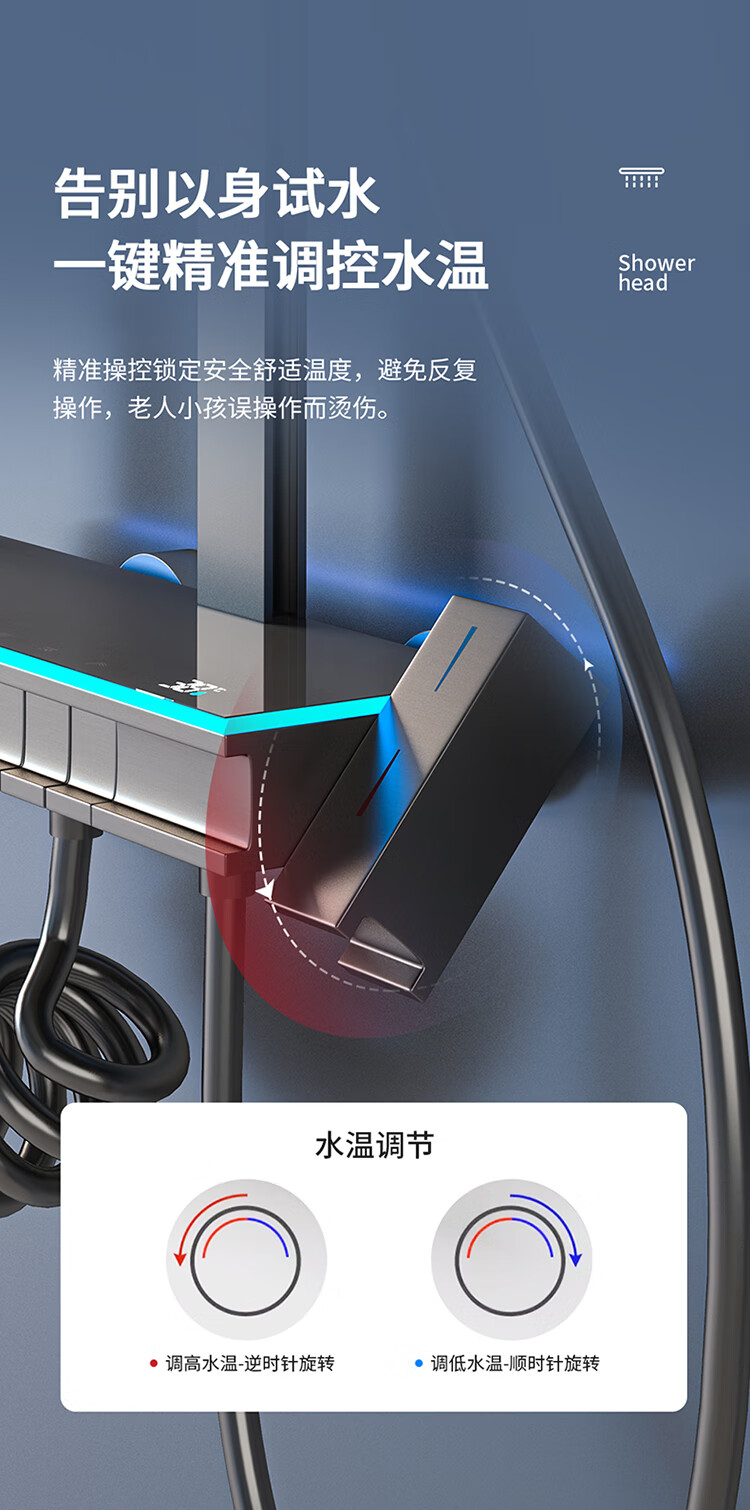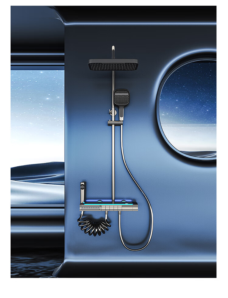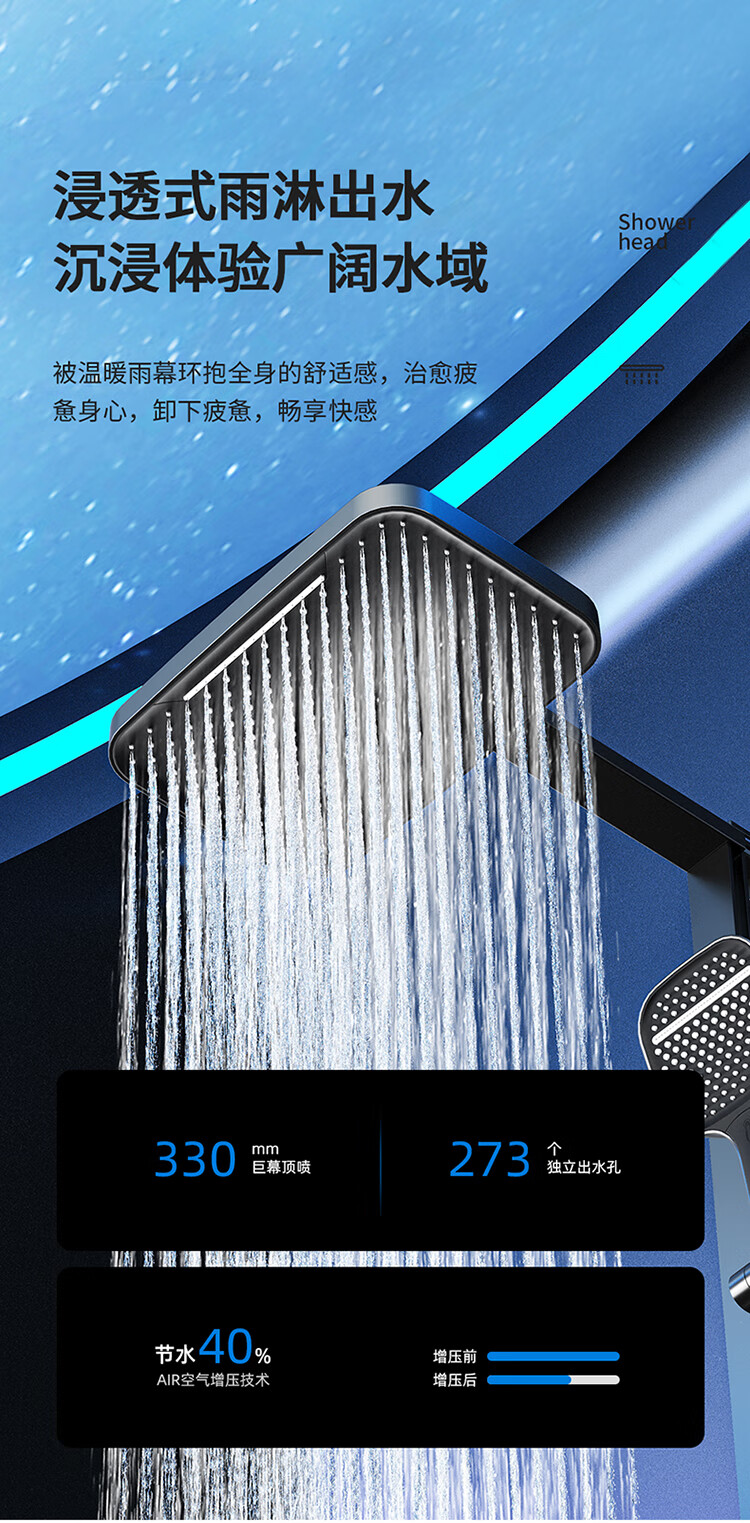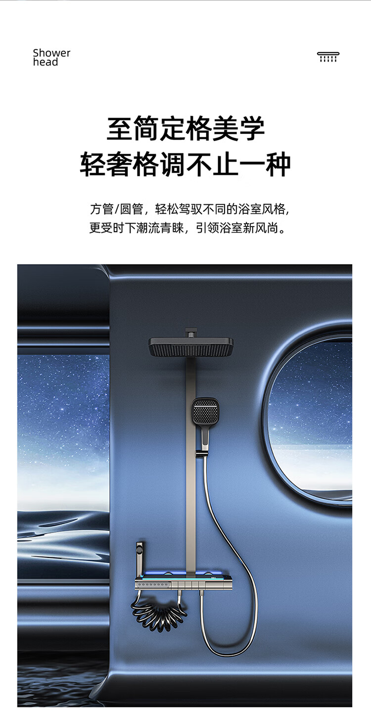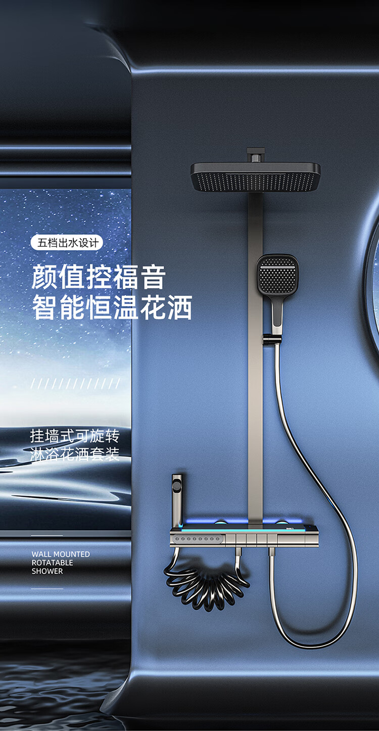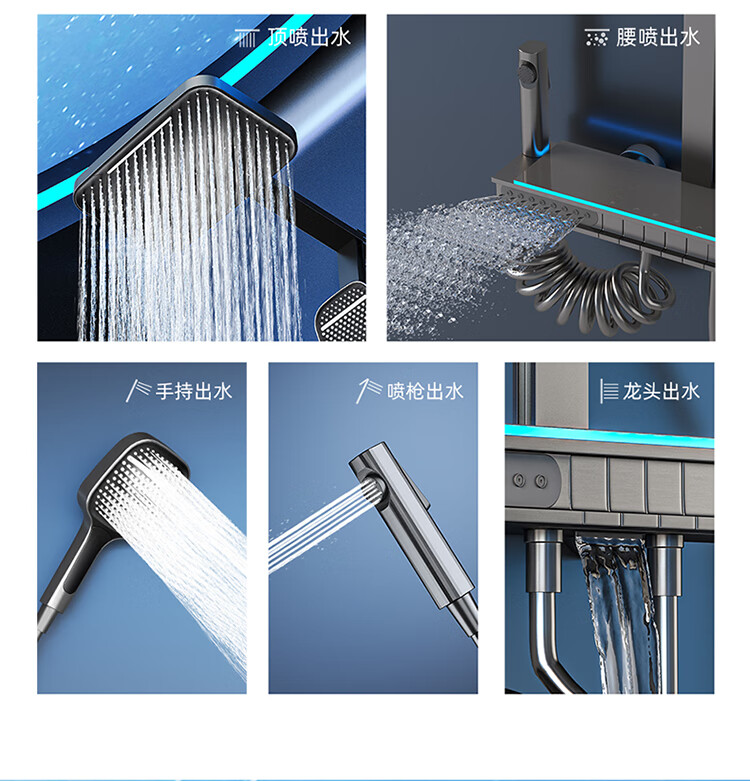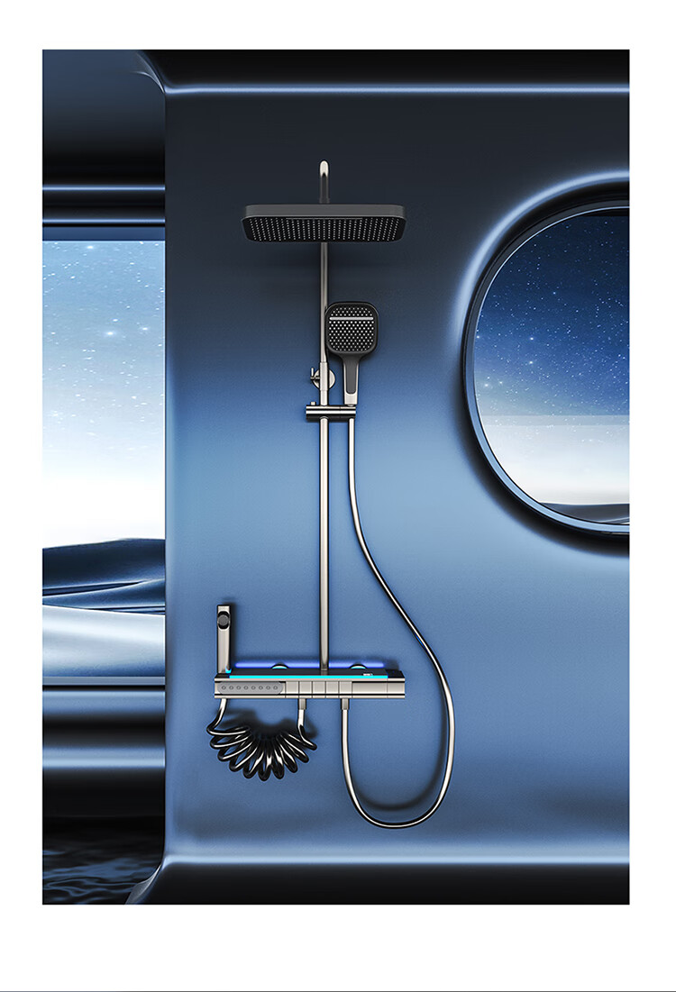 JOMOO Gun Gray Constant Temperature Shower Set Home Bathroom Bath Booster Shower Set Full Copper Intelligent Digital Display Gun Gray Constant Temperature Square Model