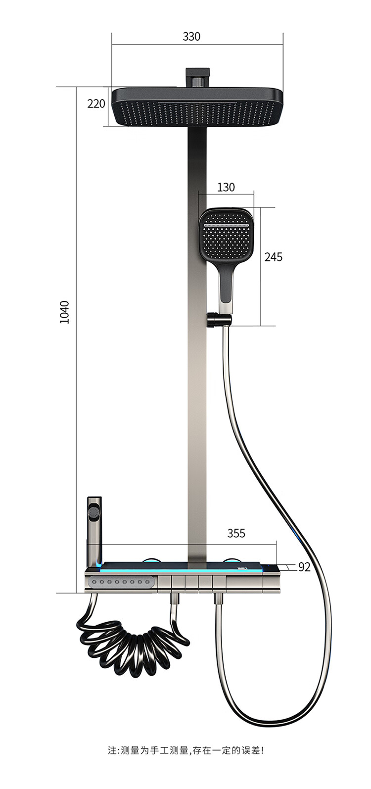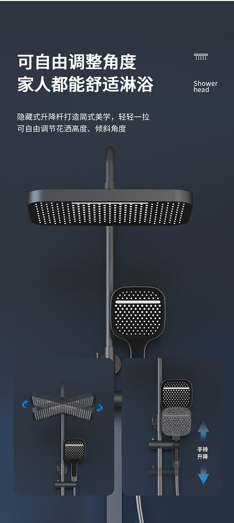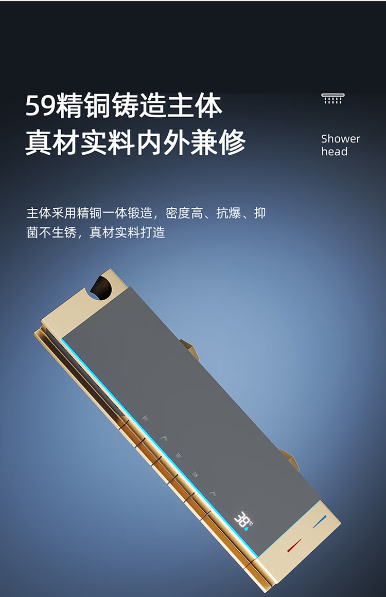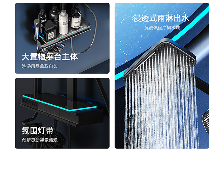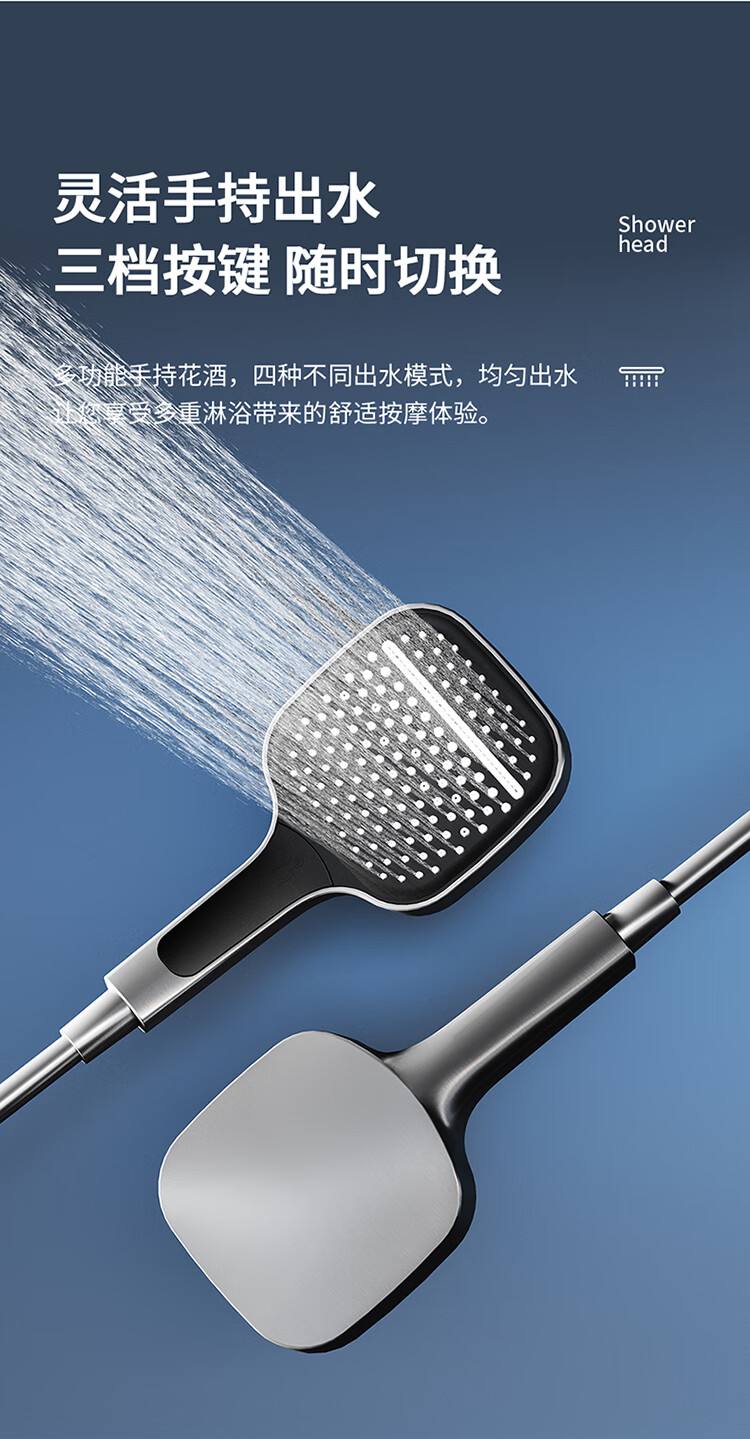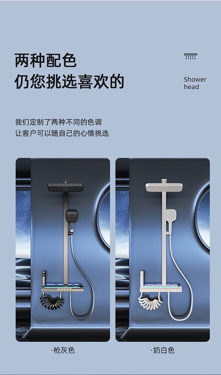 JOMOO Gun Gray Constant Temperature Shower Set Home Bathroom Bath Booster Shower Set Full Copper Intelligent Digital Display Gun Gray Constant Temperature Square Model