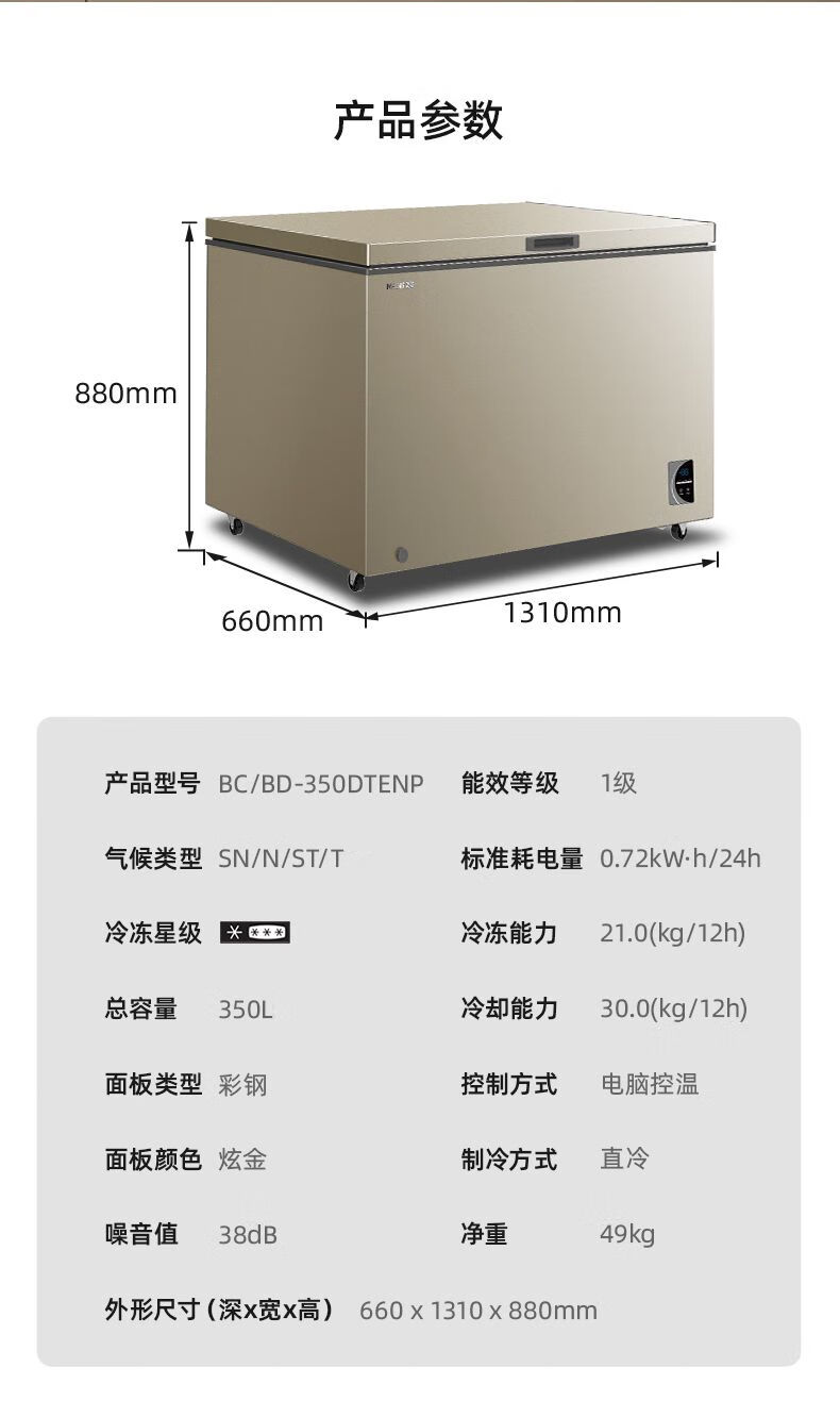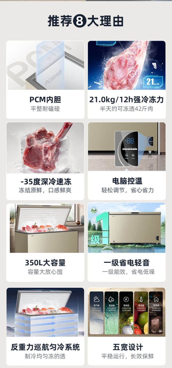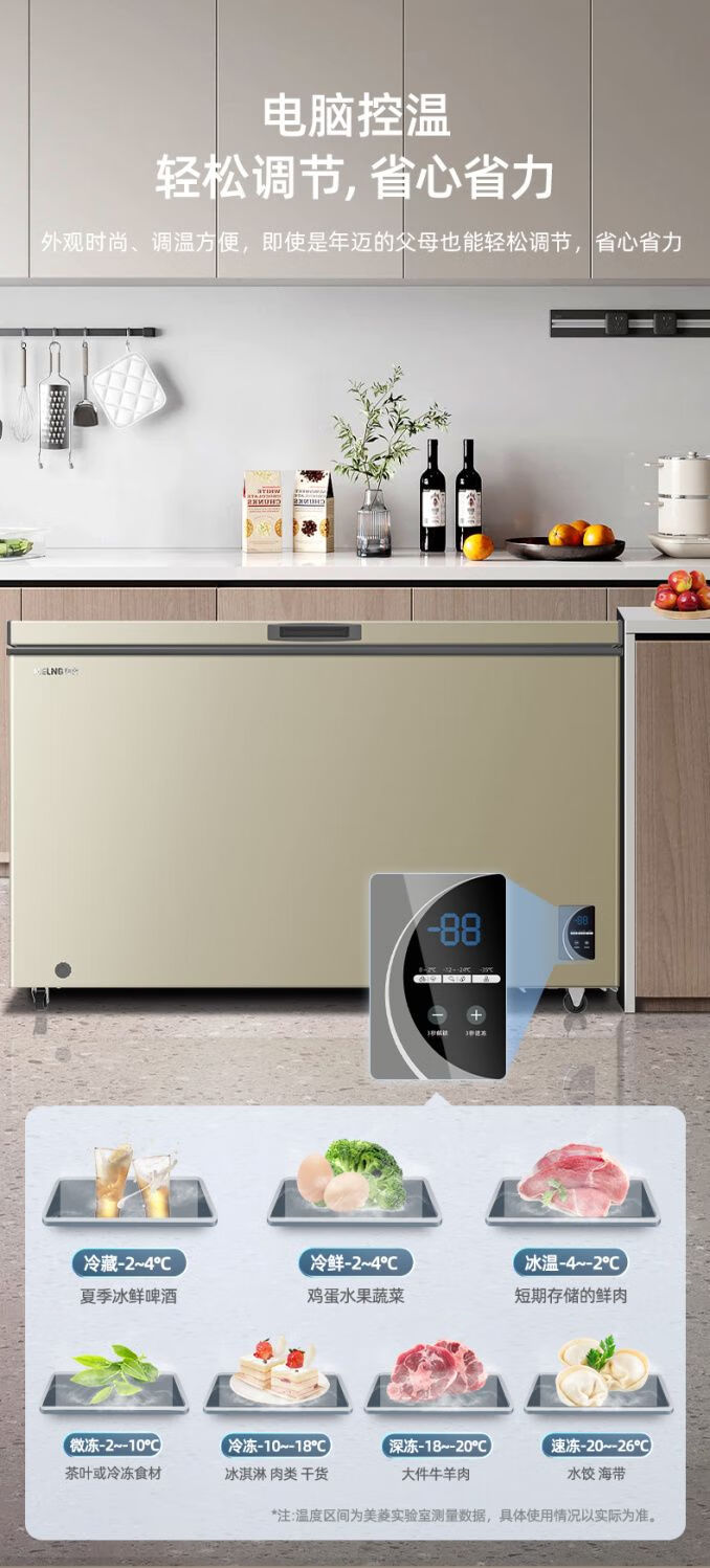 MeiLing Freezer 350L Electronic Controlled Cryogenic Quick Freezer Commercial Low Temperature Large Capacity Household Single Temperature Refrigerator Freezer 350L Single Temperature Freezer 1L