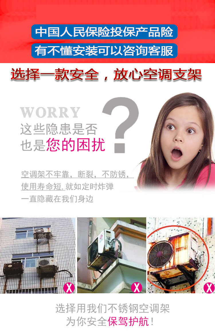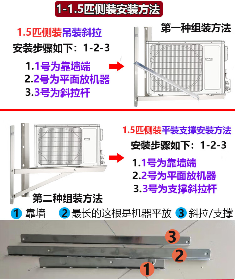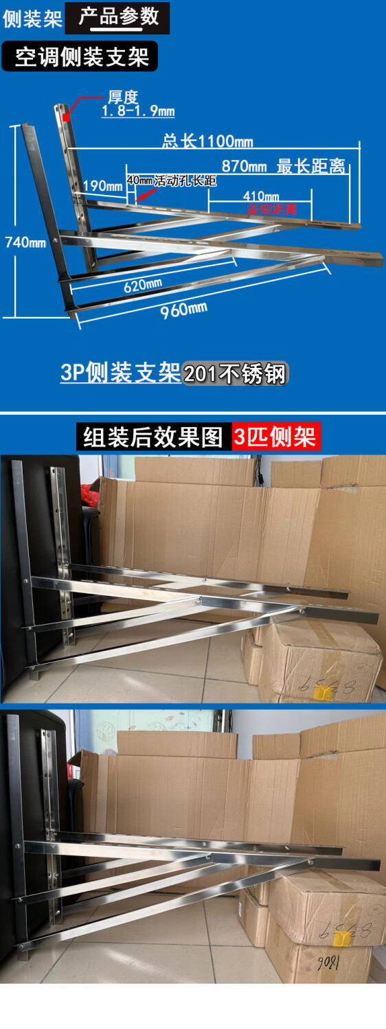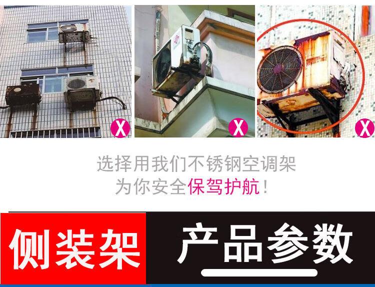 Ye Yu thickened side-mounted air-conditioning bracket stainless steel outdoor unit P.PP air-conditioning horizontal-mounted bracket special bracket universal type galvanized 1-1.5 HP side frame without screws 2.0 thick