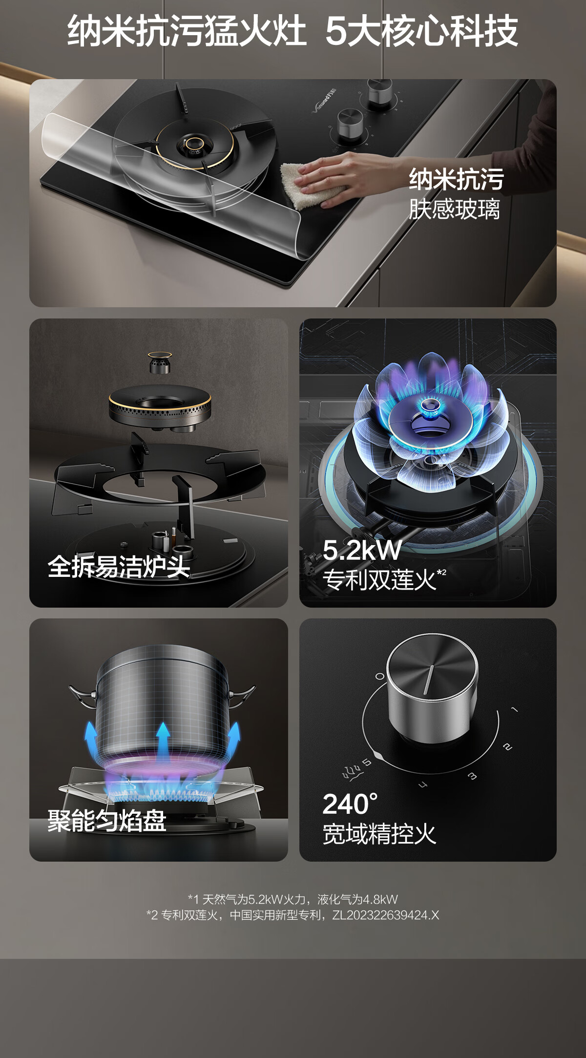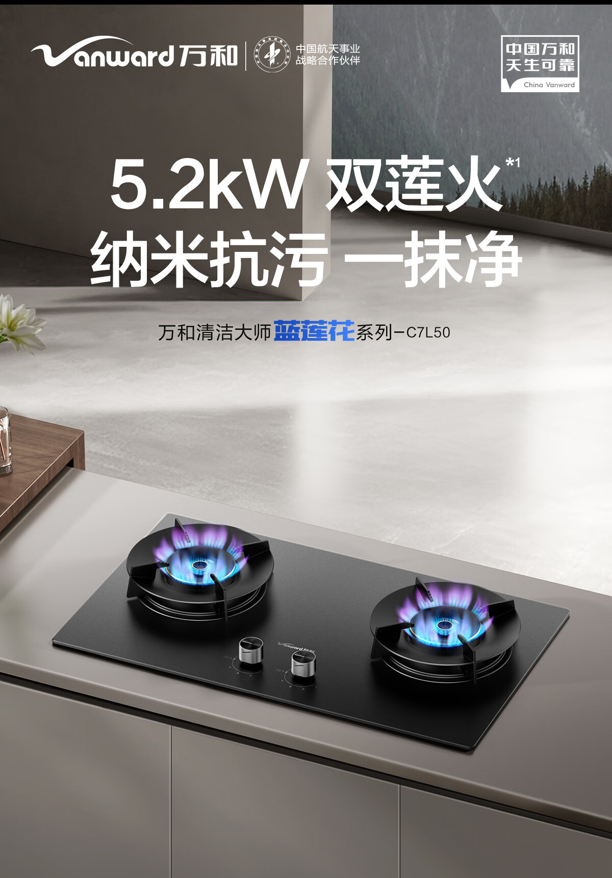 Vanward Blue Lotus C7. Traceless anti-fouling gas stove natural gas household stove 5.2KW high power first-class energy efficiency nano traceless anti-fouling C7L50 natural gas