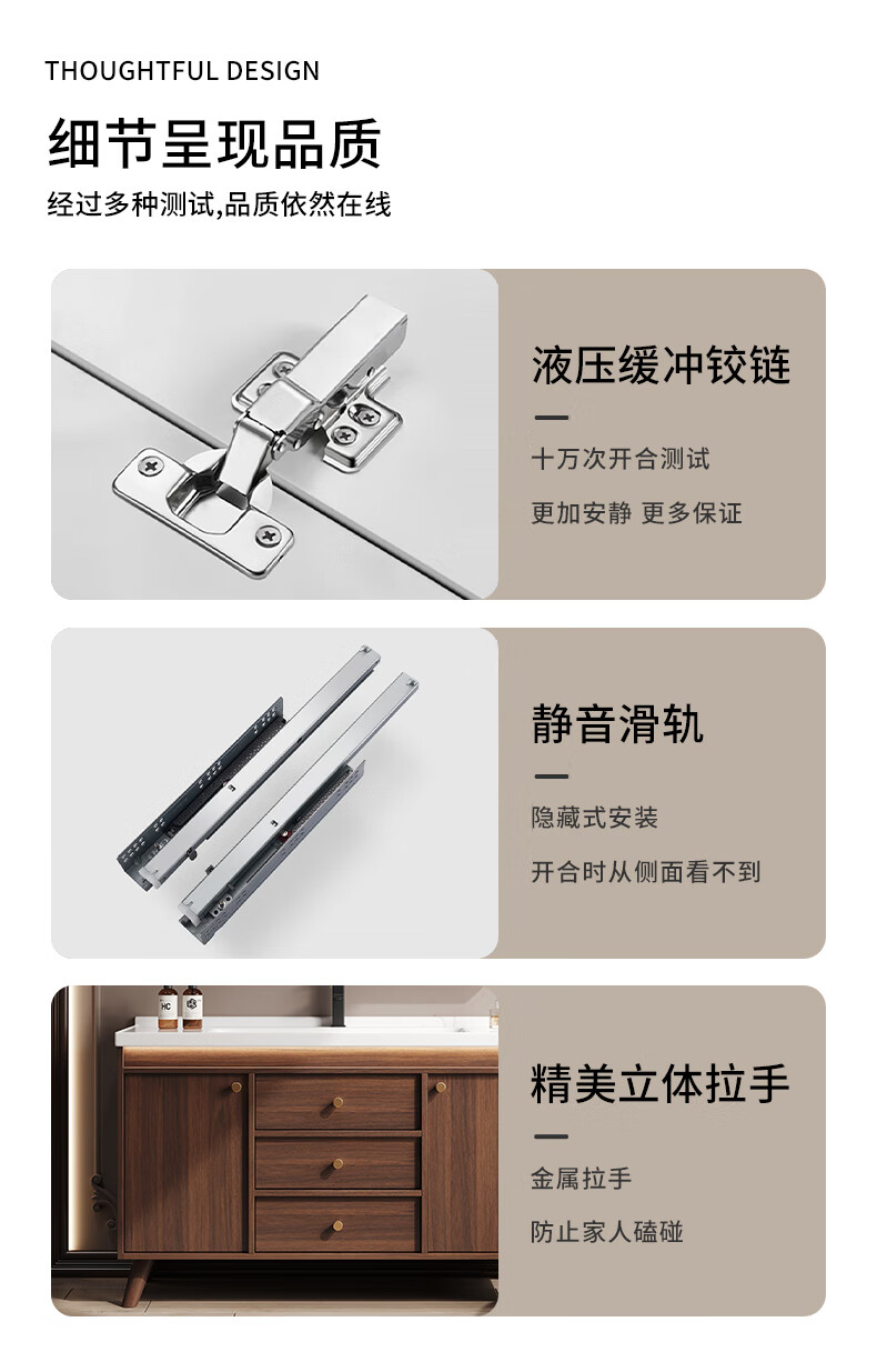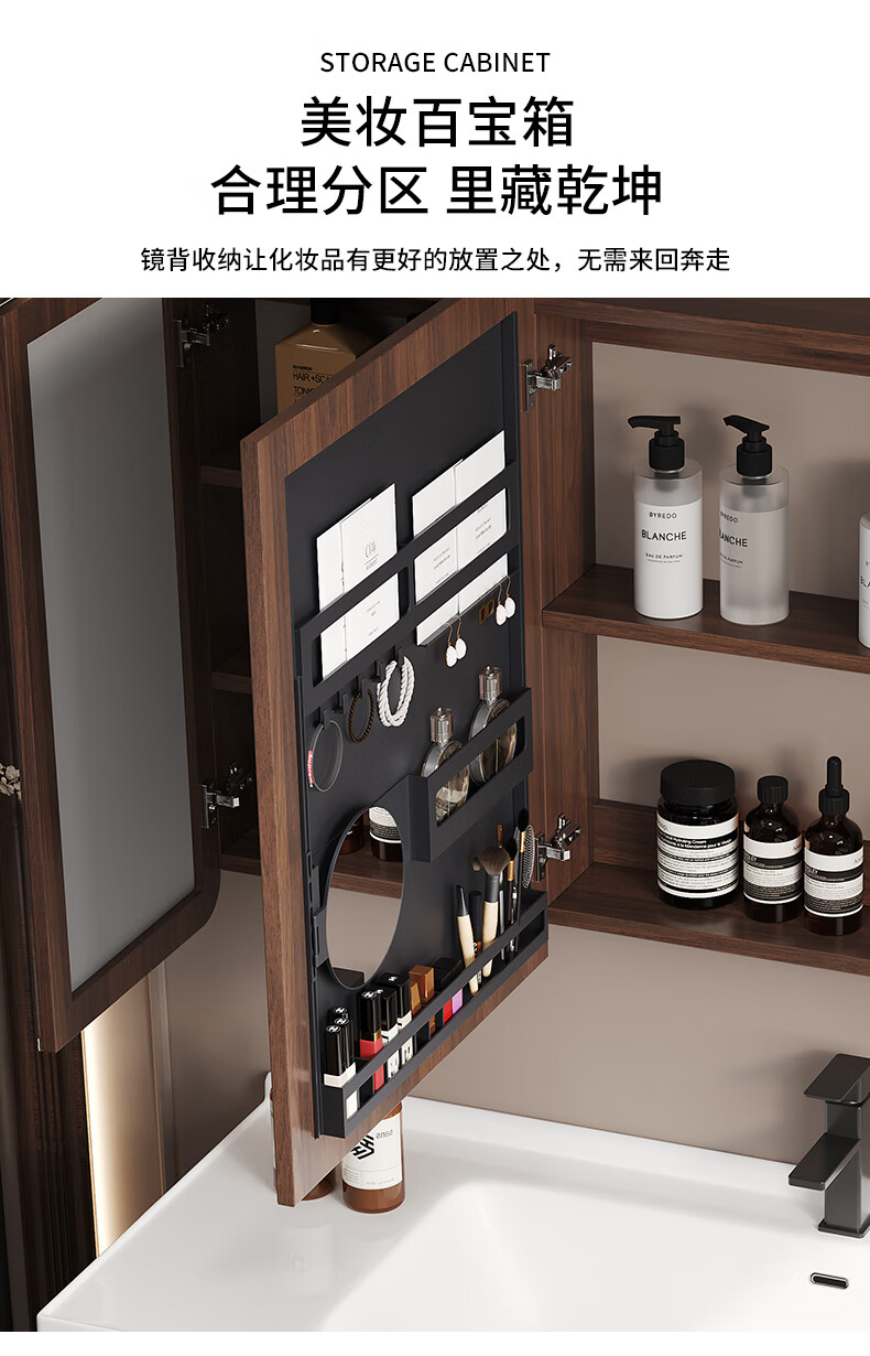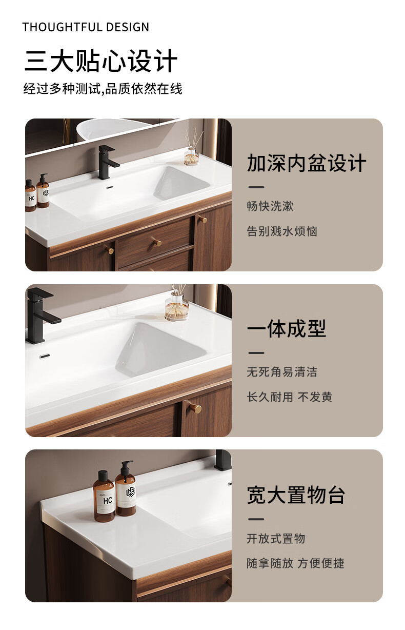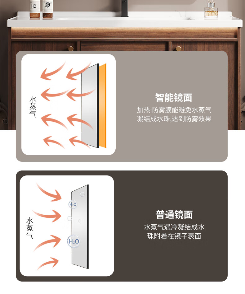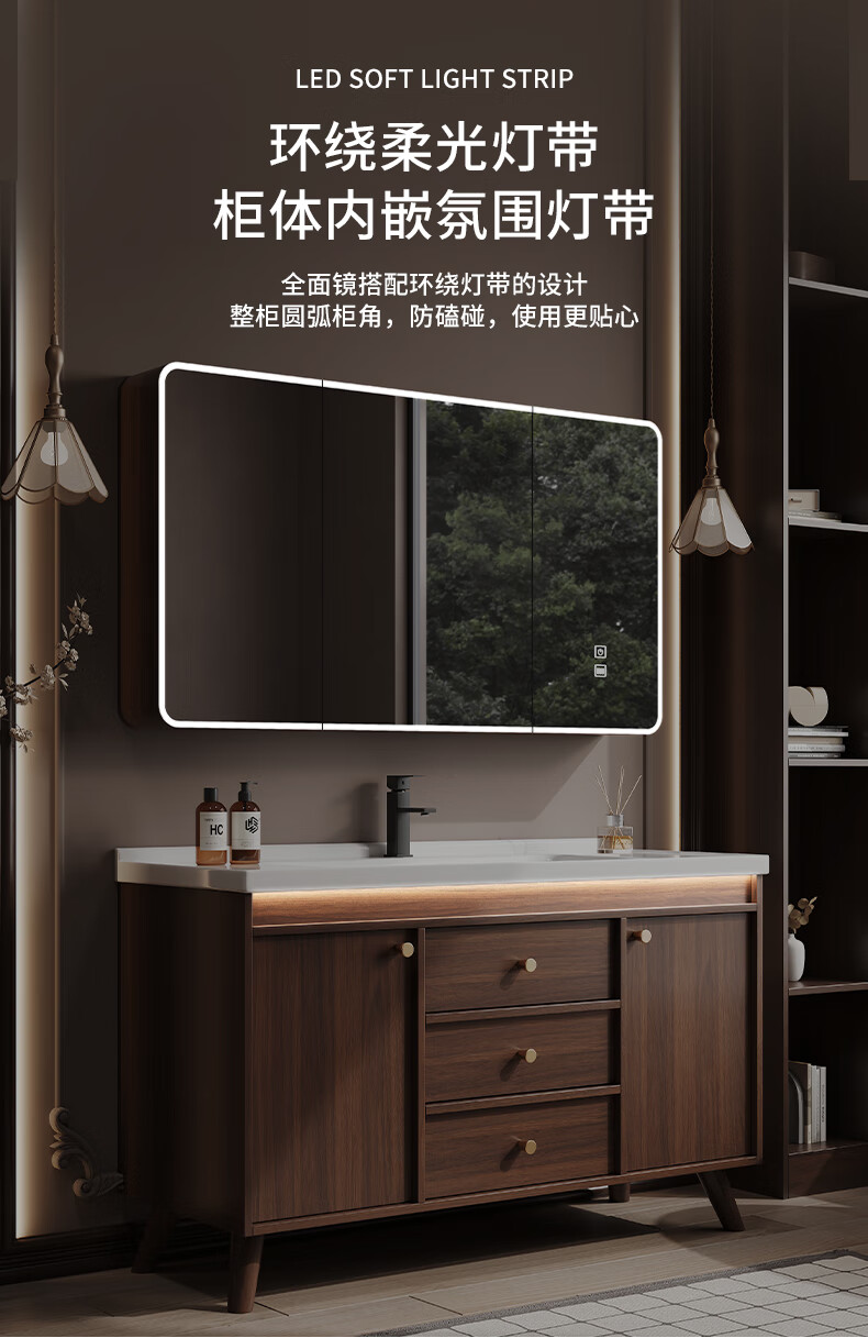 Hengjie new Chinese style walnut bathroom cabinet combination ceramic integrated basin floor-standing bathroom hand wash basin H08-80 walnut color/lower grid storage mirror cabinet (falling