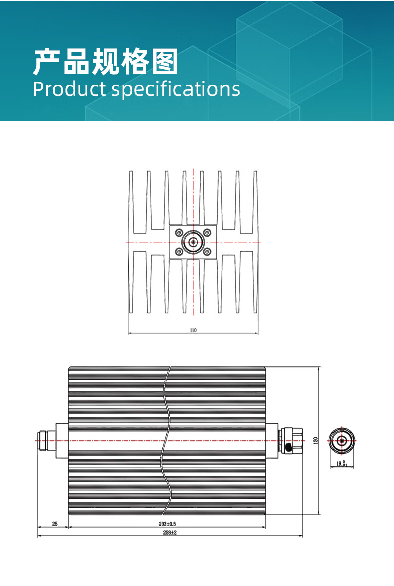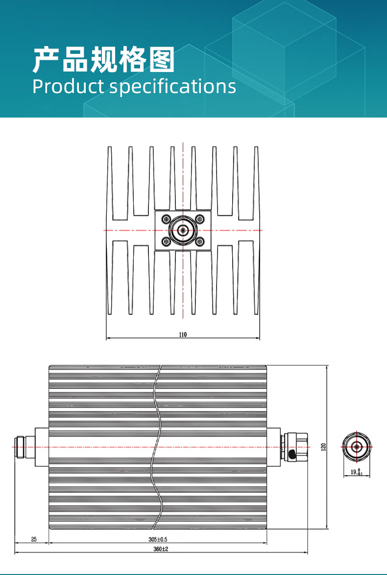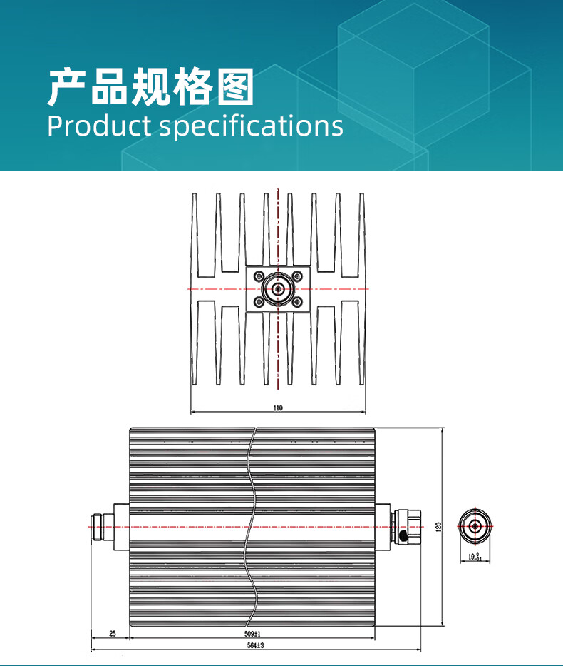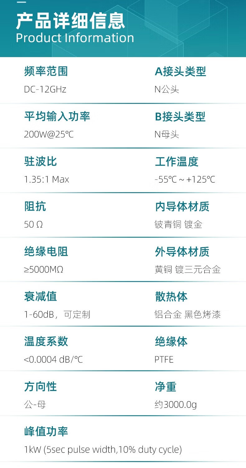 XINQY Xinqiyuan N-type high-power fixed attenuator 200W/300W/500W 0-12GHz RF signal test DC-12GHz, power 300W attenuation value 60dB
