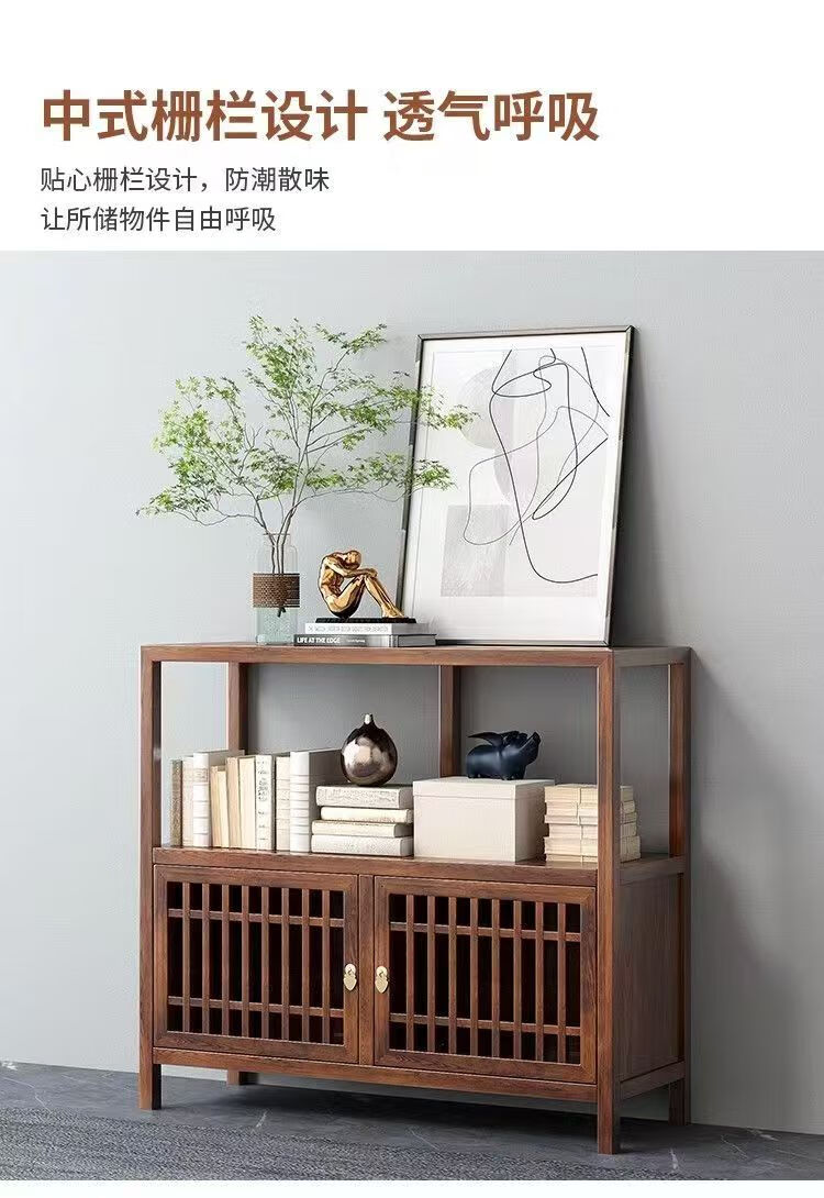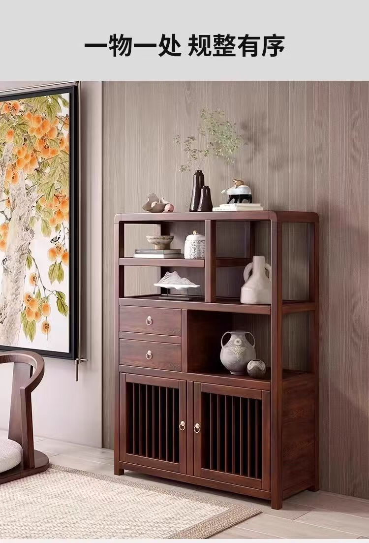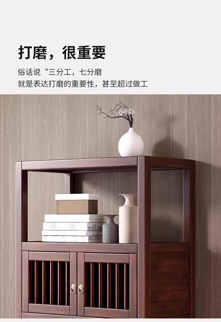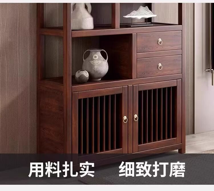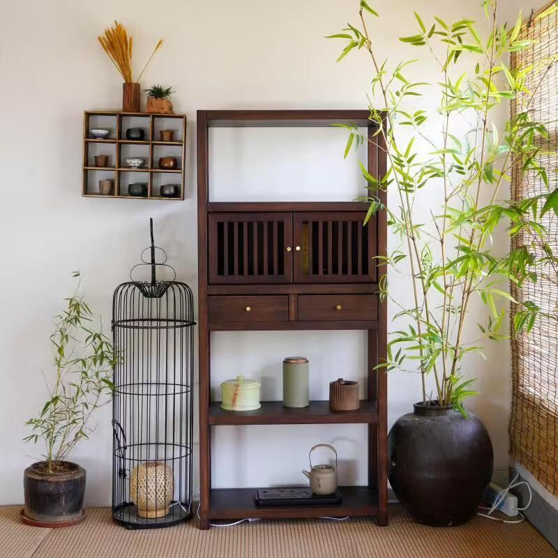 Pindao Xiaobo ancient rack solid wood tea cabinet tea room tea cabinet storage rack tea cabinet display rack tea shelf tea side cabinet storage black gold left cabinet Duobao Pavilion 80*33*120cm