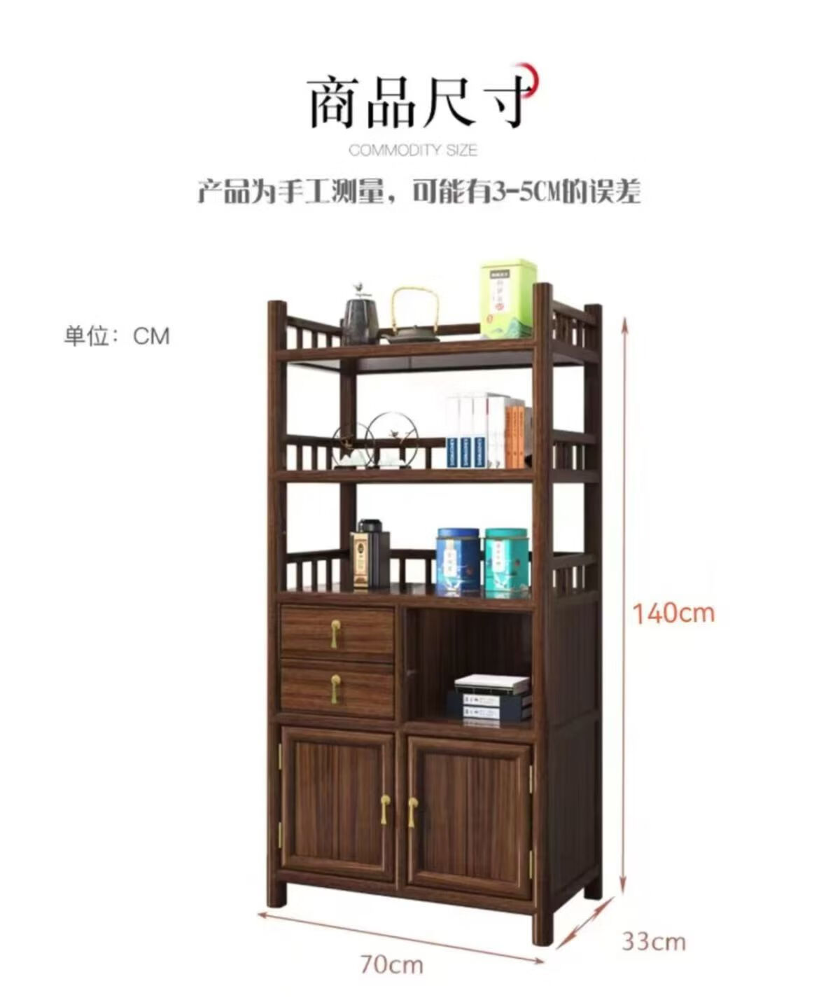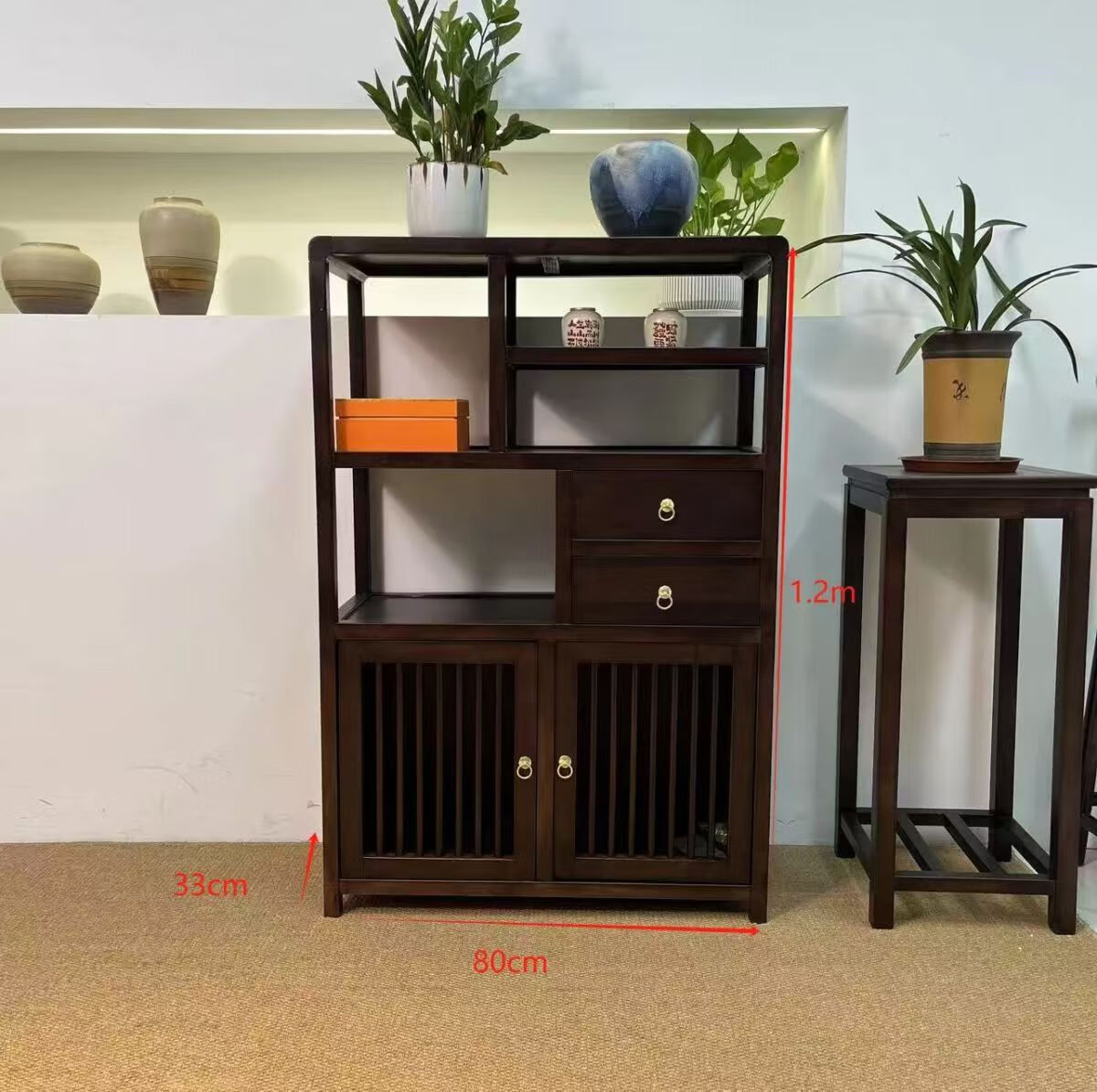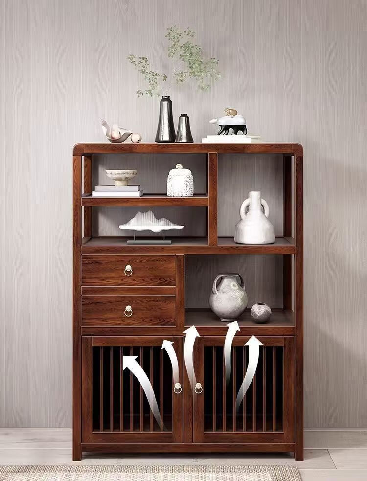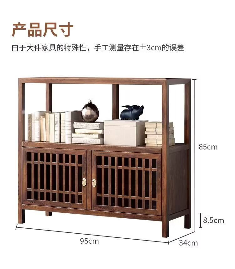 Pindao Xiaobo ancient rack solid wood tea cabinet tea room tea cabinet storage rack tea cabinet display rack tea shelf tea side cabinet storage black gold left cabinet Duobao Pavilion 80*33*120cm