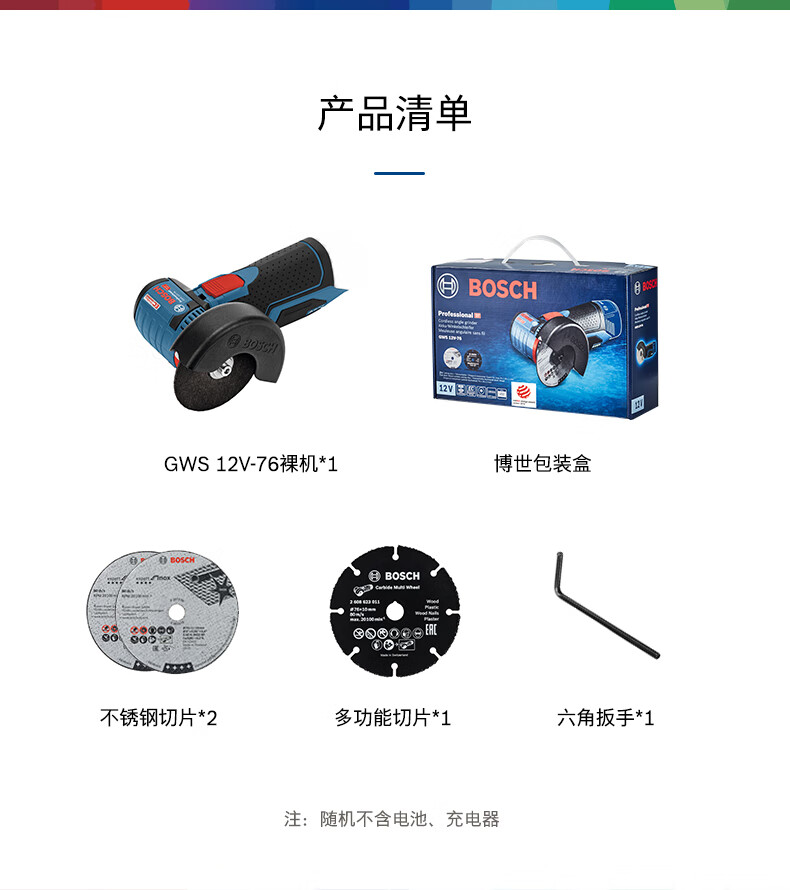 Bosch Bosch Xiaogangxia angle grinder lithium battery brushless mini cutting machine grinder GWS 12V-76 GWS 12V-76 bare metal (excluding battery)