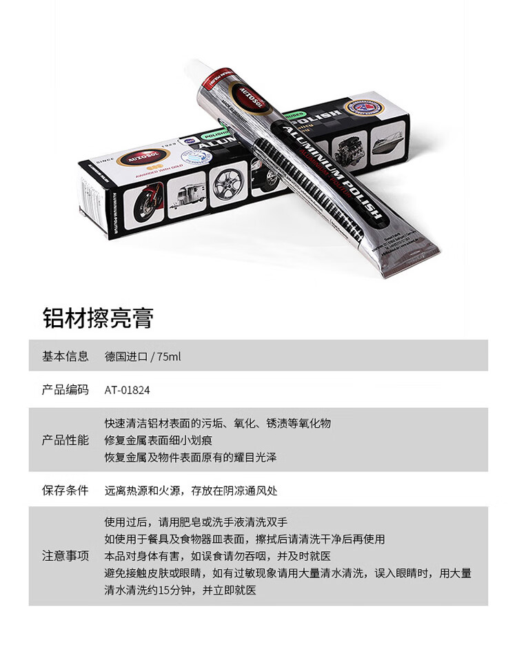 AUTOSOL aluminum metal polishing paste imported from Germany metal polishing rust remover aluminum alloy decontamination cleaning and renovation agent 75ml*1