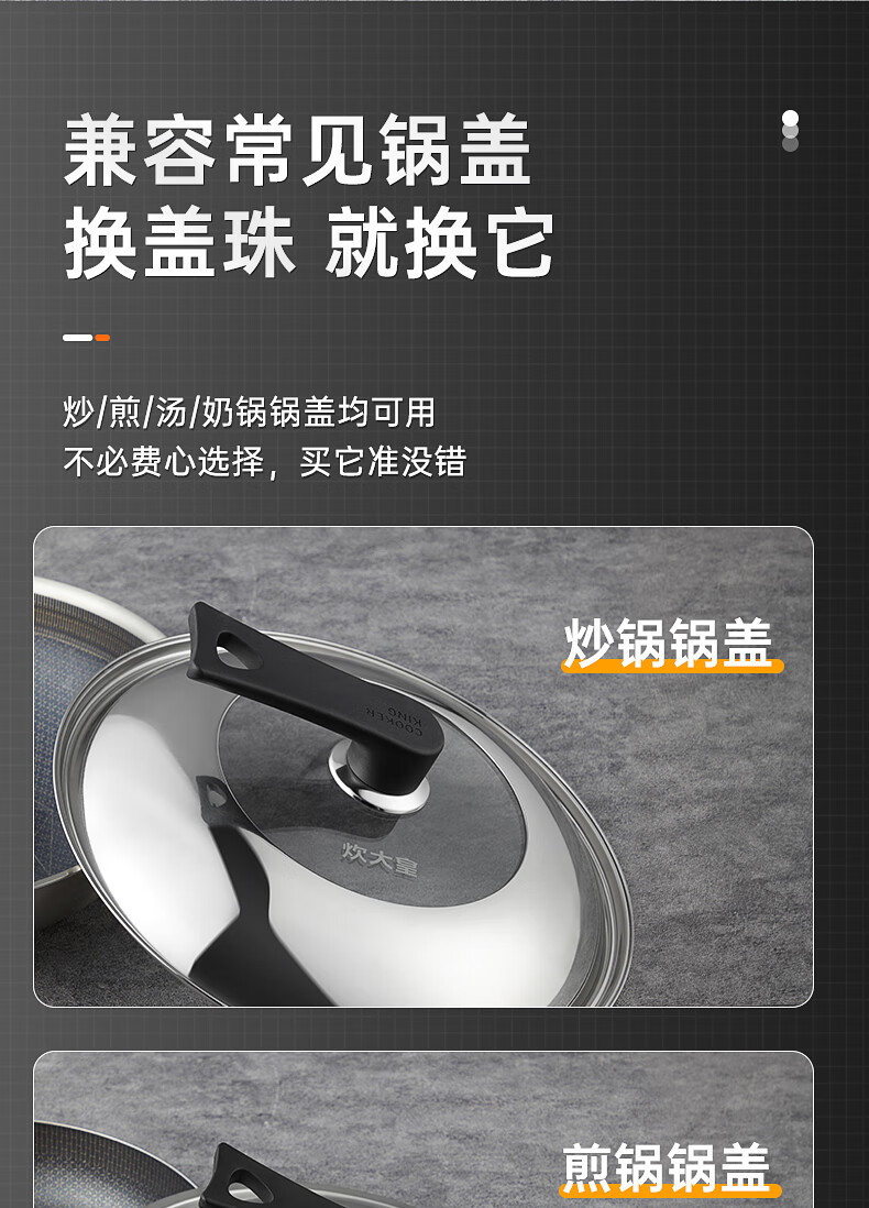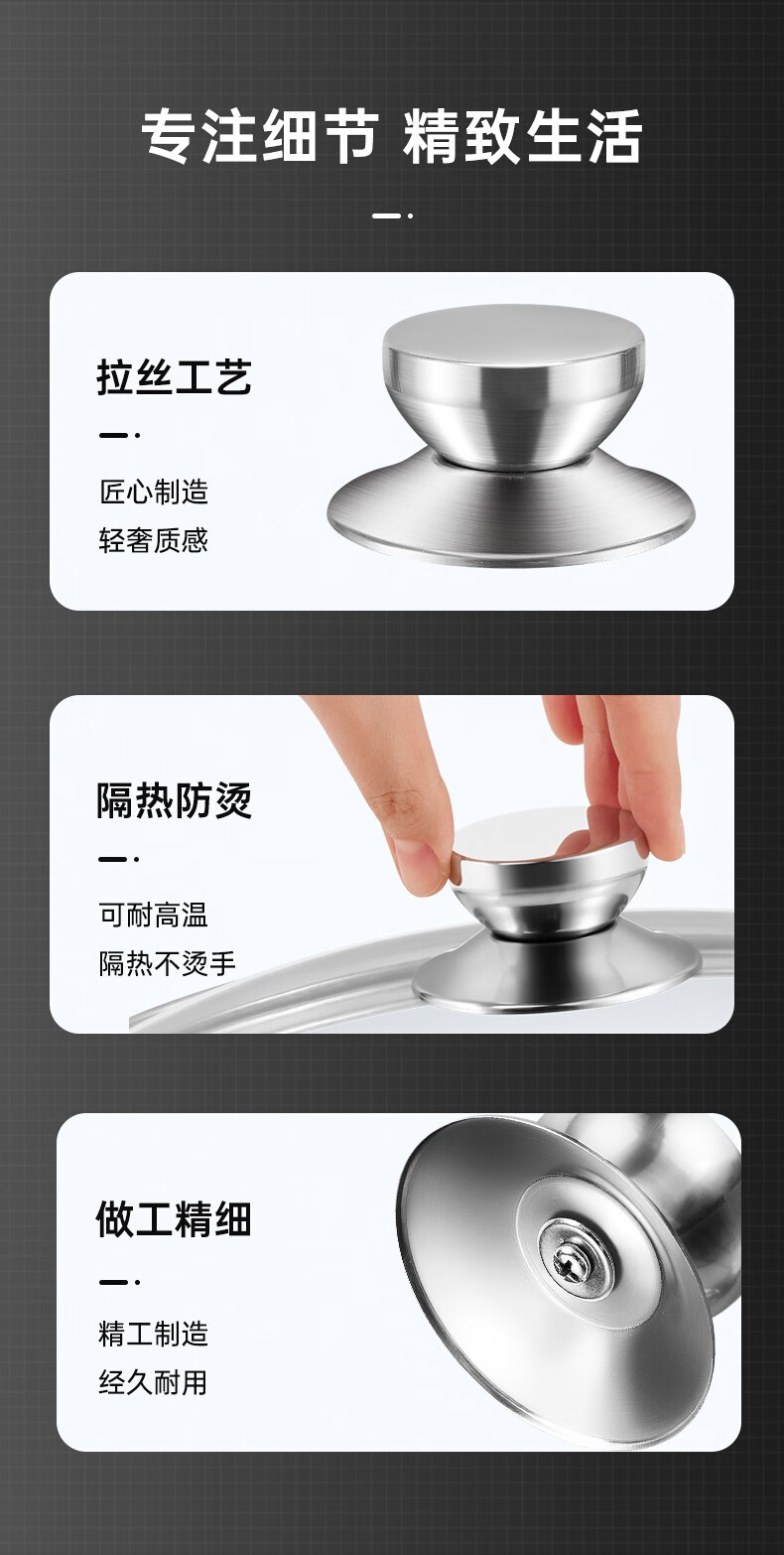 Chuidahuang Stainless Steel Pot Lid Bead Pot Lid Handle Lid Drop Combination Set Two Packs Suitable for All Types of Pots 1 Standing Lid Bead Suitable for 30-34cm Lid 15.5cm