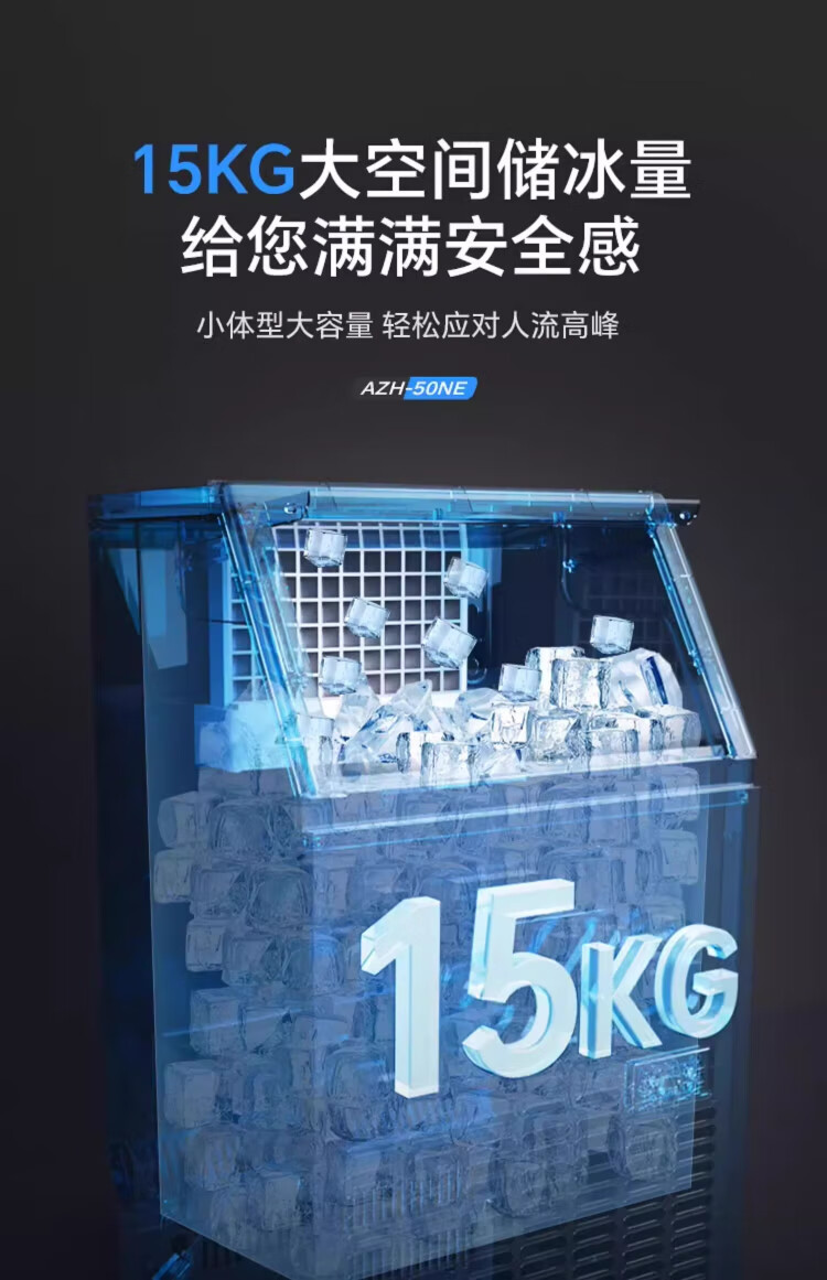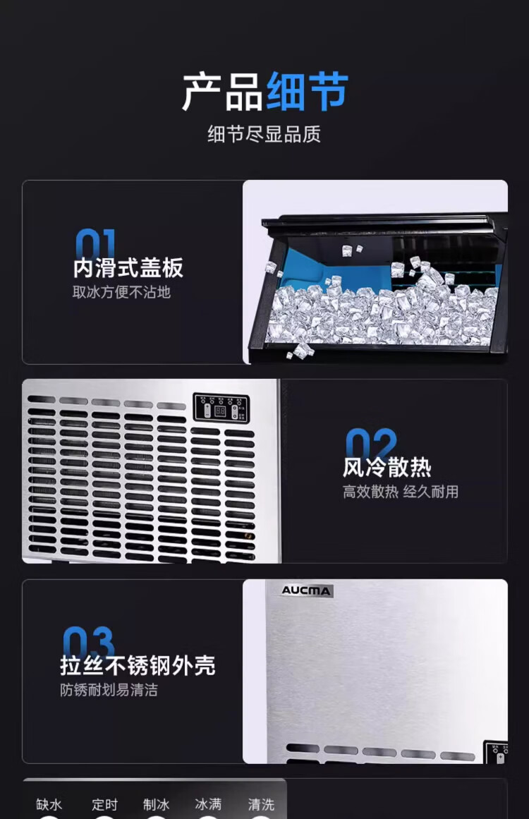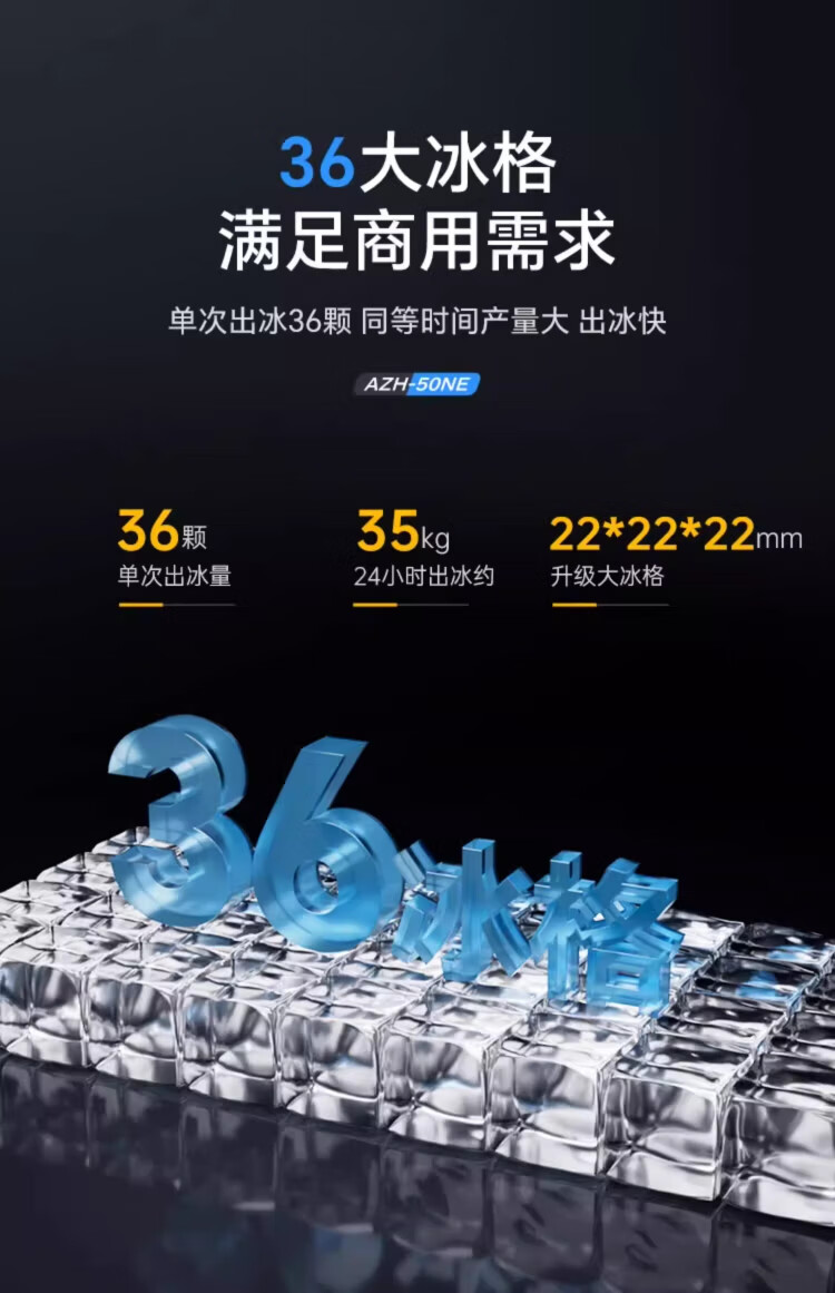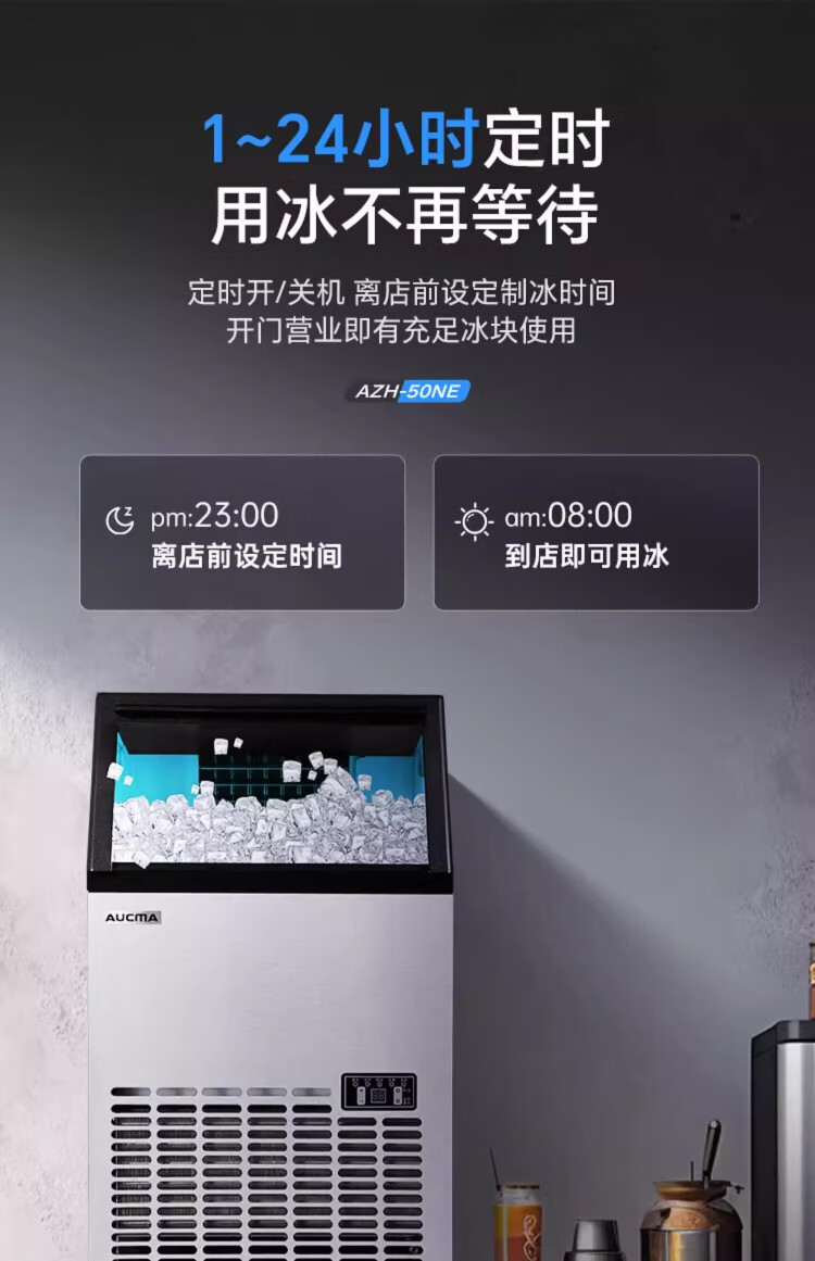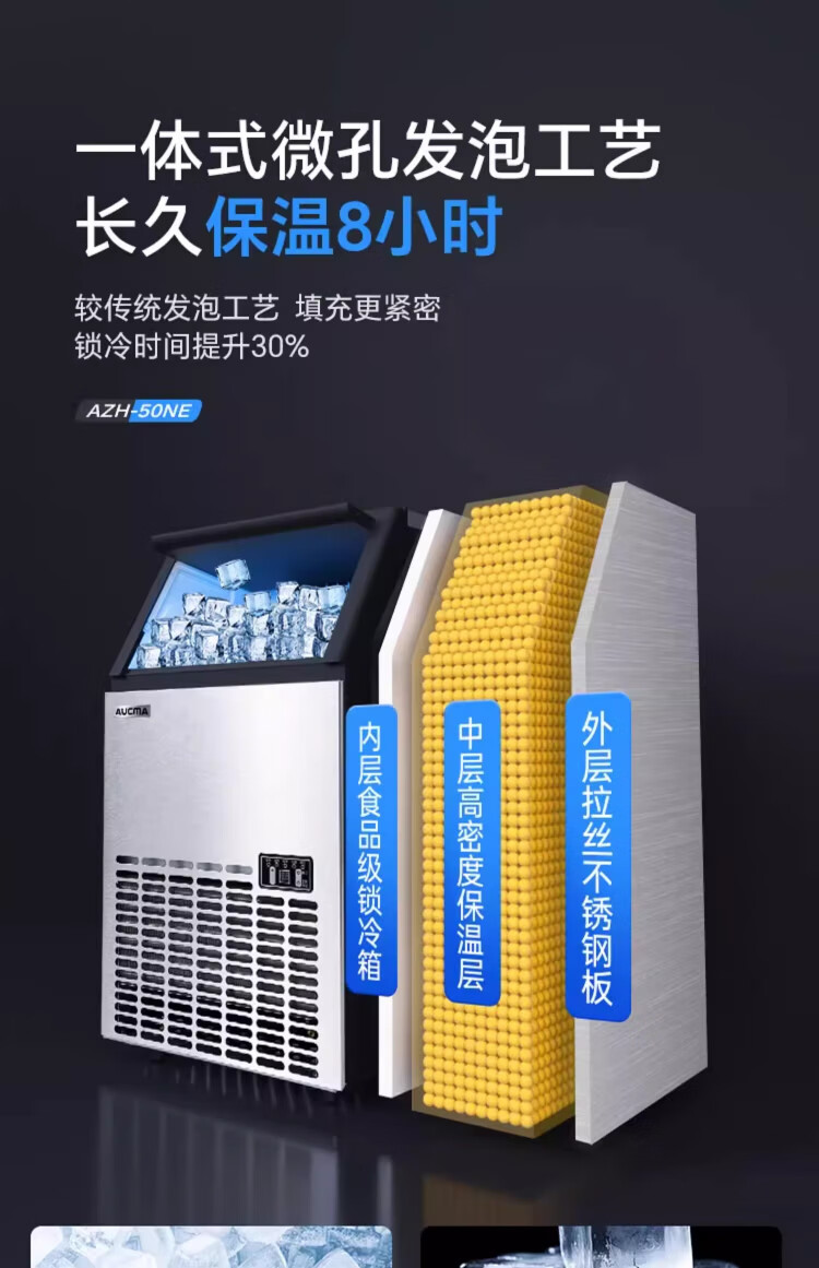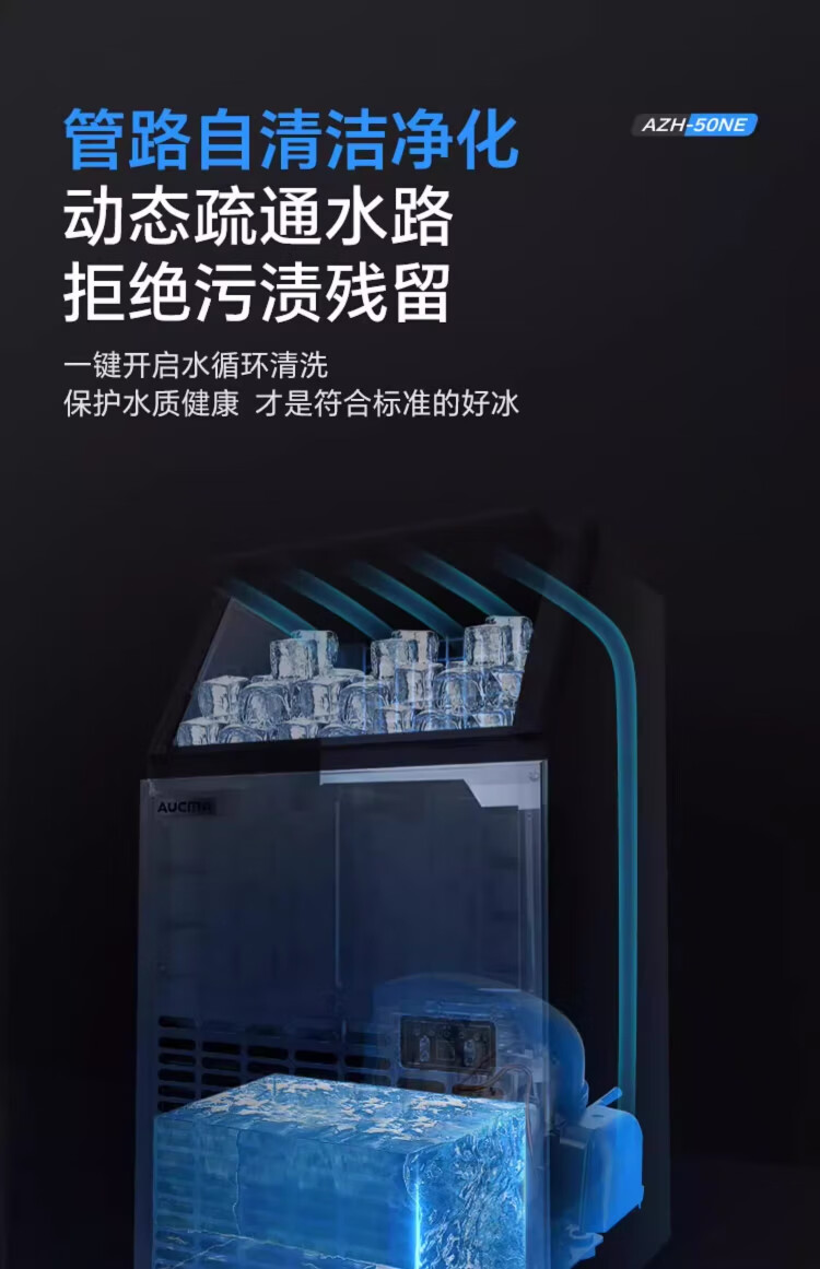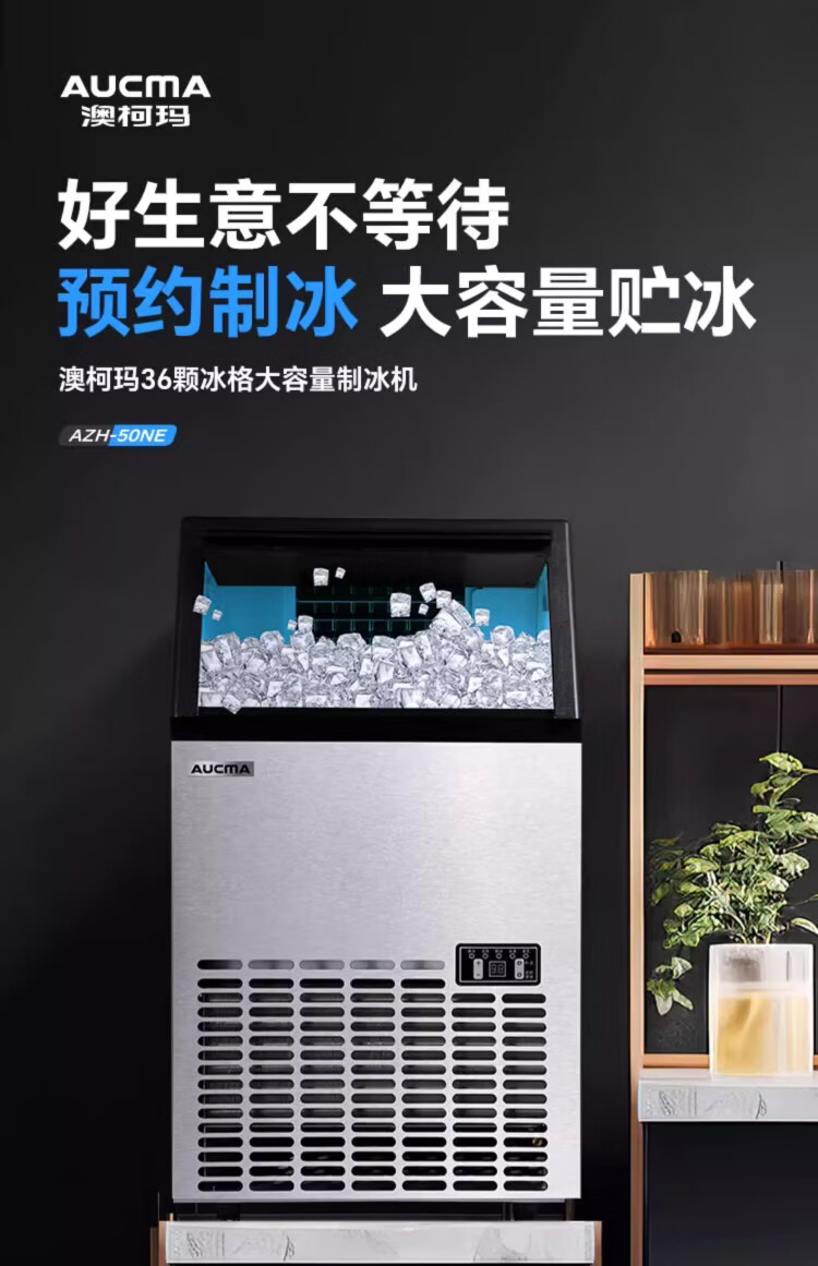 AUCMA ice making machine, commercial milk tea shop beverage fully automatic ice making machine, square ice large ice making machine, bar KTV large capacity ice making machine, ice cube making machine, daily 68kg 44 ice trays AZH-68CANE