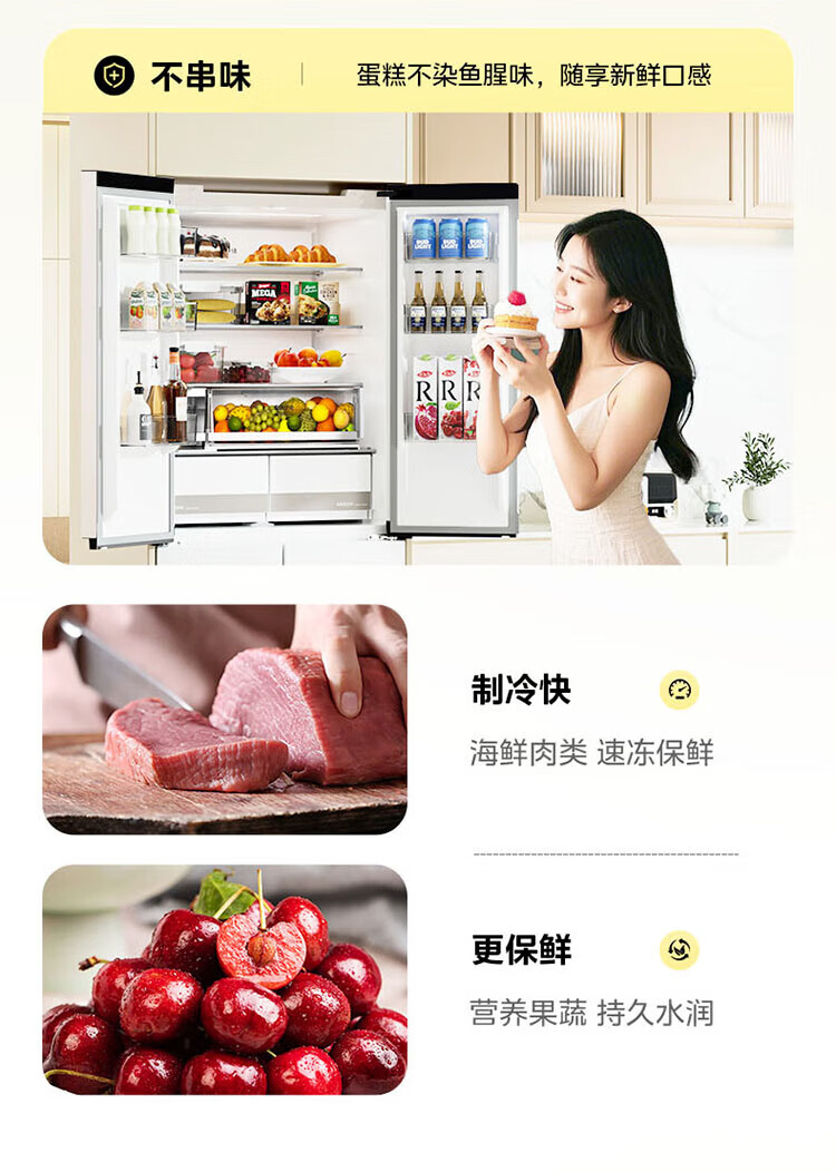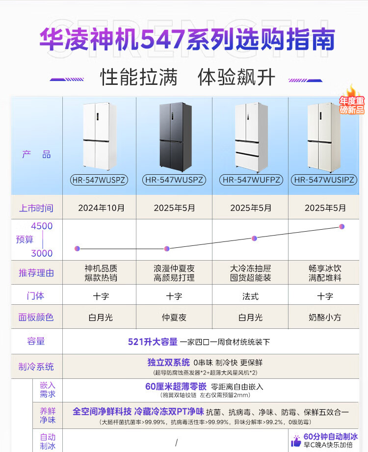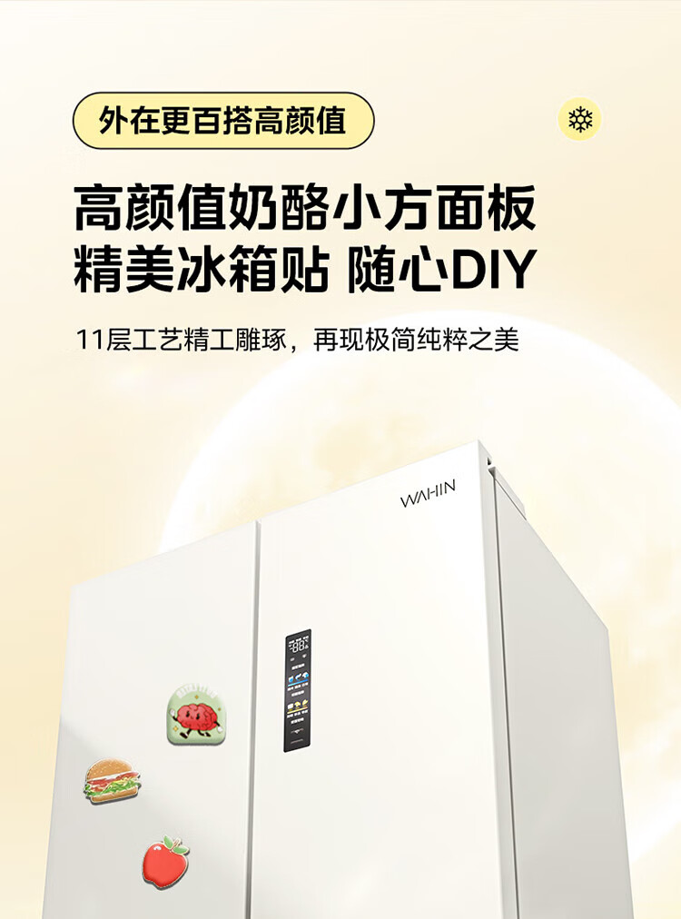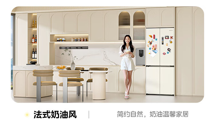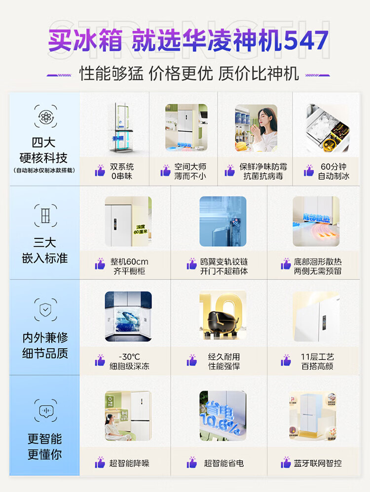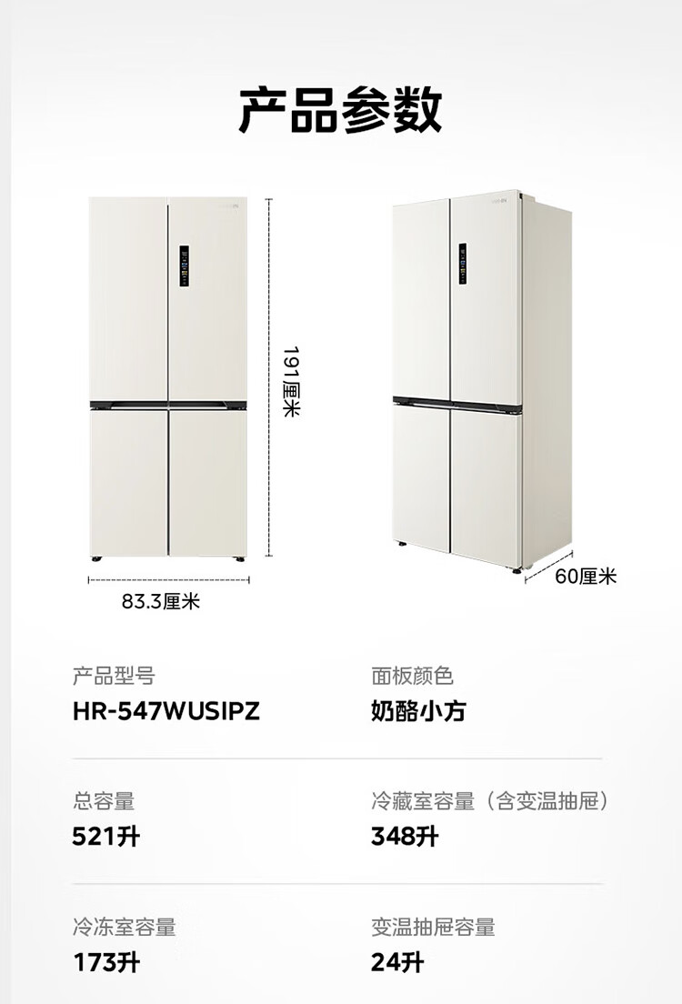 Hualing Shenji 547 Refrigerator Midea's fully automatic ice-making refrigerator cross-folding four-door first-class energy efficiency dual system 60cm ultra-thin zero-embedded refrigerator state subsidy HR-547WUSIPZ cheese cube