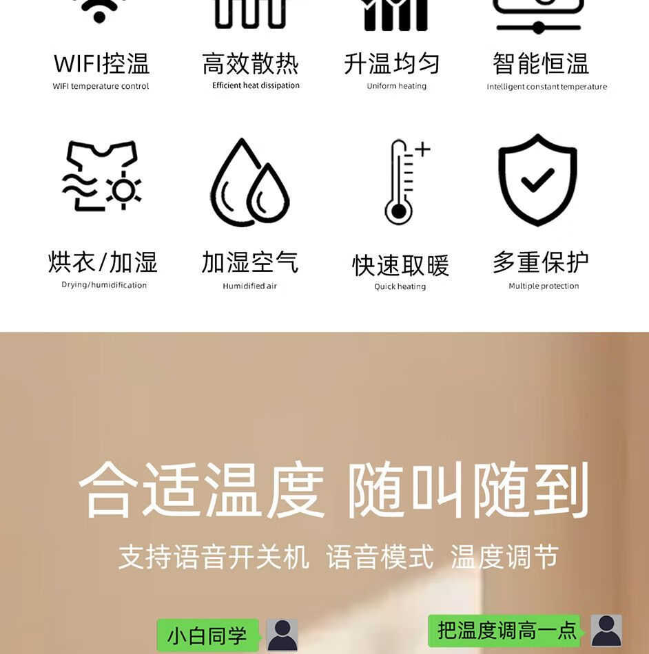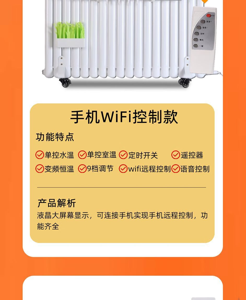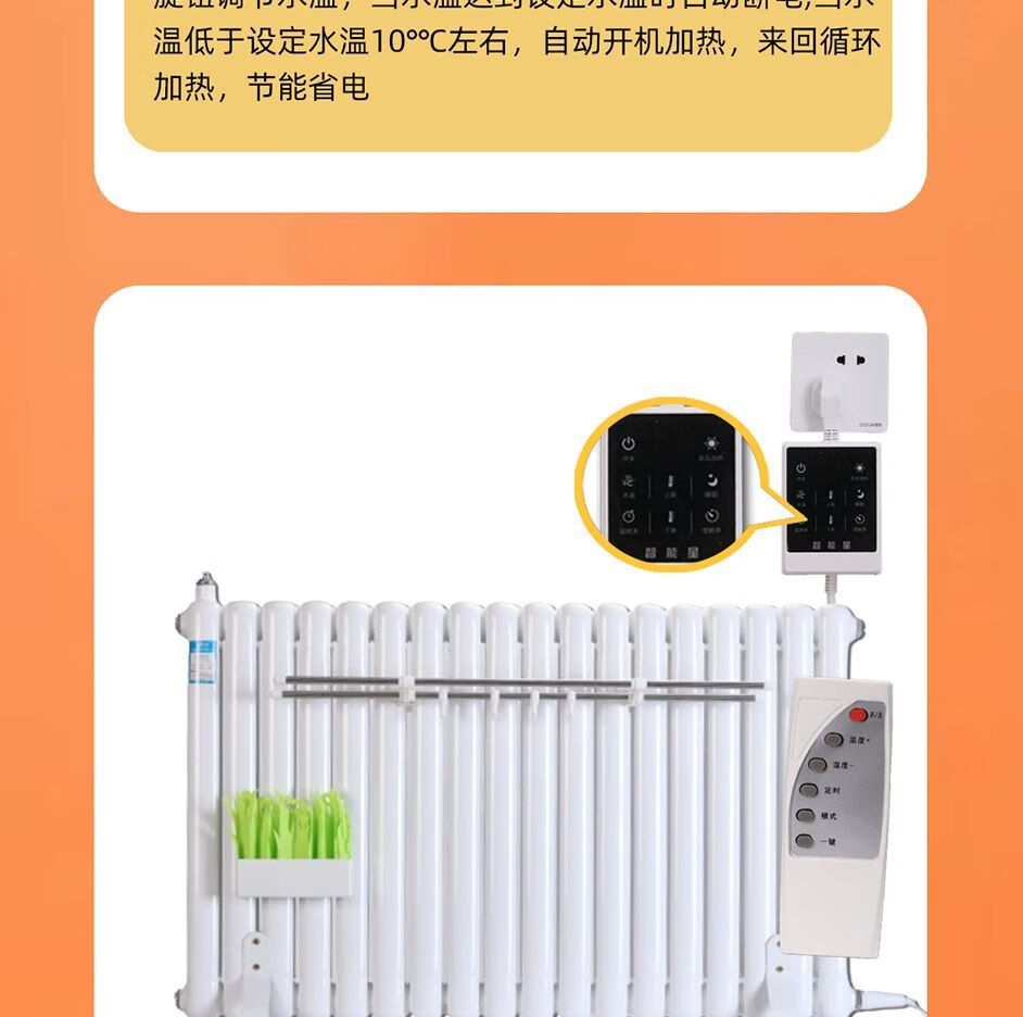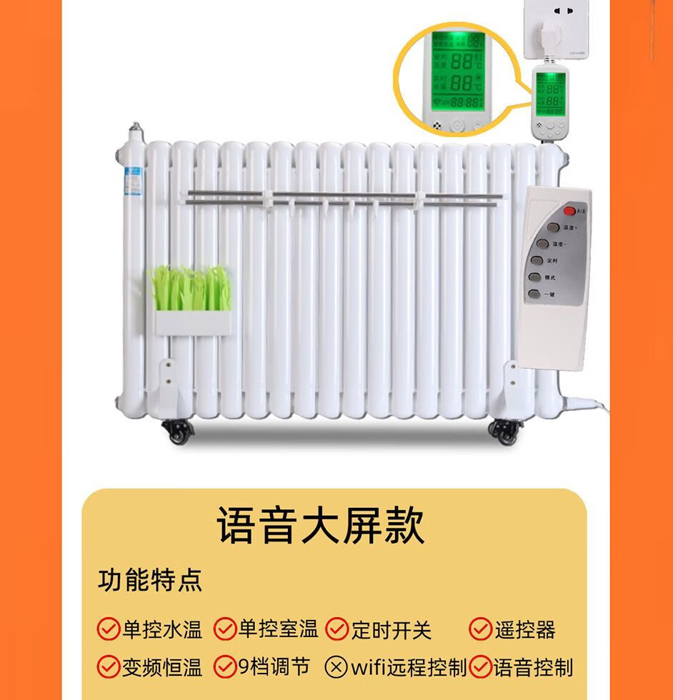 Qinkai water-injection electric heater household water-added electric heater radiator water circulation non-radiation electric heating steel water heating voice voice control large screen model classic double 10 notes for 8-12 square meters