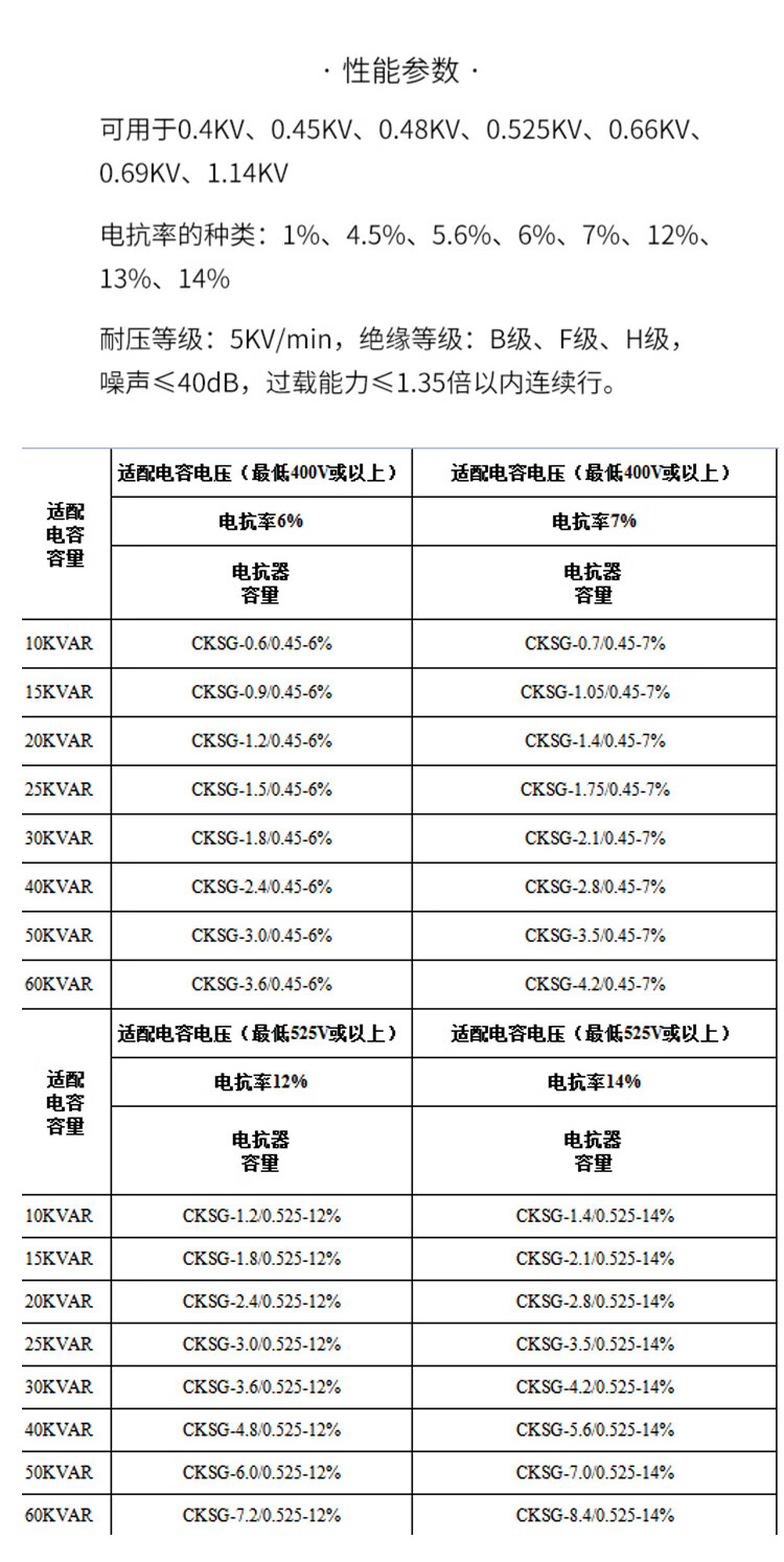 Cksg three-phase series reactor filter 30KVAR capacitor cabinet special reactance reactive power compensation reactor 2.1 aluminum 12% 5KVAR