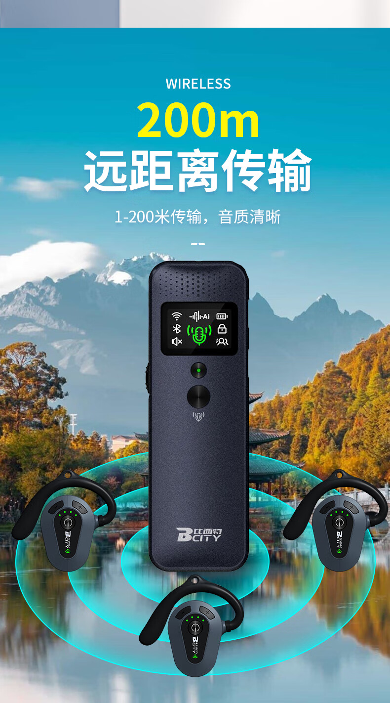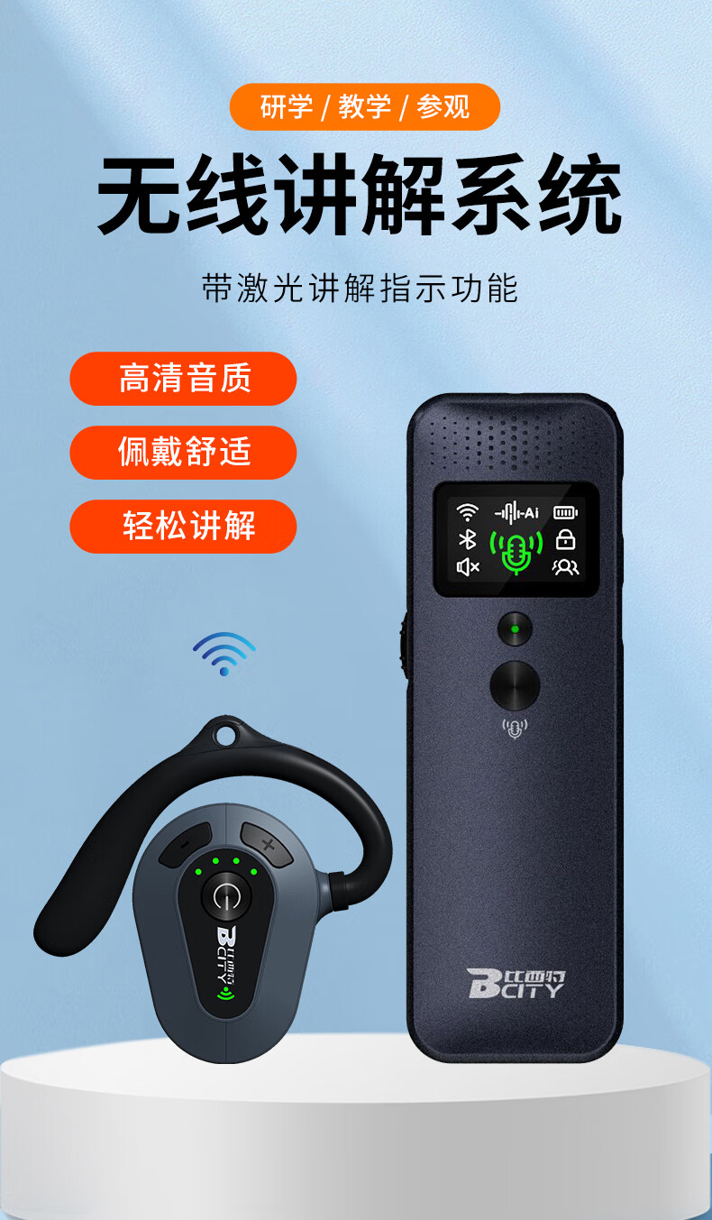 Bcity wireless interpreter museum tourist attraction one-to-many Bluetooth headset visit reception meeting simultaneous interpretation headset bcity721r/711r/911 tour guide interpreter 1 transmitter + 100 listening set
