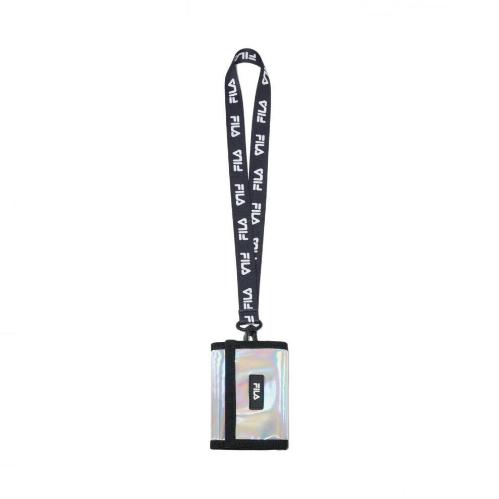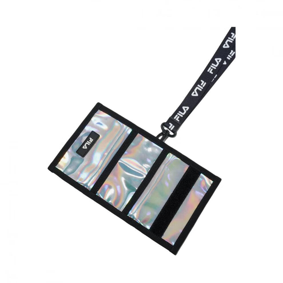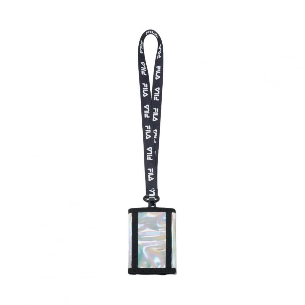 FILA brand logo detachable necklace strap polyurethane wallet children's black black