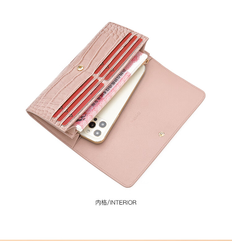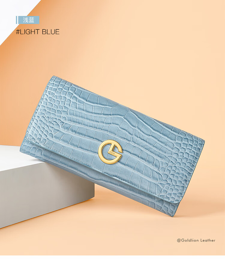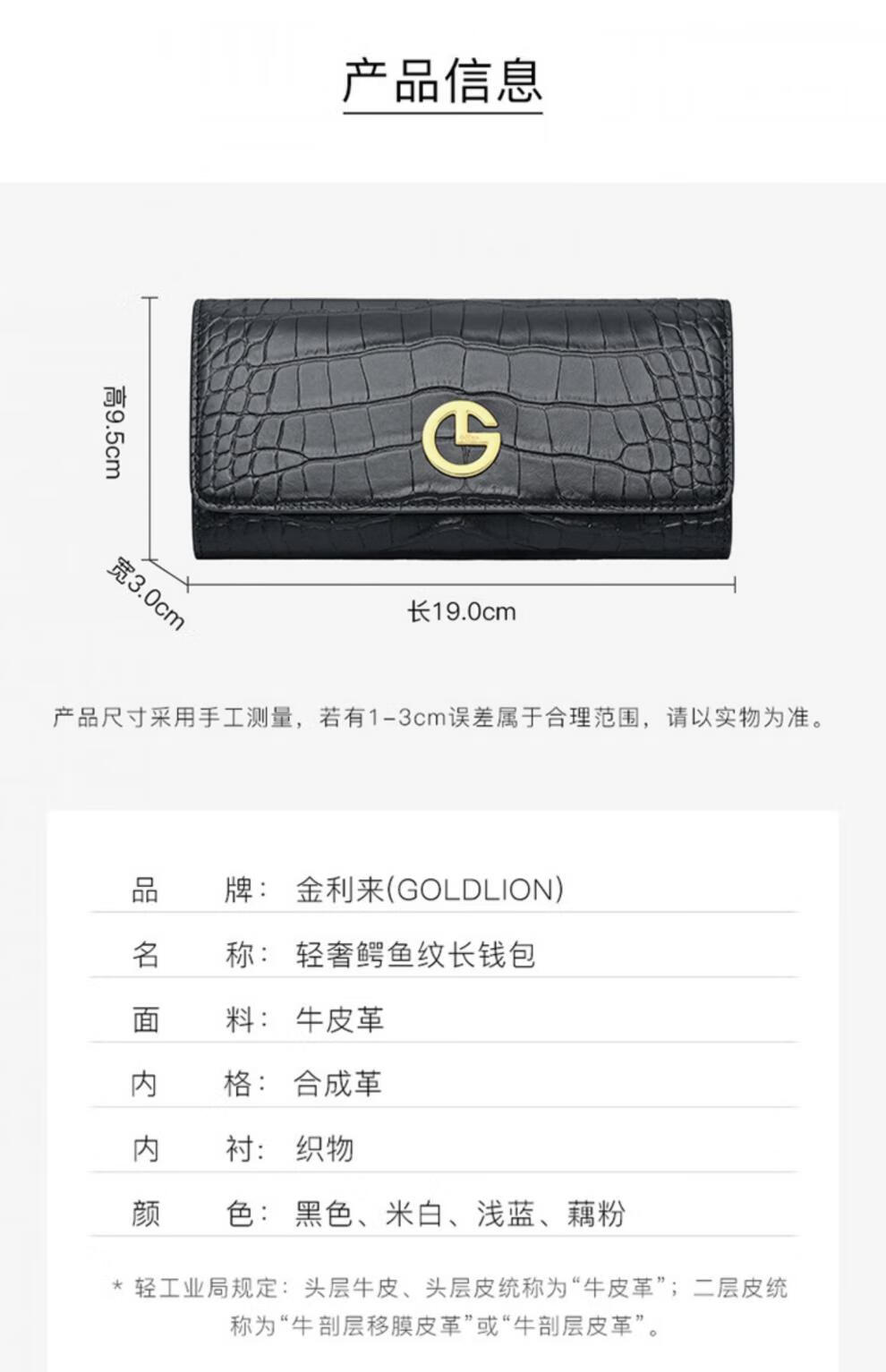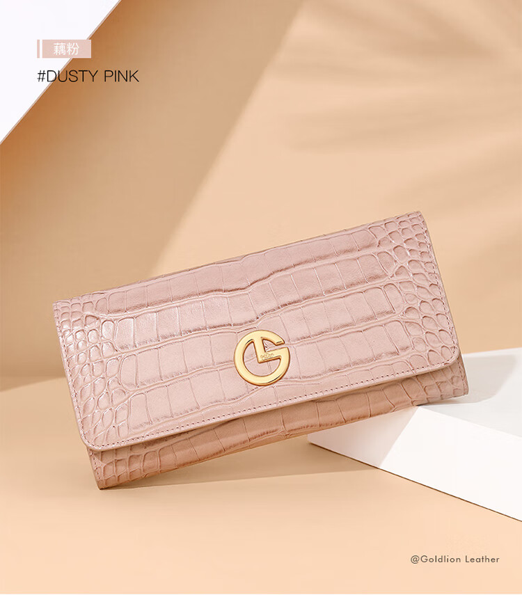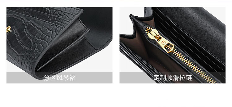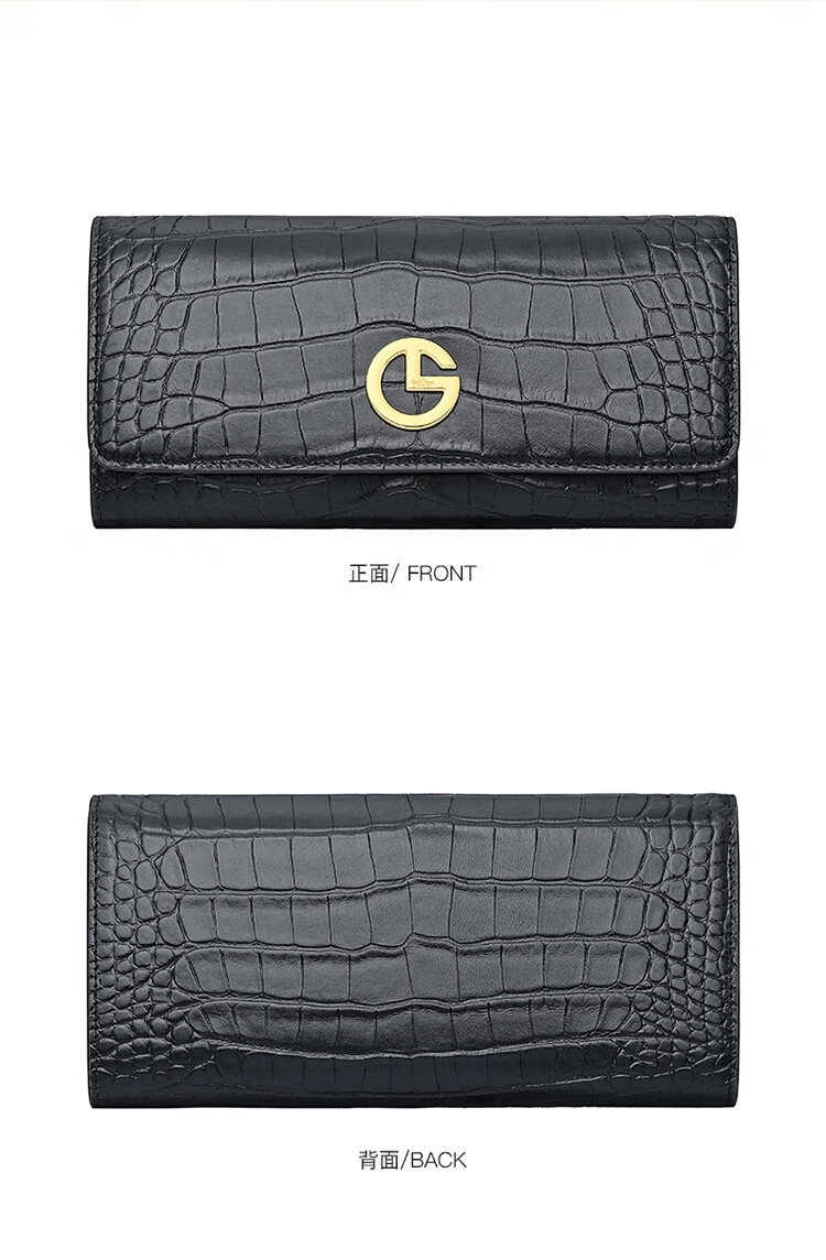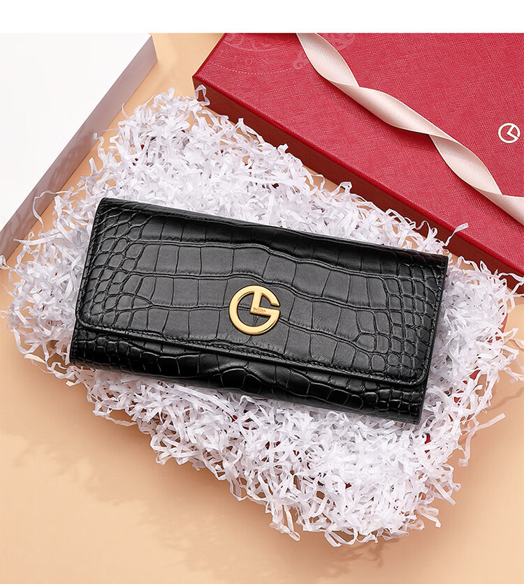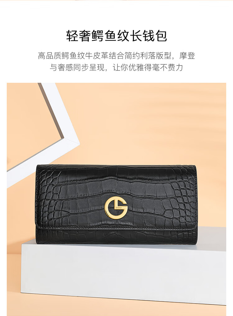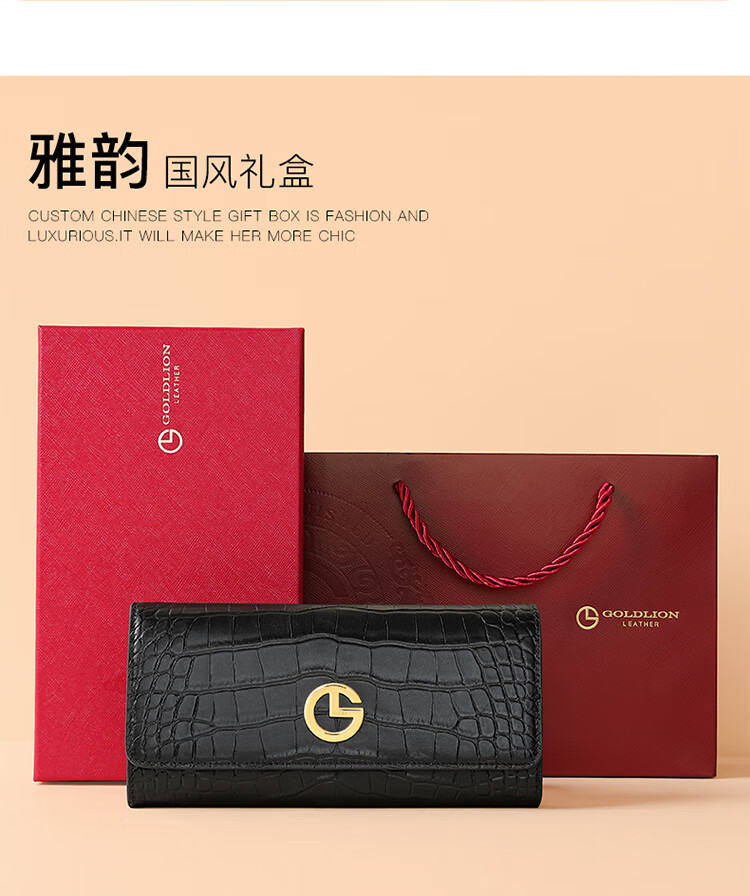 Goldlion women's bag 2025 hot fashion crocodile pattern wallet long women's handbag simple temperament women's wallet black