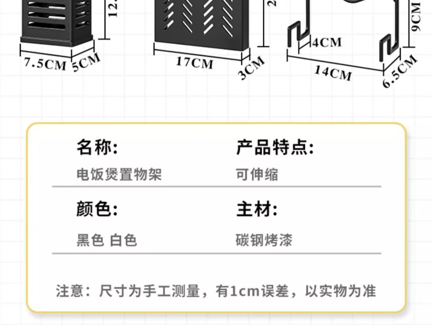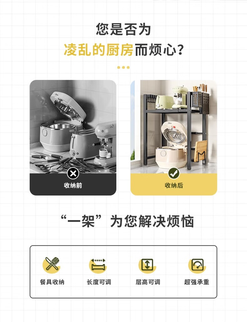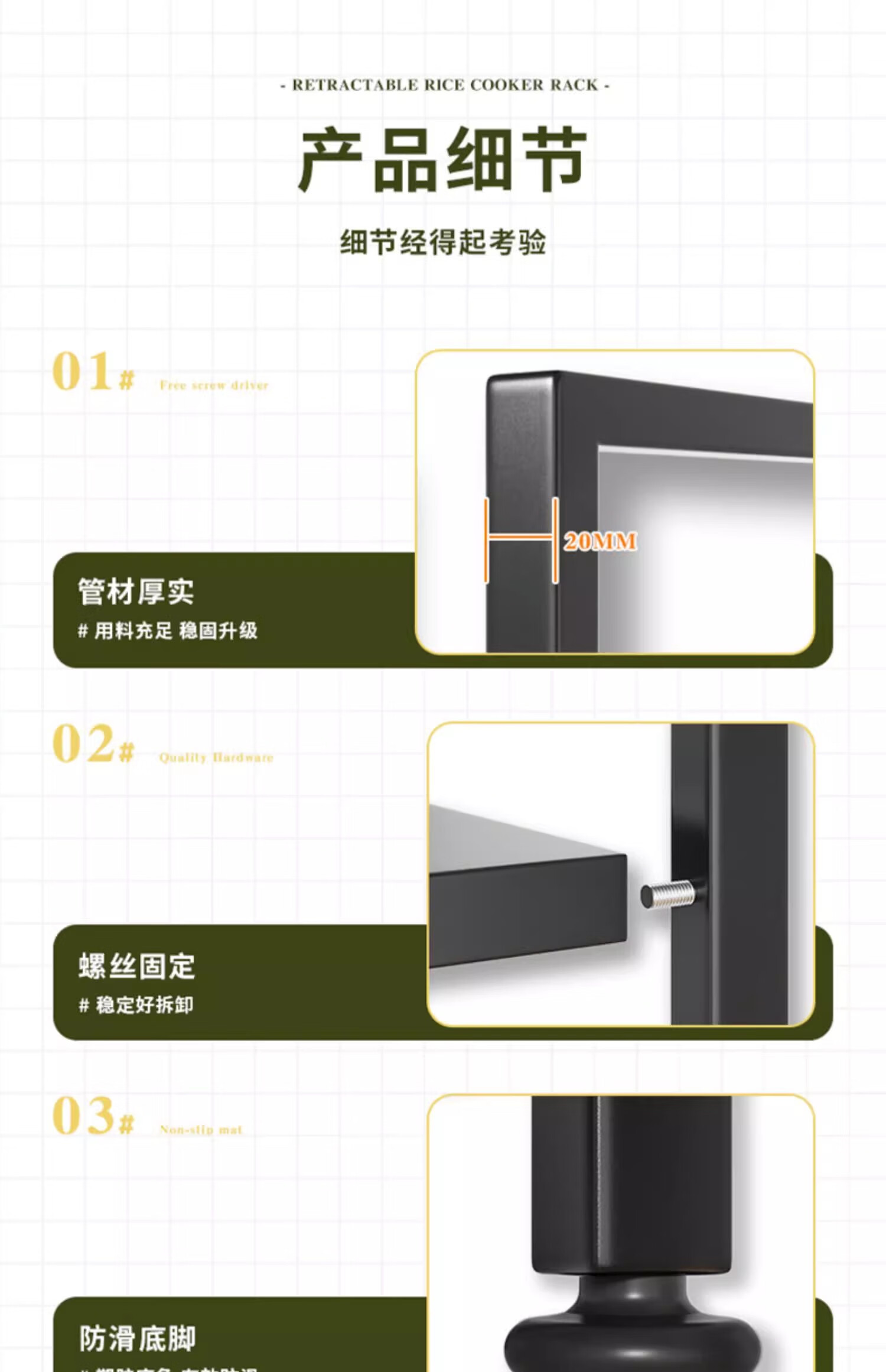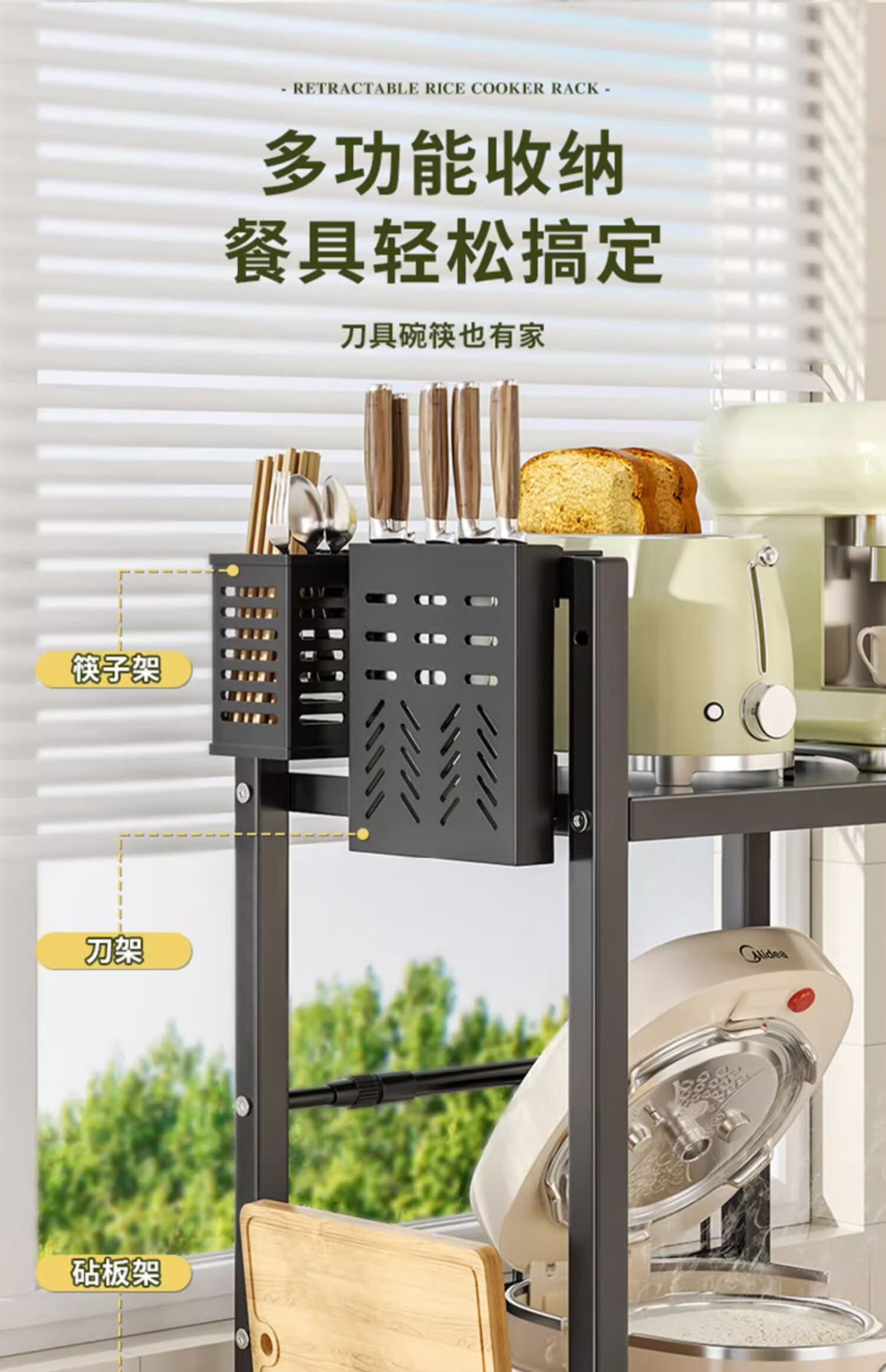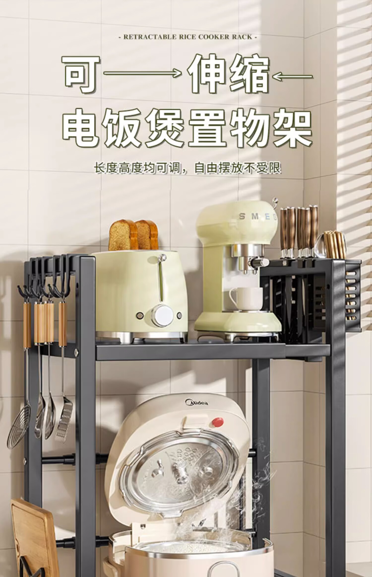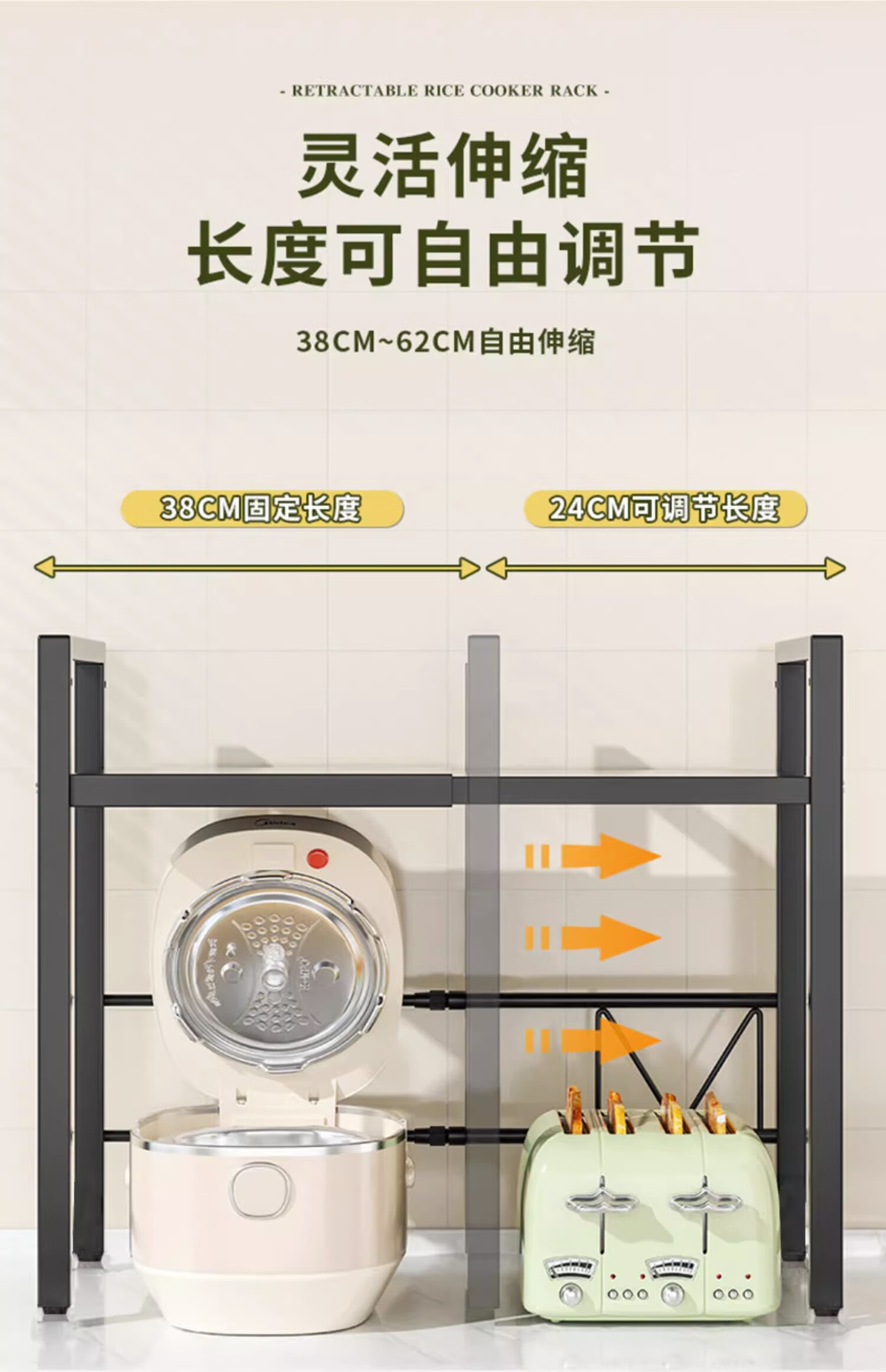 Home kitchen kitchen storage rack retractable rice cooker storage rack oven storage rack household countertop storage rack multi-function rack black 3-speed adjustment + hook