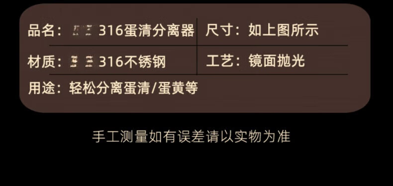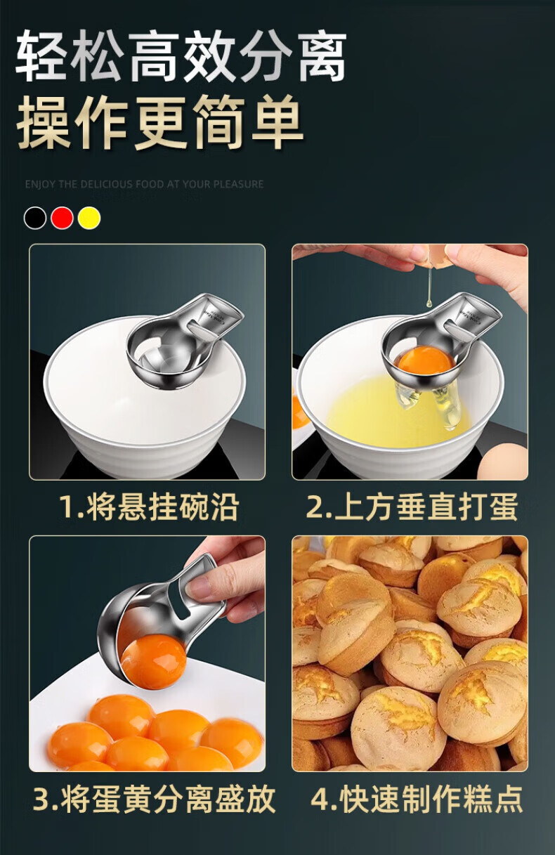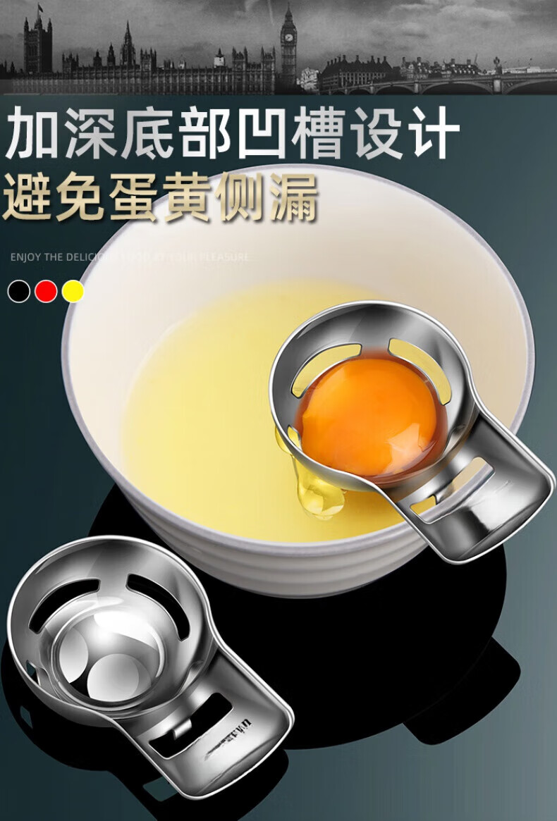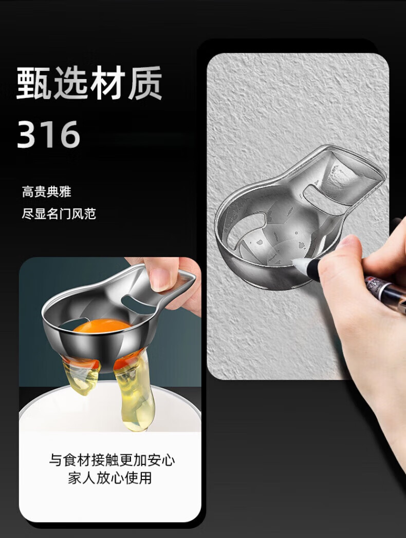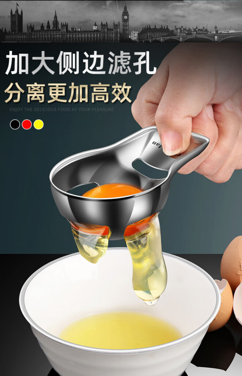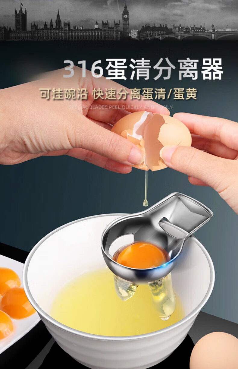 Shijin German quality egg separator egg white and yolk separator 316 stainless steel food supplement baking protein egg liquid filter separator 316 egg white separator can be hung on the edge of the bowl