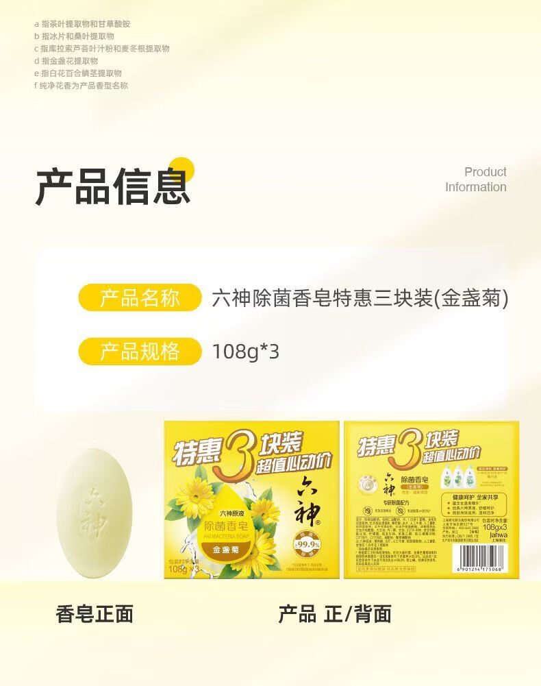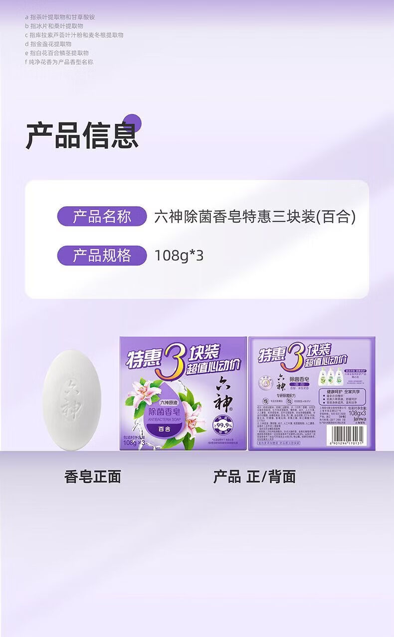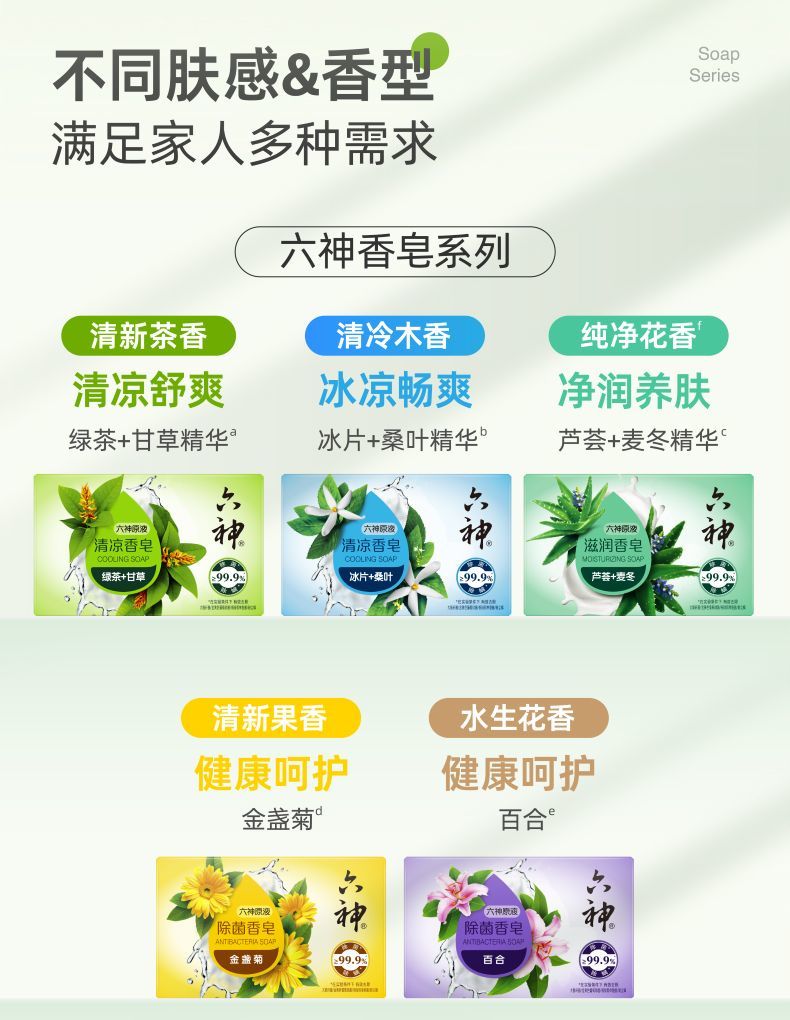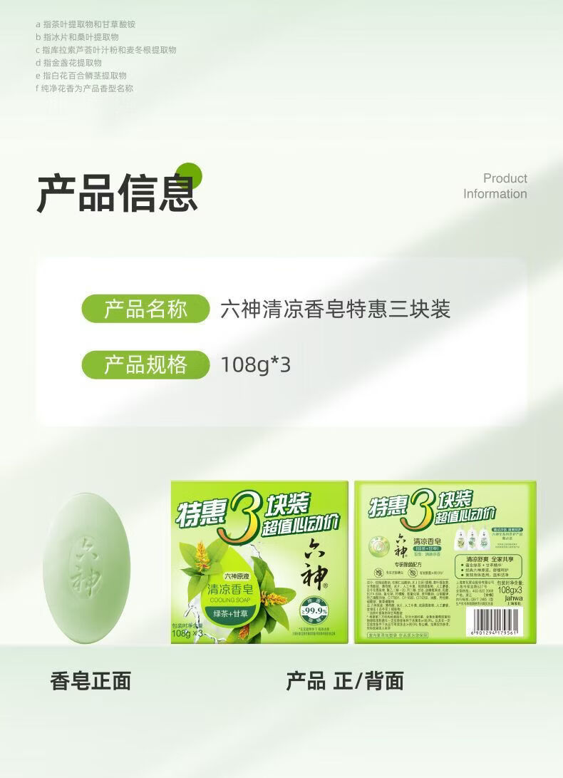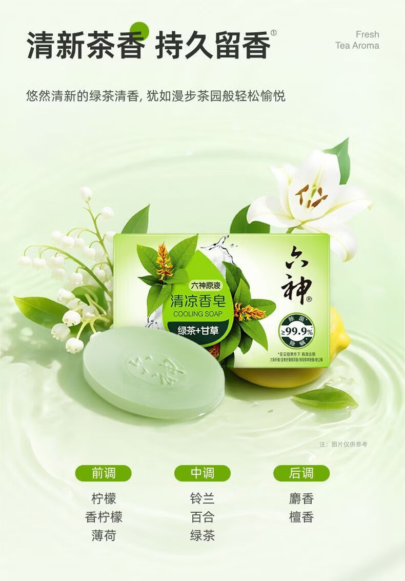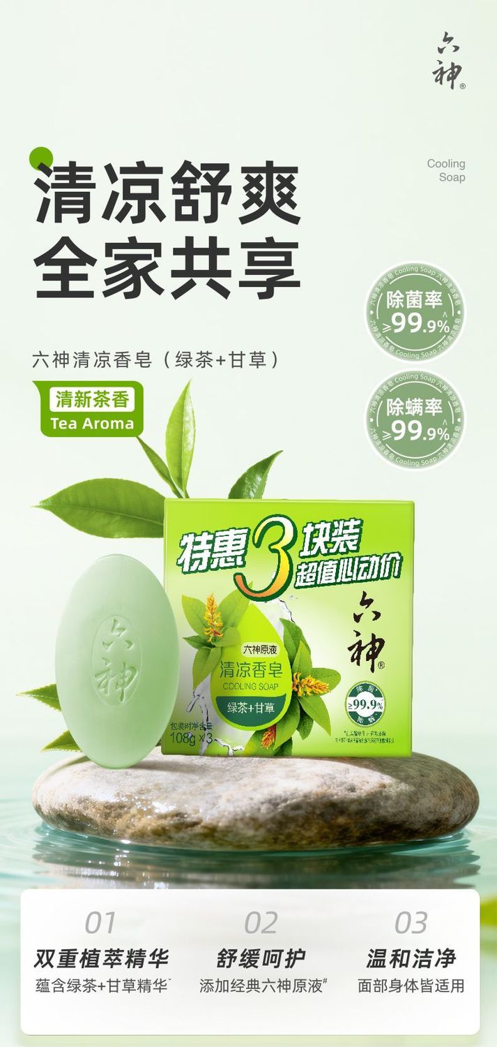 Liushen Soap Antibacterial Hand Washing Face Cleansing Bath Family Soap Green Tea + Licorice 108g*3 Pieces Refreshing