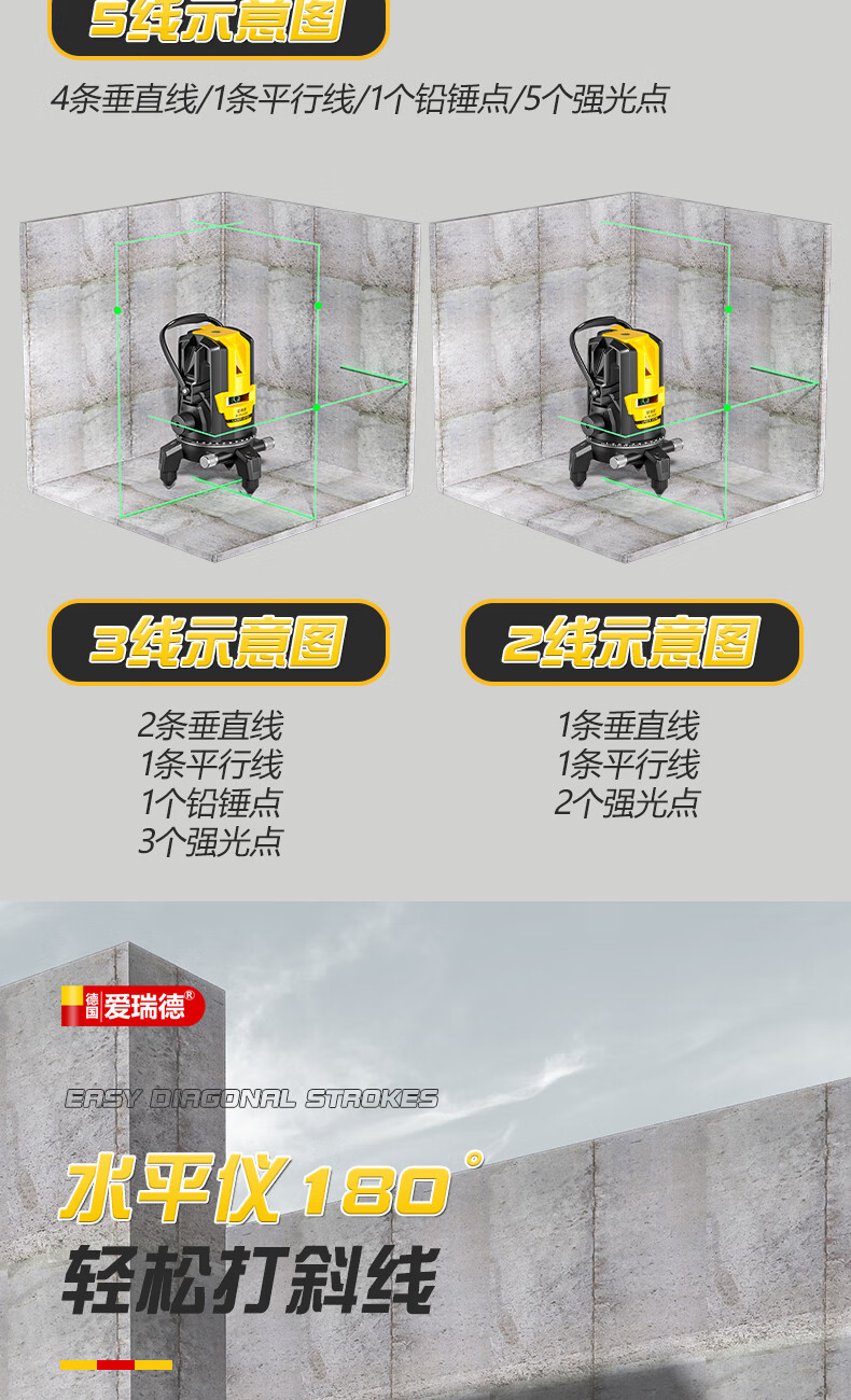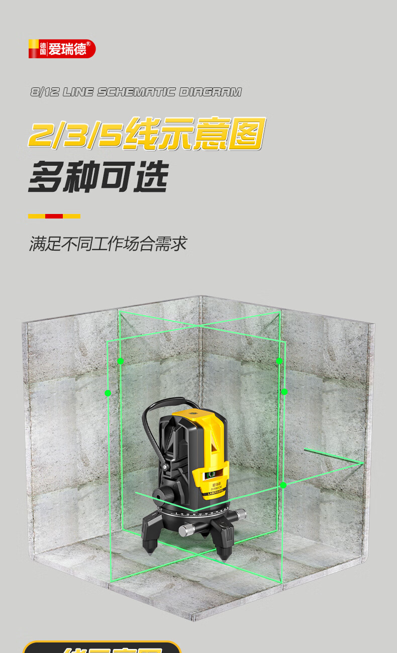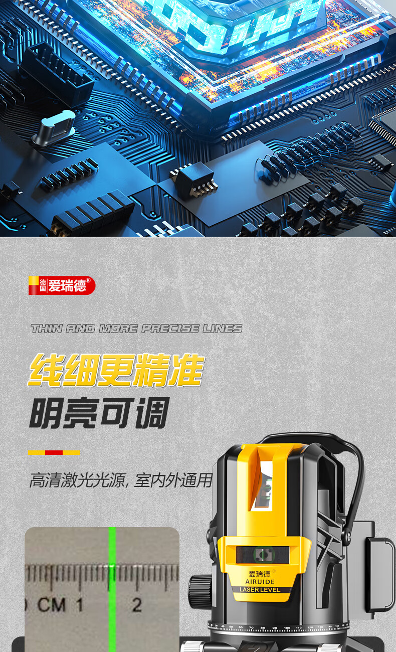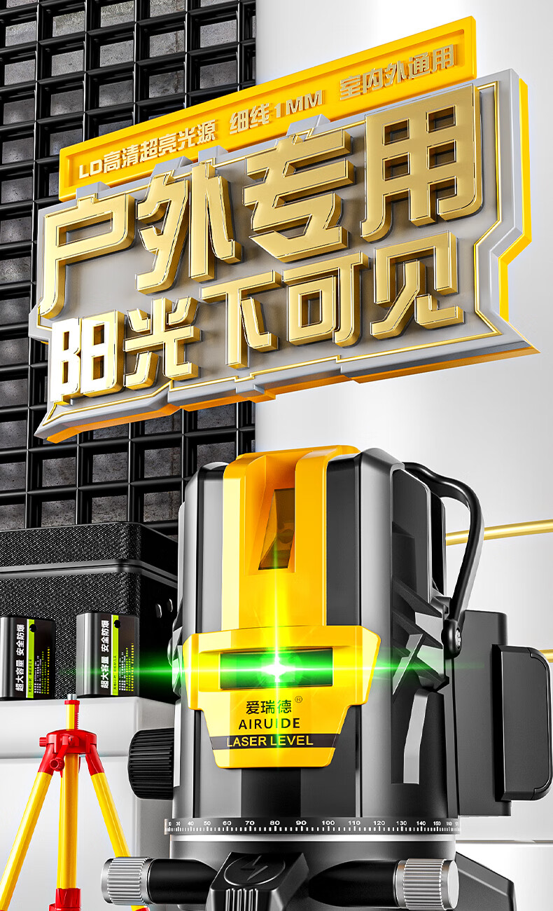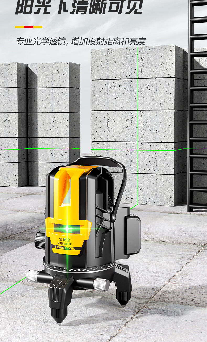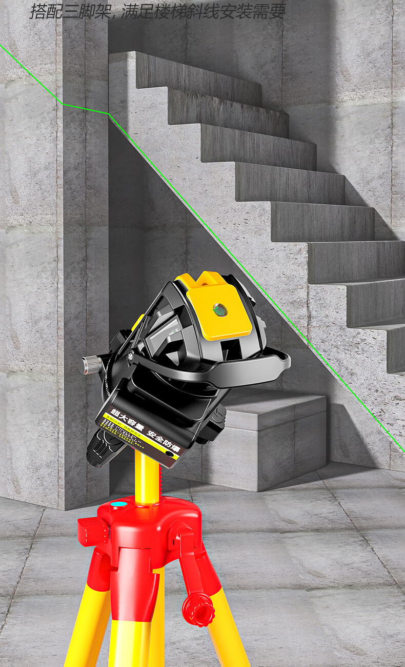 Aided infrared level meter, leveling meter, level ruler, green light, high-precision laser level, wall-mounted meter, floor-mounted line meter, five-wire enhanced green light, visible outdoors, tripod