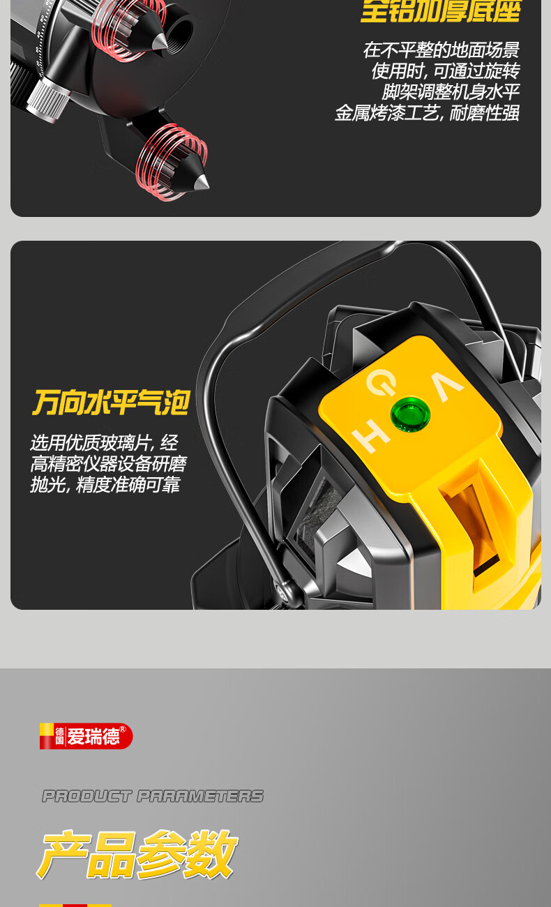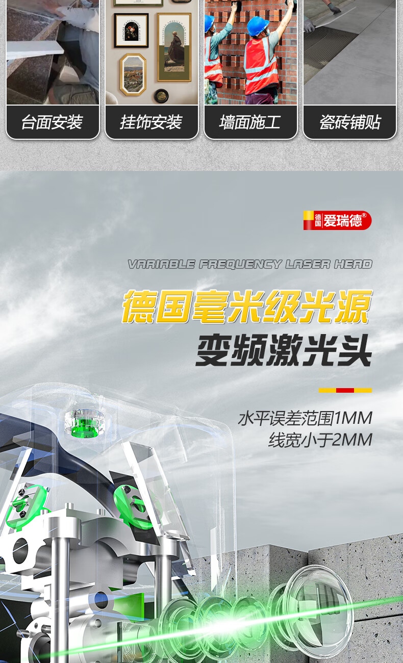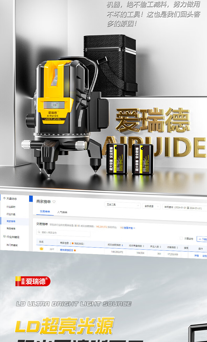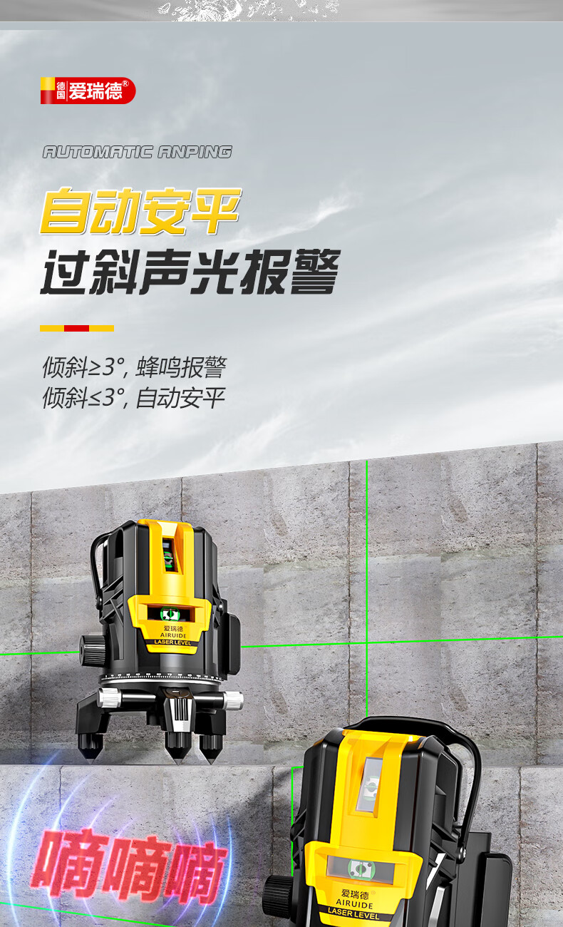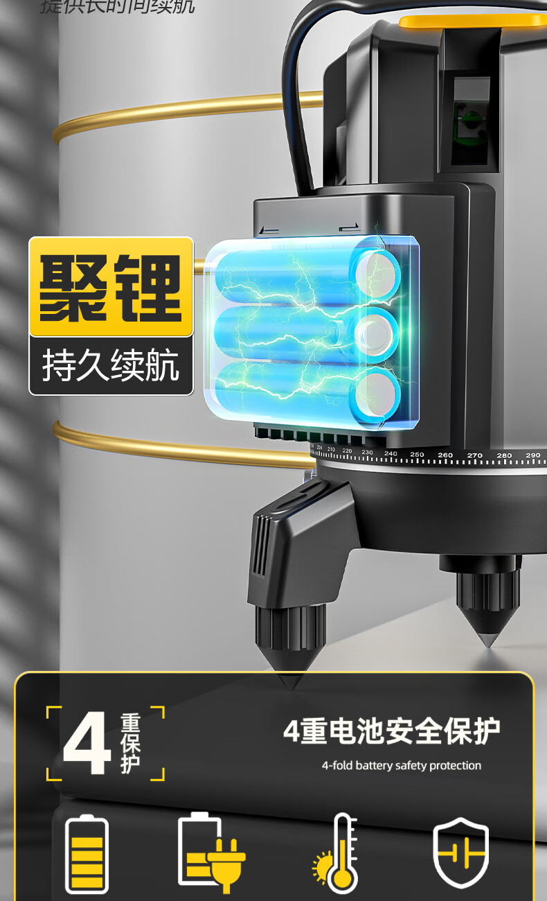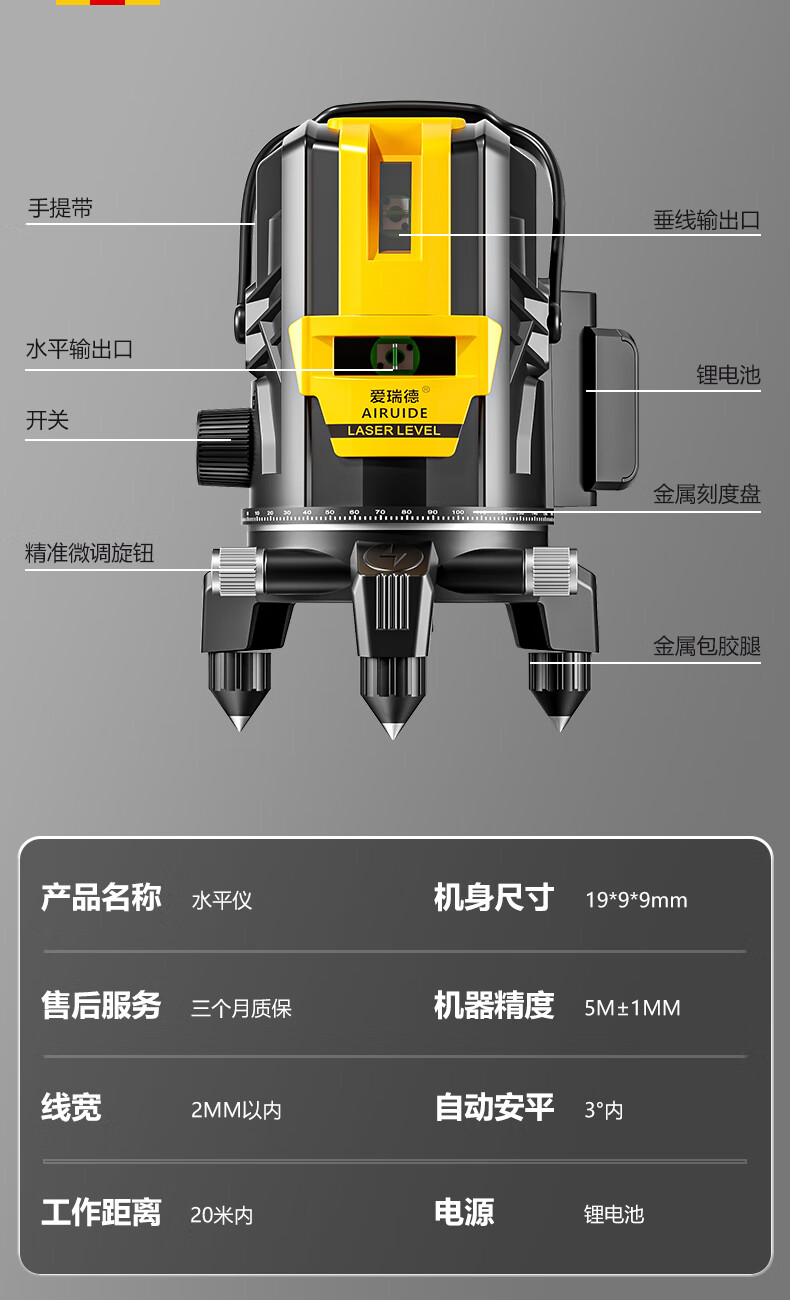 Aided infrared level meter, leveling meter, level ruler, green light, high-precision laser level, wall-mounted meter, floor-mounted line meter, five-wire enhanced green light, visible outdoors, tripod