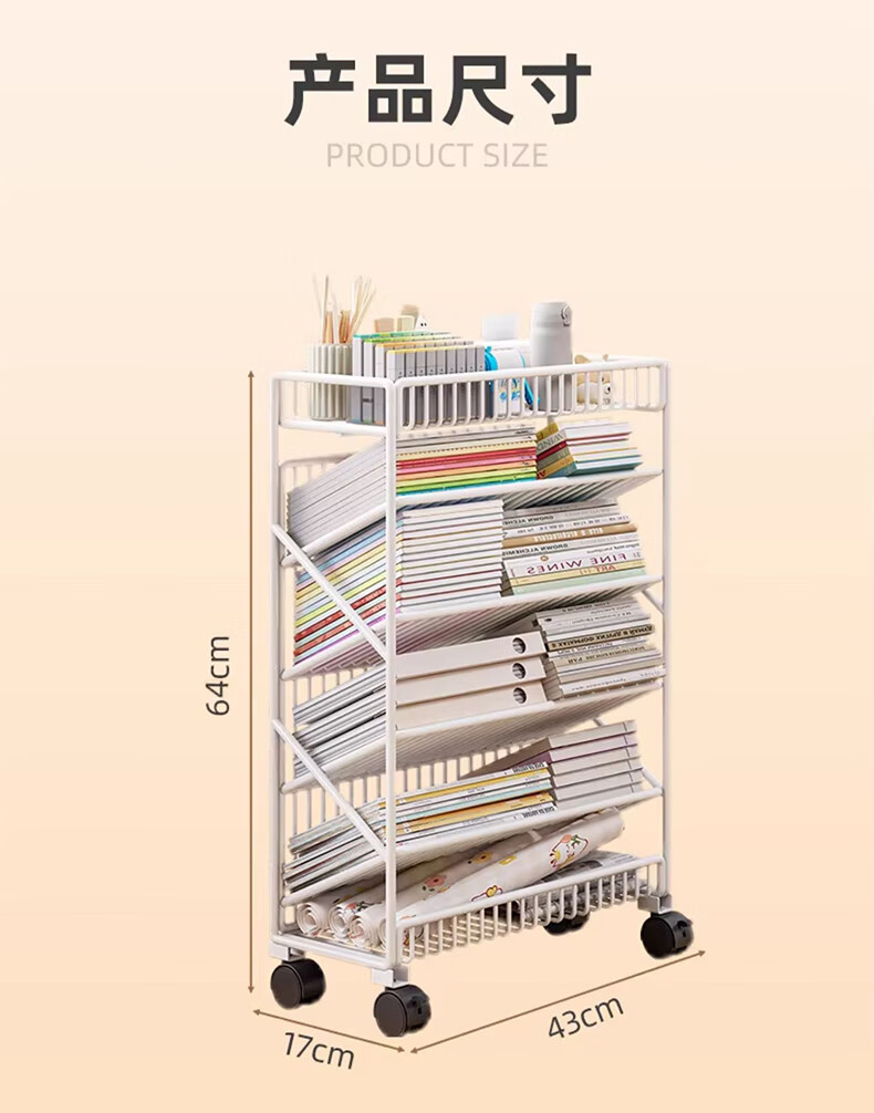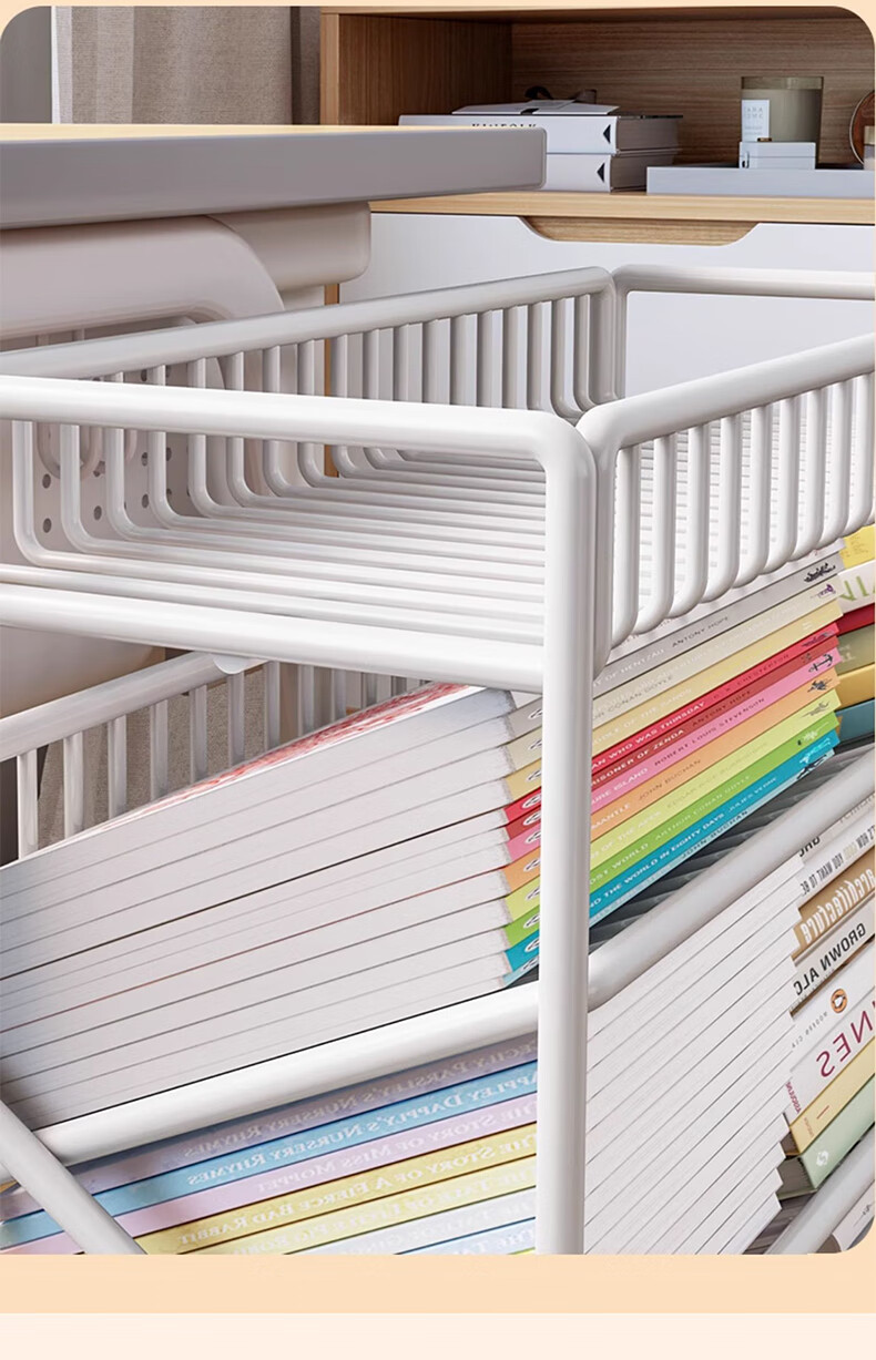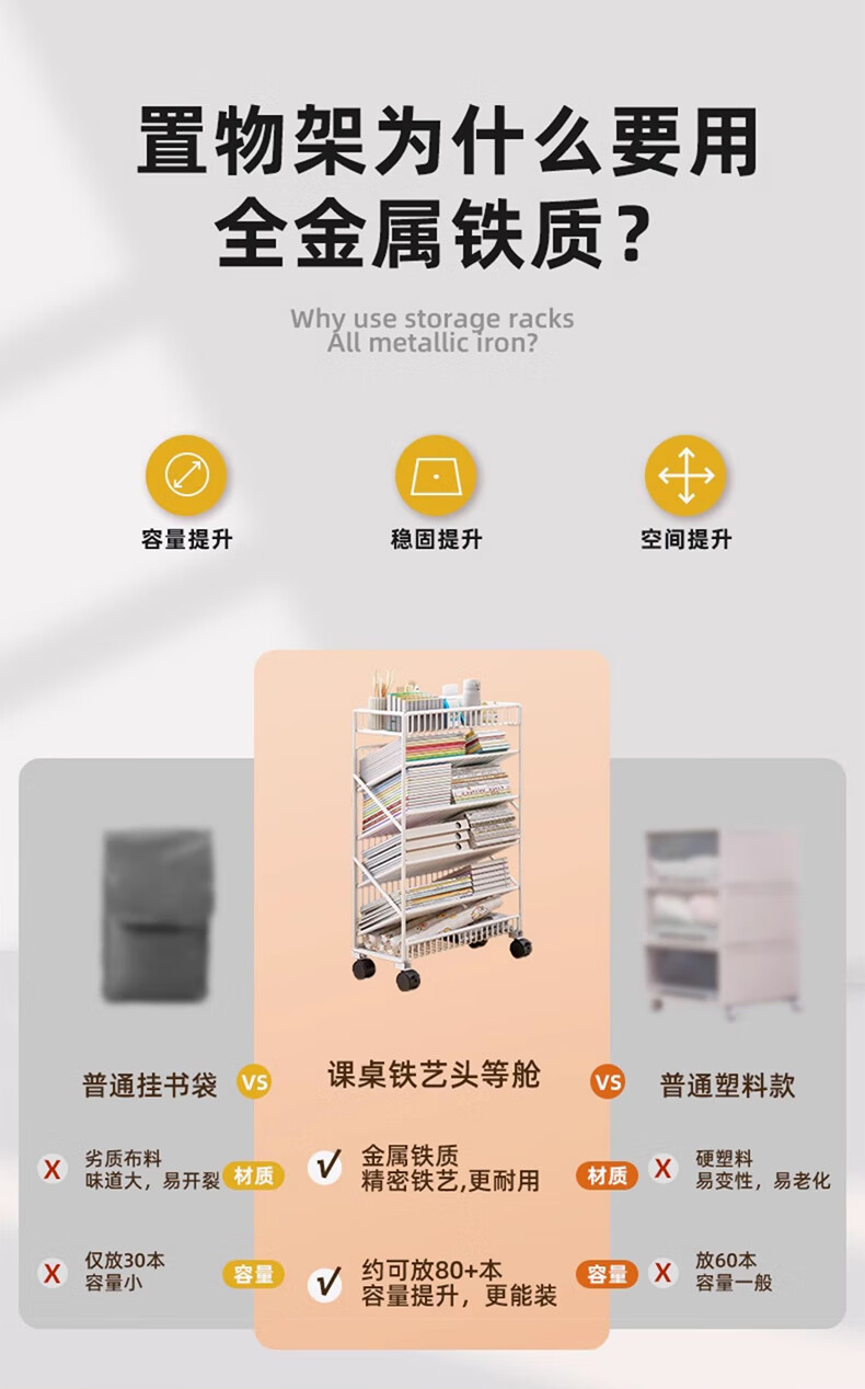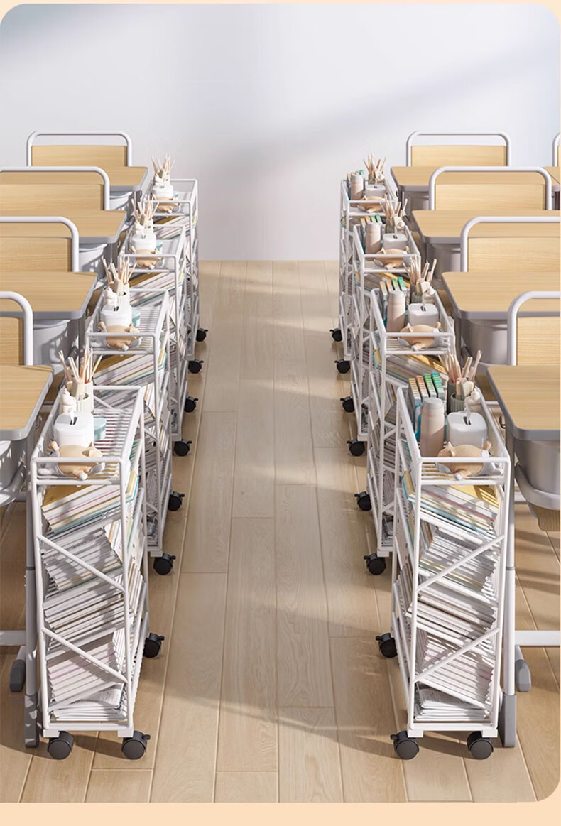 HALODN bookshelf movable tableside storage rack classroom desk for students to put books on the shelf with wheels, bookshelf, upgraded guardrail + pulleys*4, 6-layer black