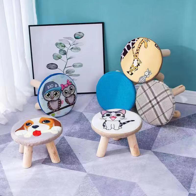 Household small stool mushroom stool fabric solid wood cartoon children's low stool adult coffee table living room bedroom shoe changing stool cute dog three legs