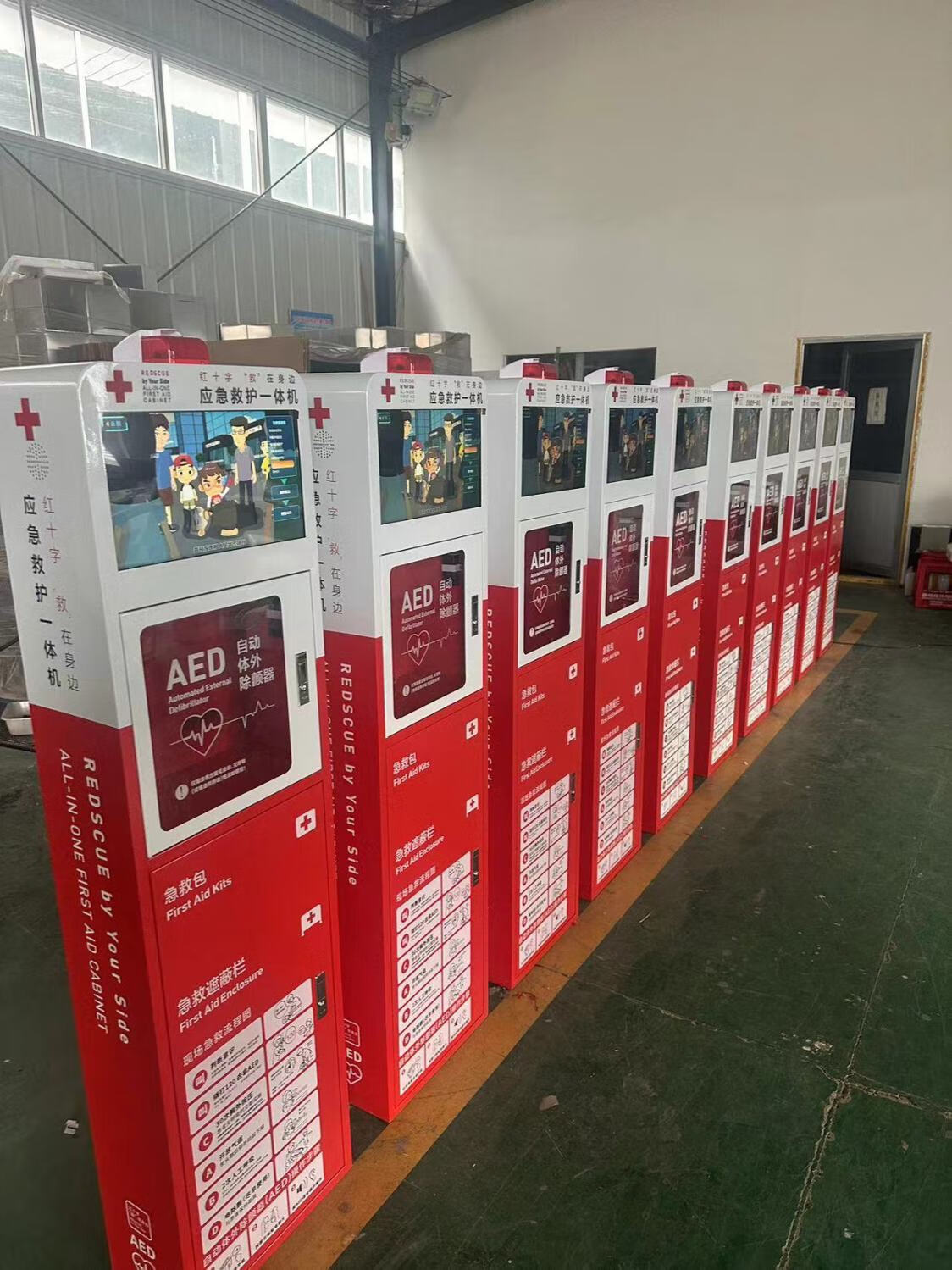 AED medical hanging box power on alarm 16.5 inch 32 inch 43 inch video capable medical chassis cabinet new vertical cabinet universal red