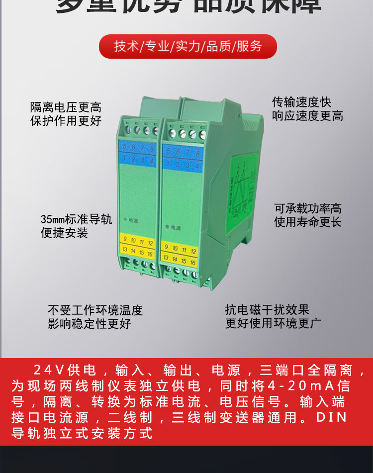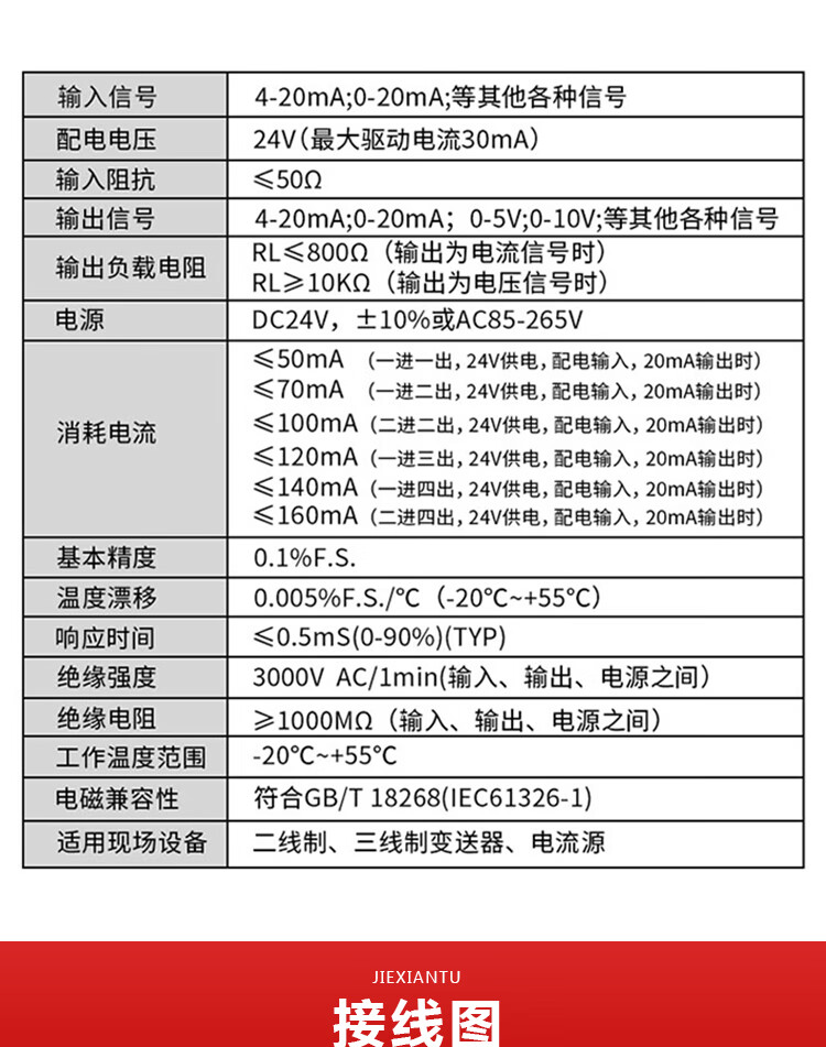 WS15242 signal isolator, one input and two outputs, 4-20mA current to voltage active and passive isolation safety barrier, 220V power supply, one input and two outputs isolator