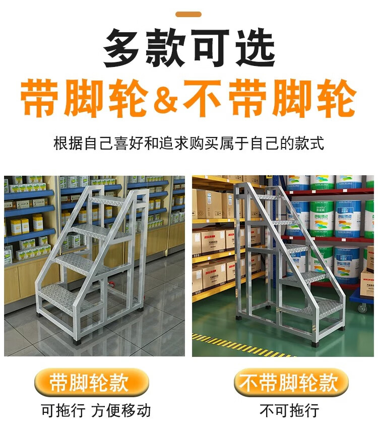 Stair step ladder, thickened mobile platform ladder, climbing ladder, engineering ladder, warehouse ladder, outdoor mobile three- or four-step ladder, customized size, contact customer service