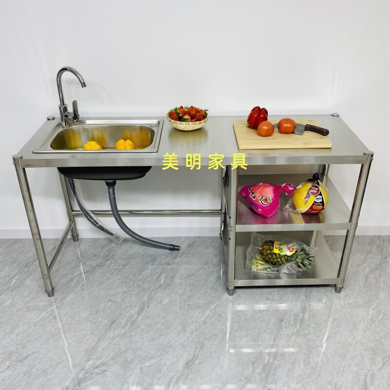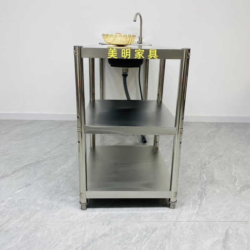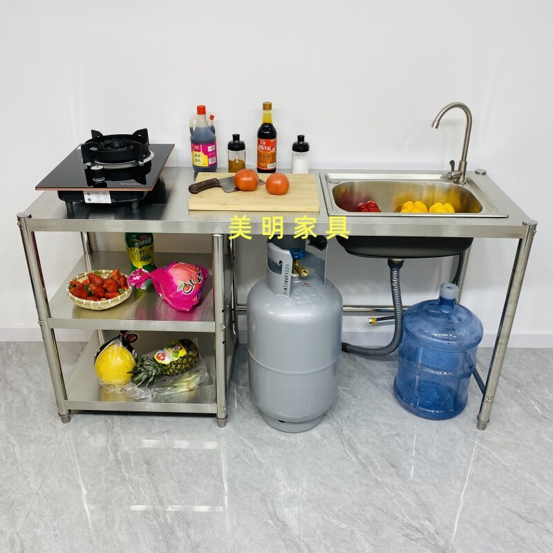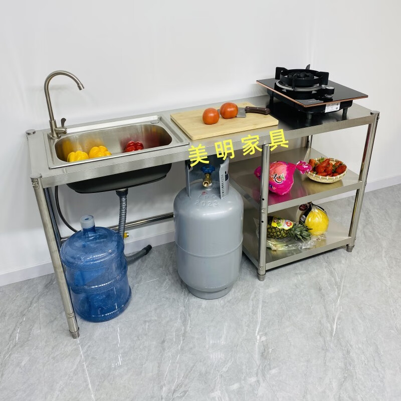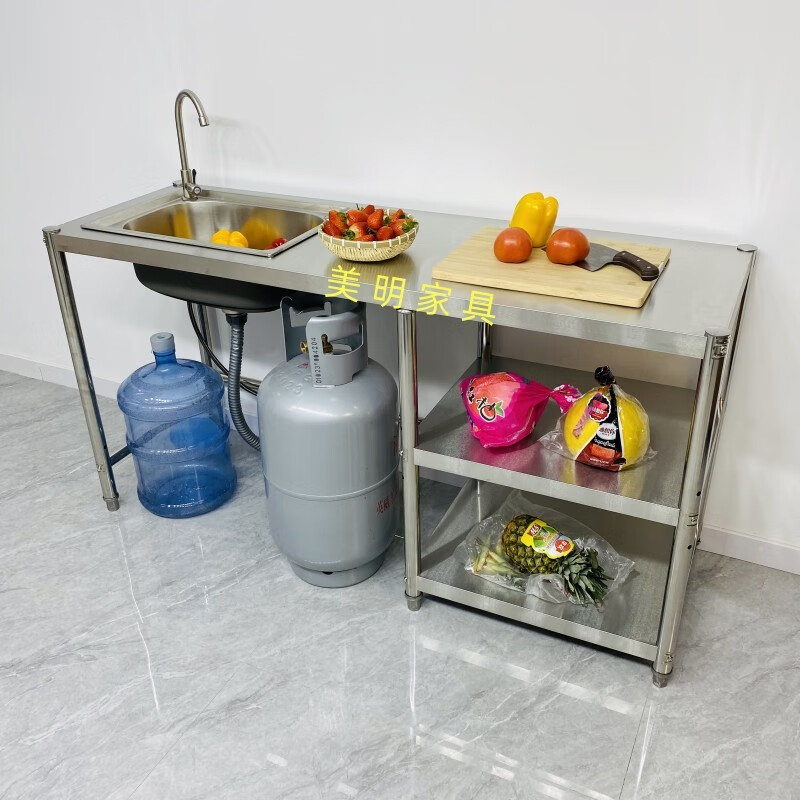 Ye Yu Kitchen Stainless Steel Sink Rack Rental Kitchen Stove Washing Bowl Pool Gas Stove Gas Tank Rack Three-story Height 80 There is a set of sinks Left pool Thickened Width 50 Length 150 Main picture size