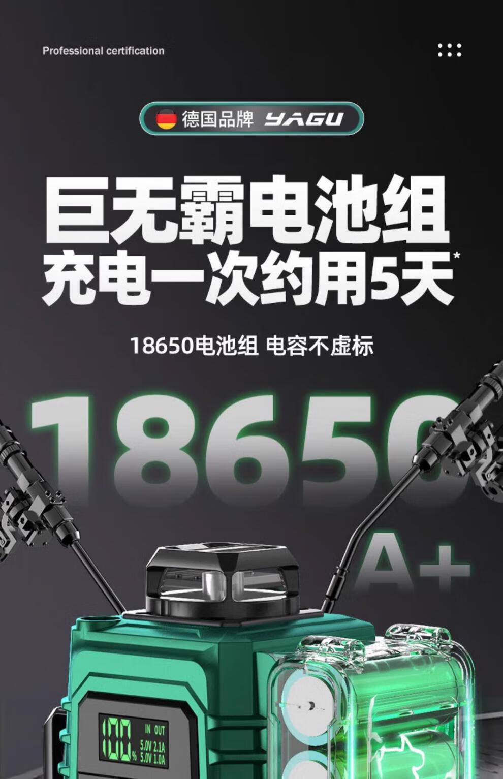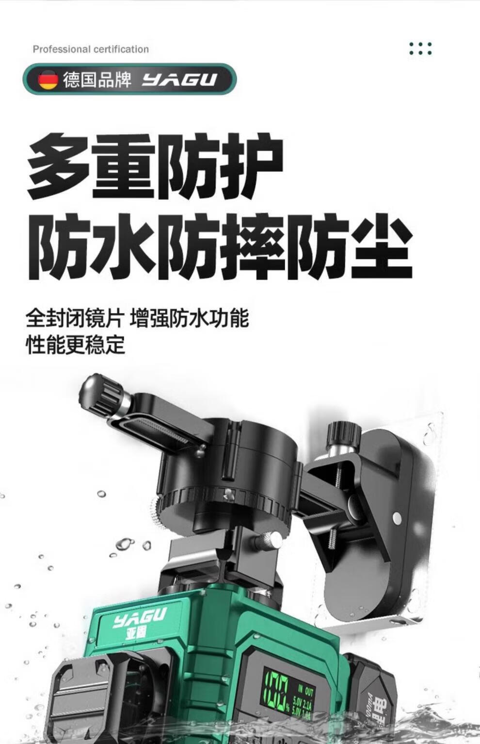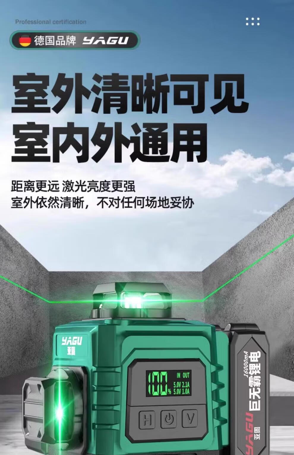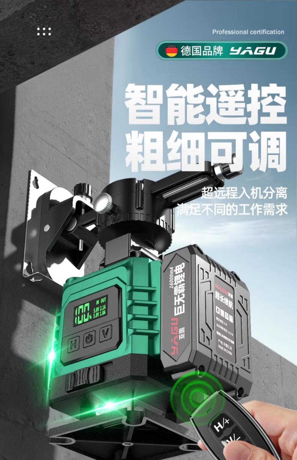 Yagu 12-line green light high-precision strong light fine line laser outdoor automatic leveling leveler German green light 12-line ultra-bright 16000mA dual