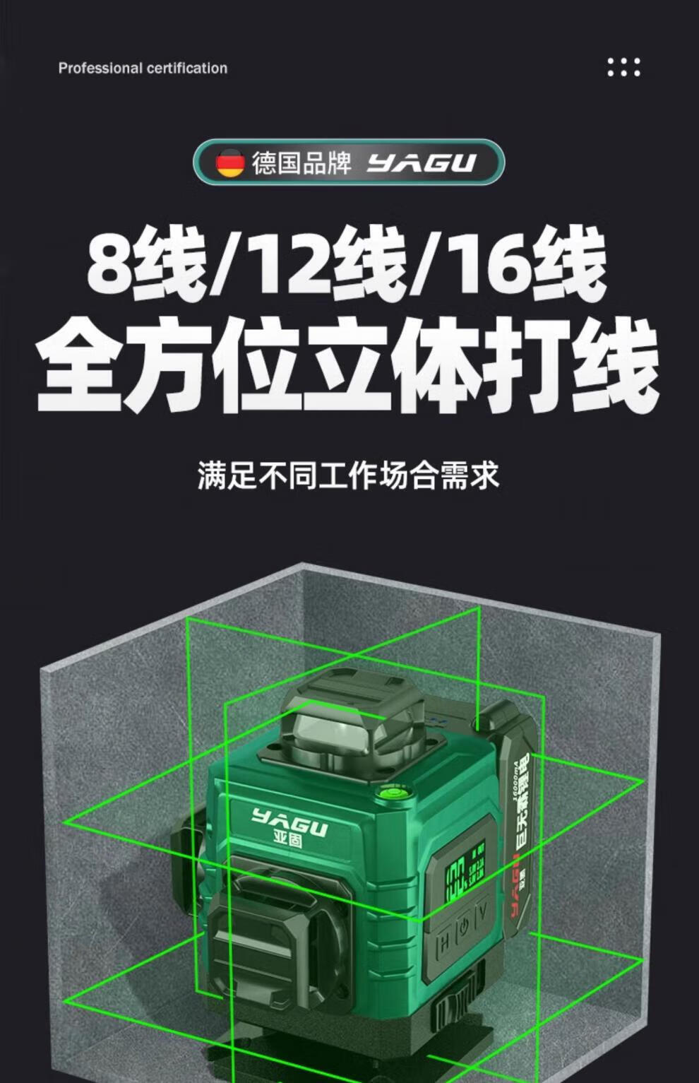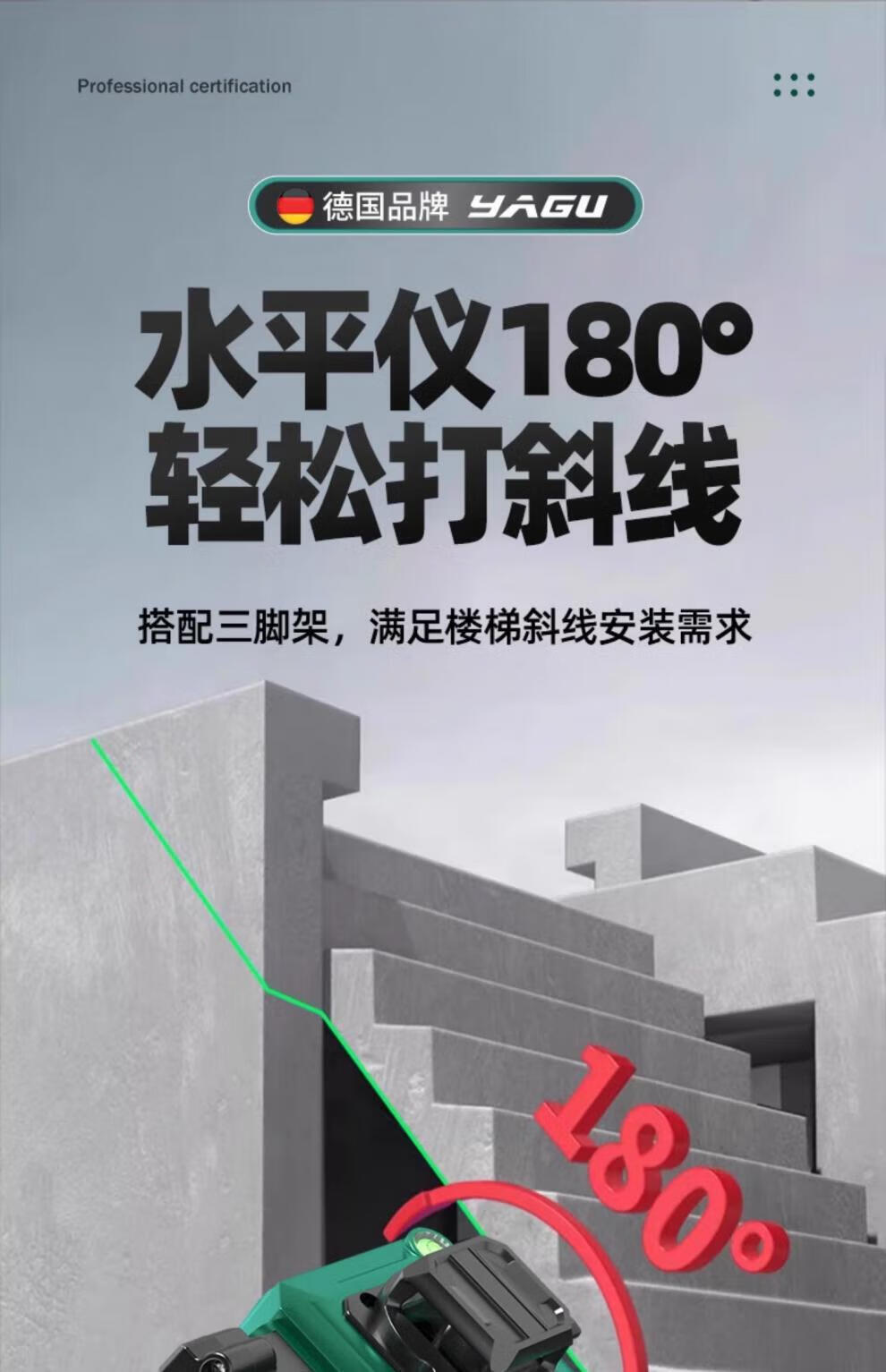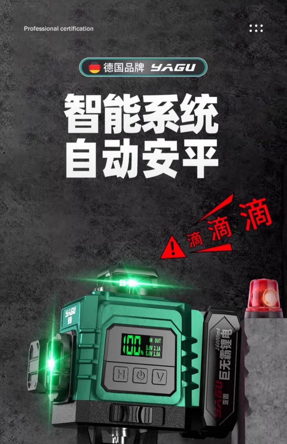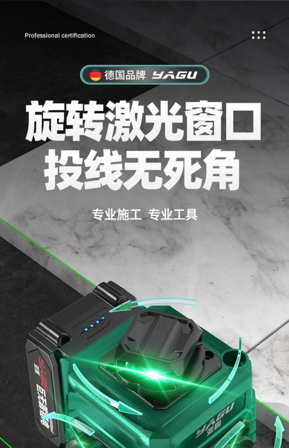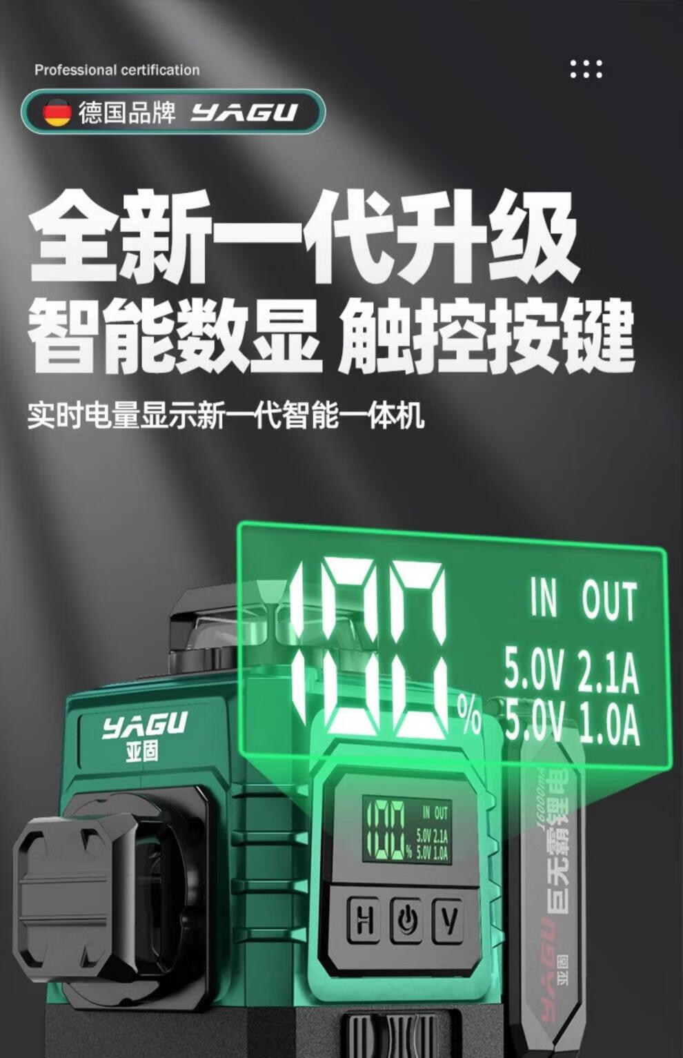 Yagu 12-line green light high-precision strong light fine line laser outdoor automatic leveling leveler German green light 12-line ultra-bright 16000mA dual