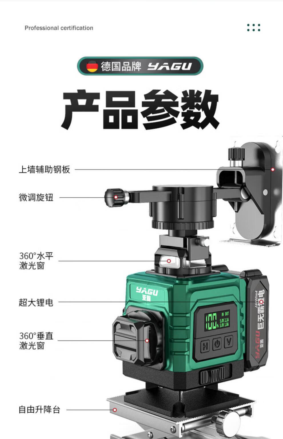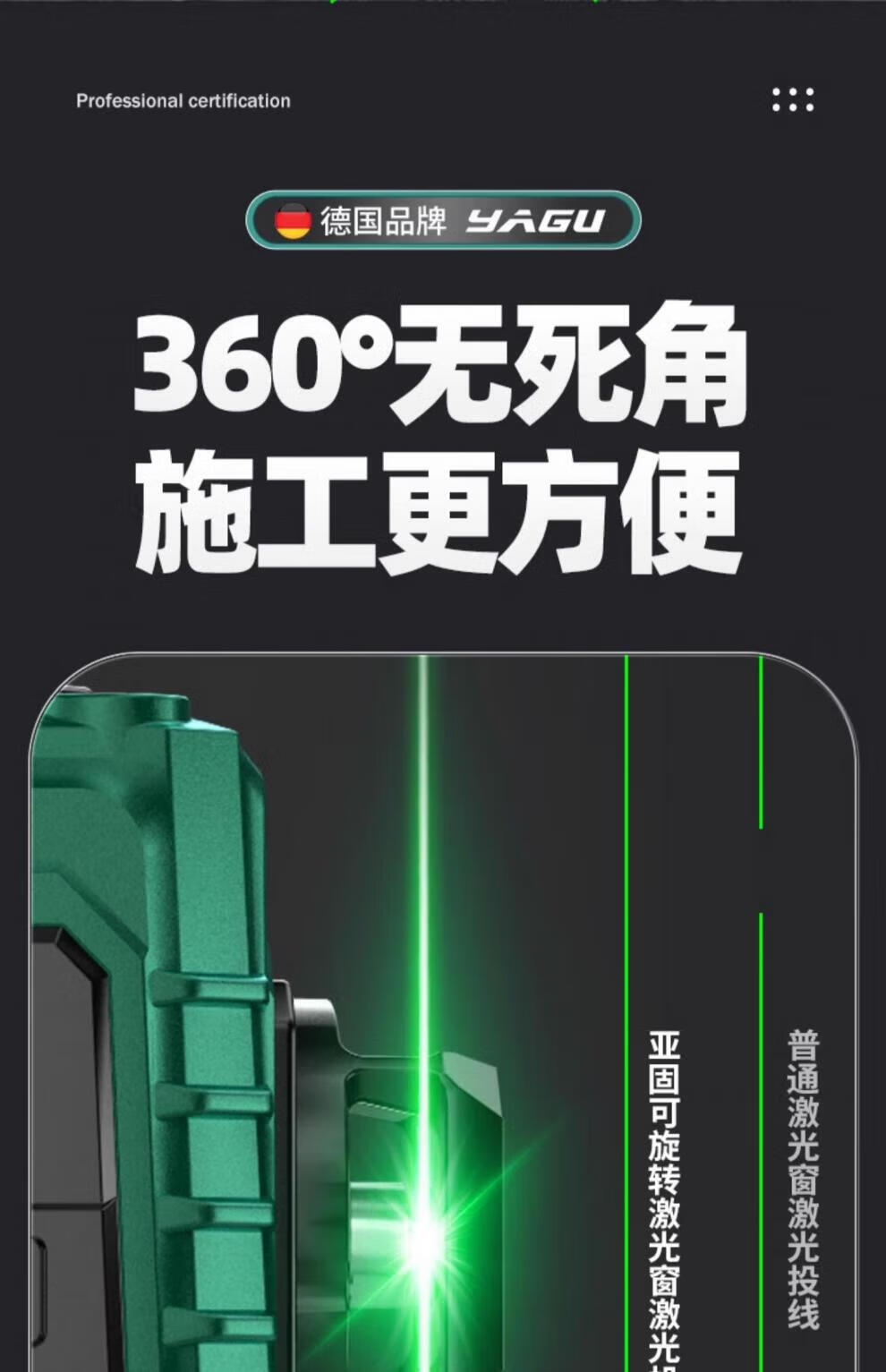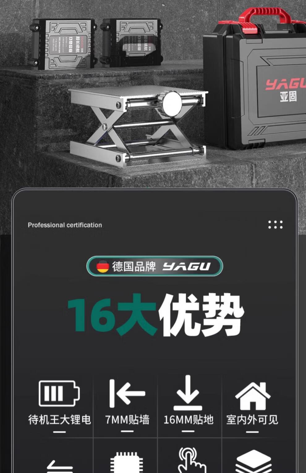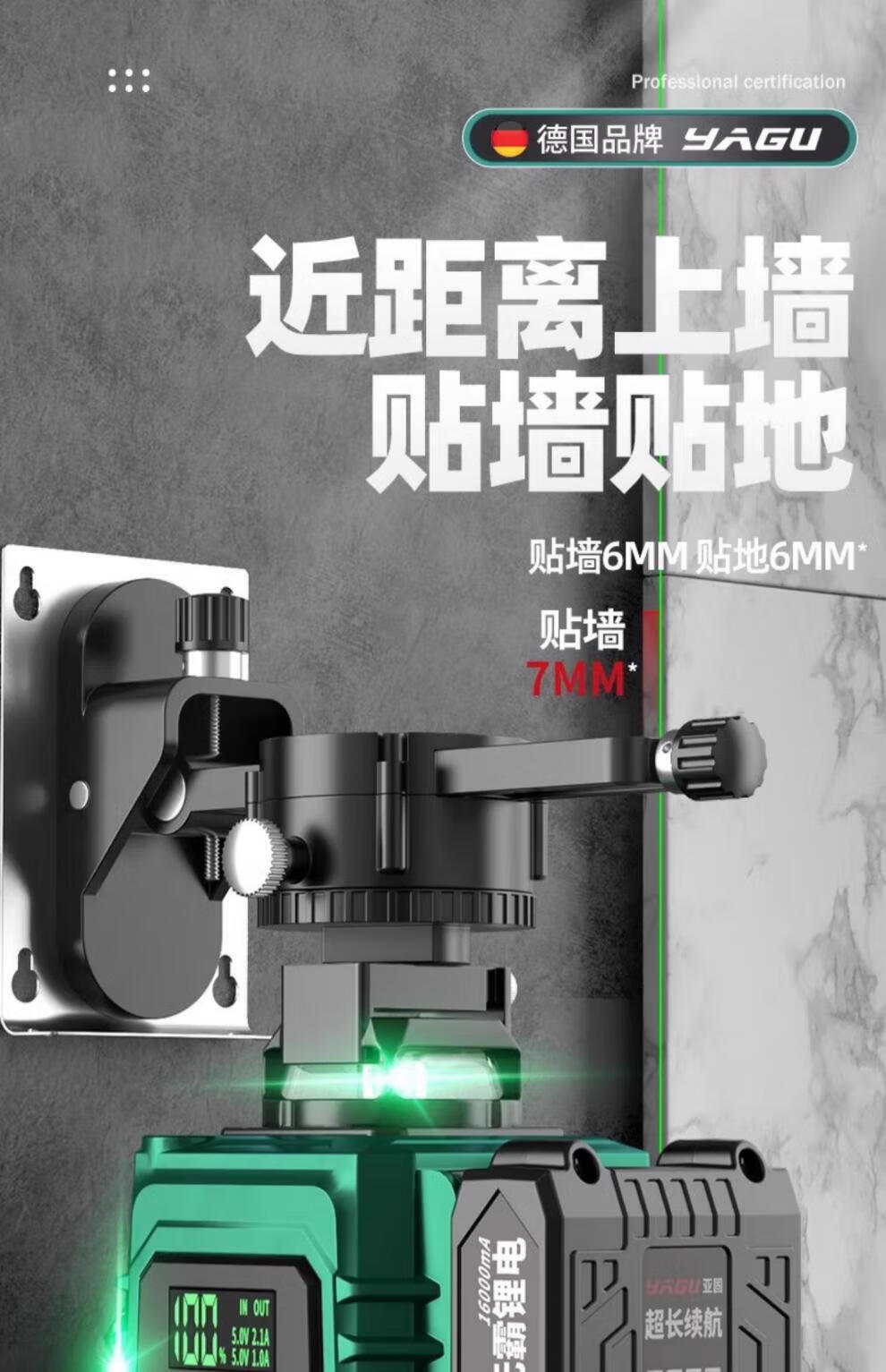 Yagu 12-line green light high-precision strong light fine line laser outdoor automatic leveling leveler German green light 12-line ultra-bright 16000mA dual