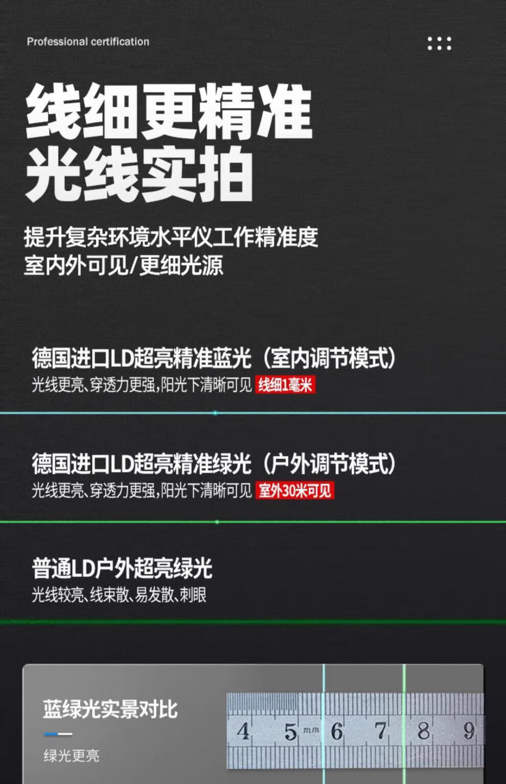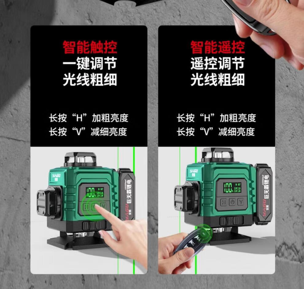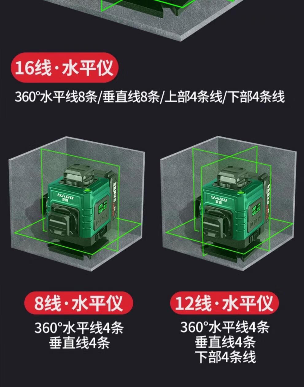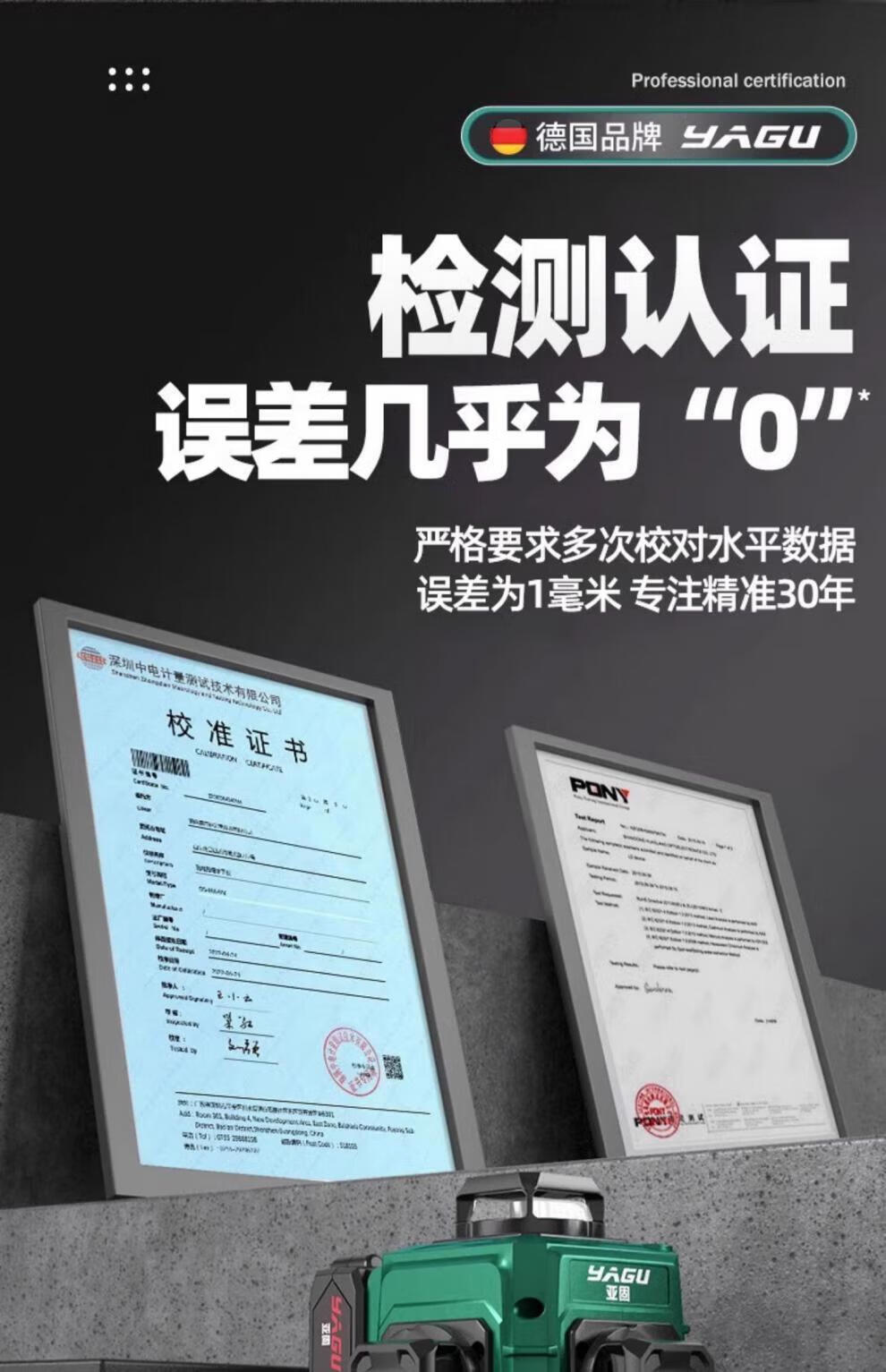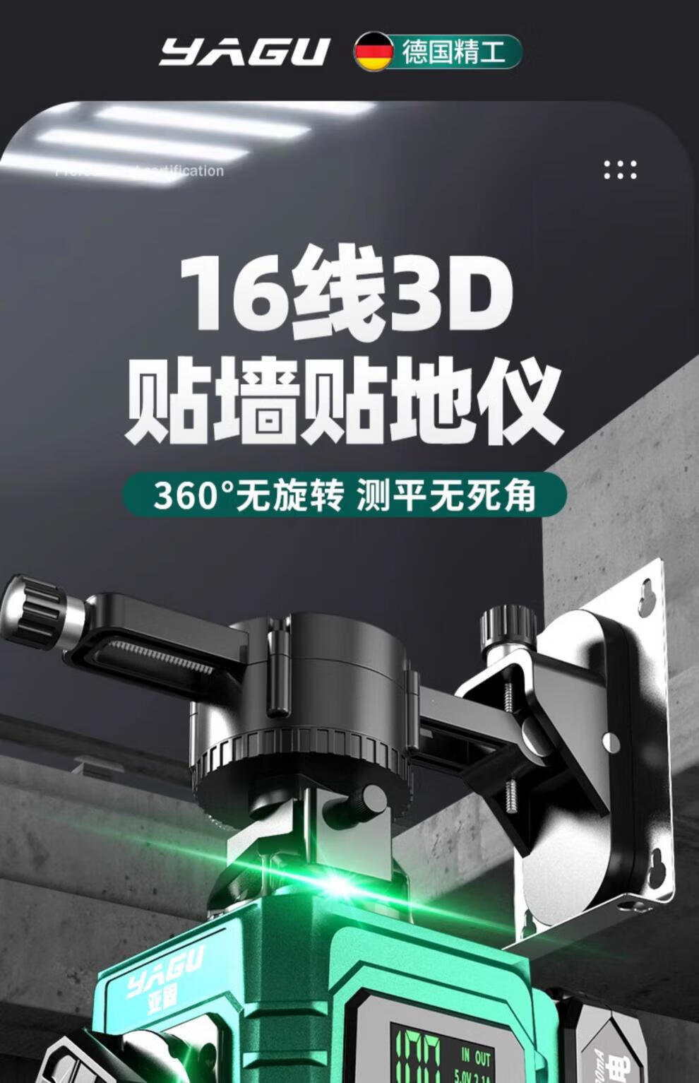 Yagu 12-line green light high-precision strong light fine line laser outdoor automatic leveling leveler German green light 12-line ultra-bright 16000mA dual