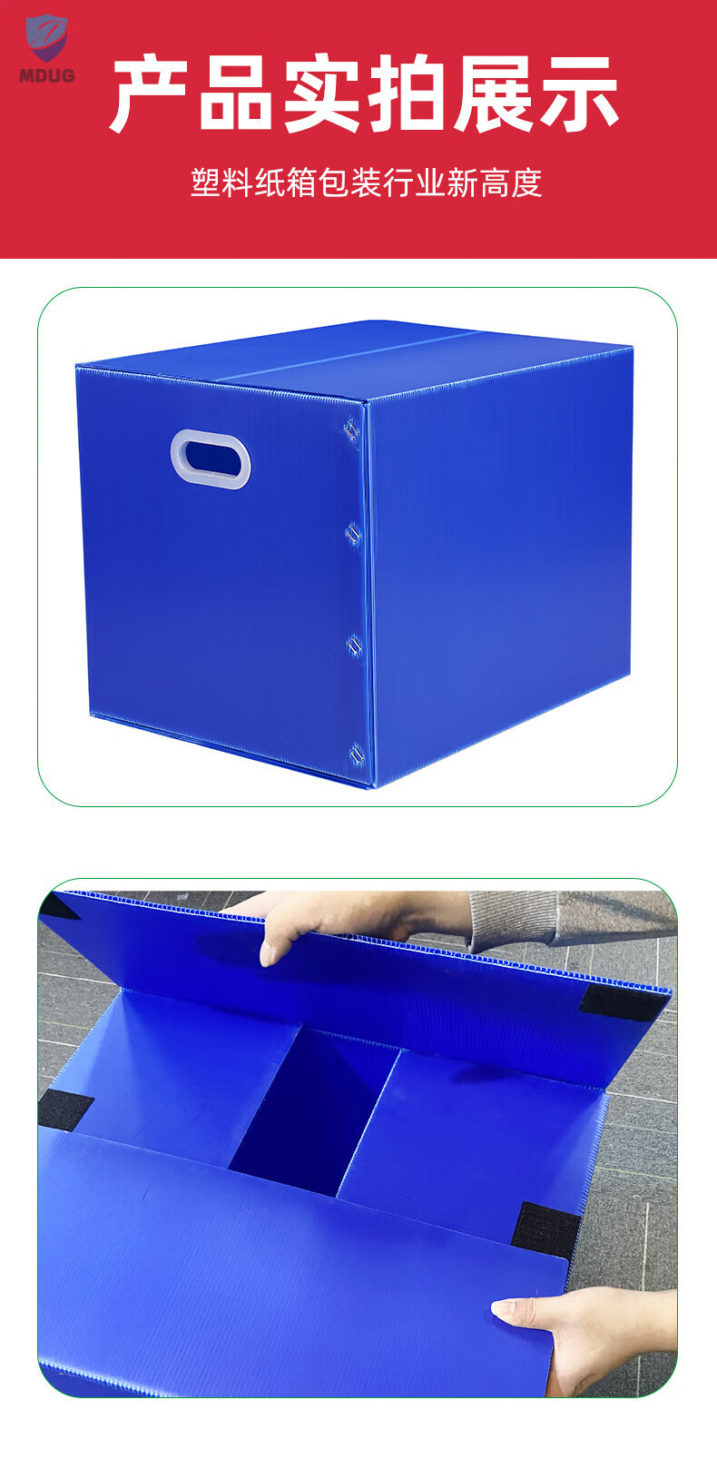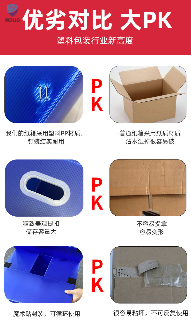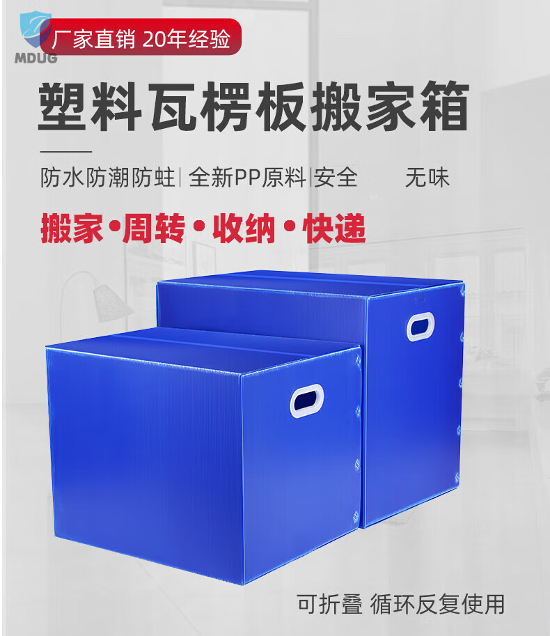 Large-capacity plastic moving artifact storage box foldable and reusable hollow corrugated board turnover box blue 5-pack 70x50x50CM Velcro style tape-free
