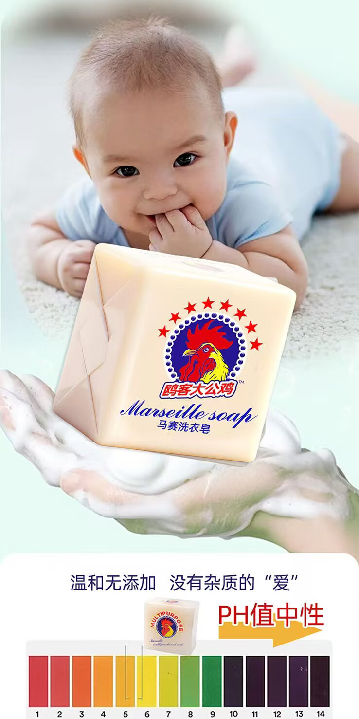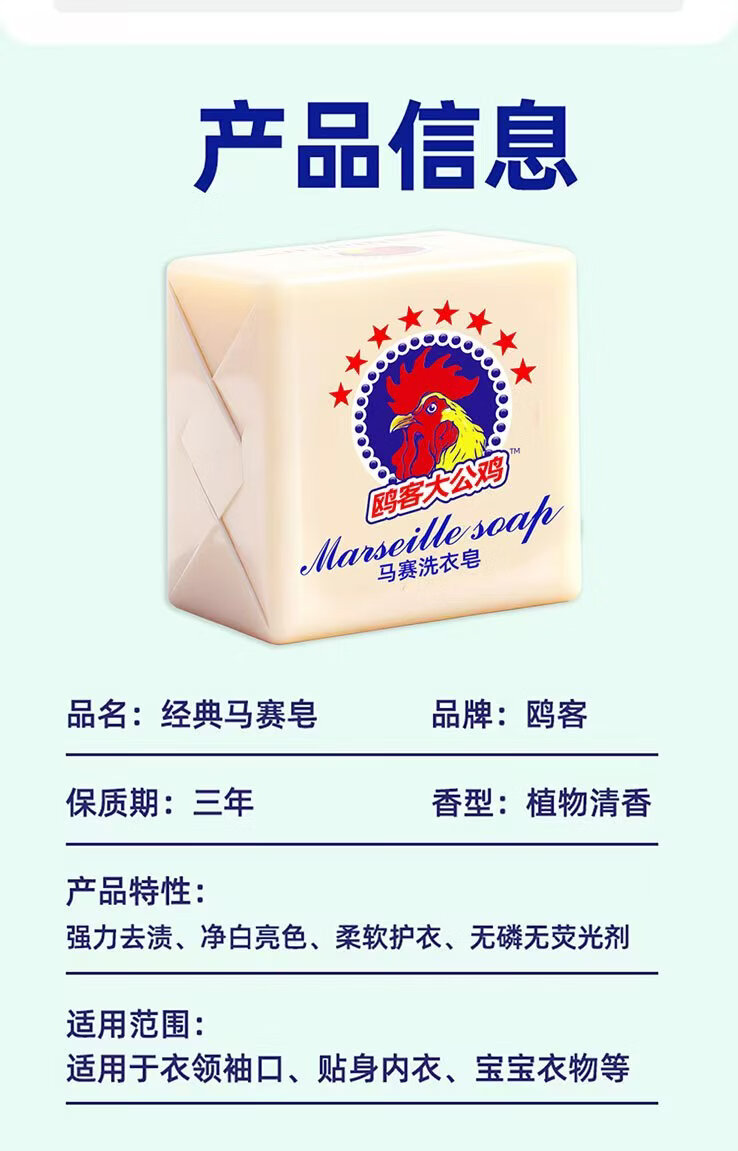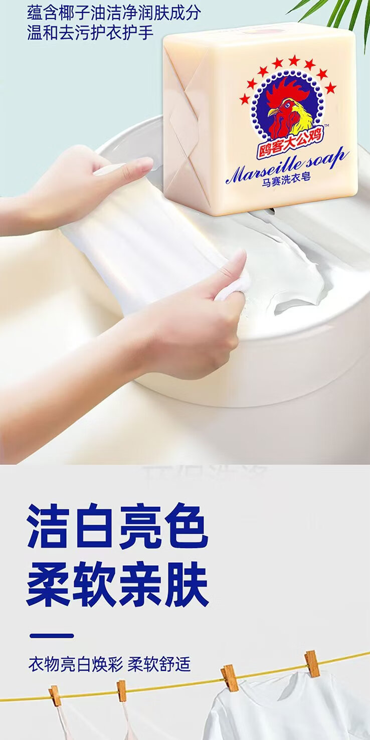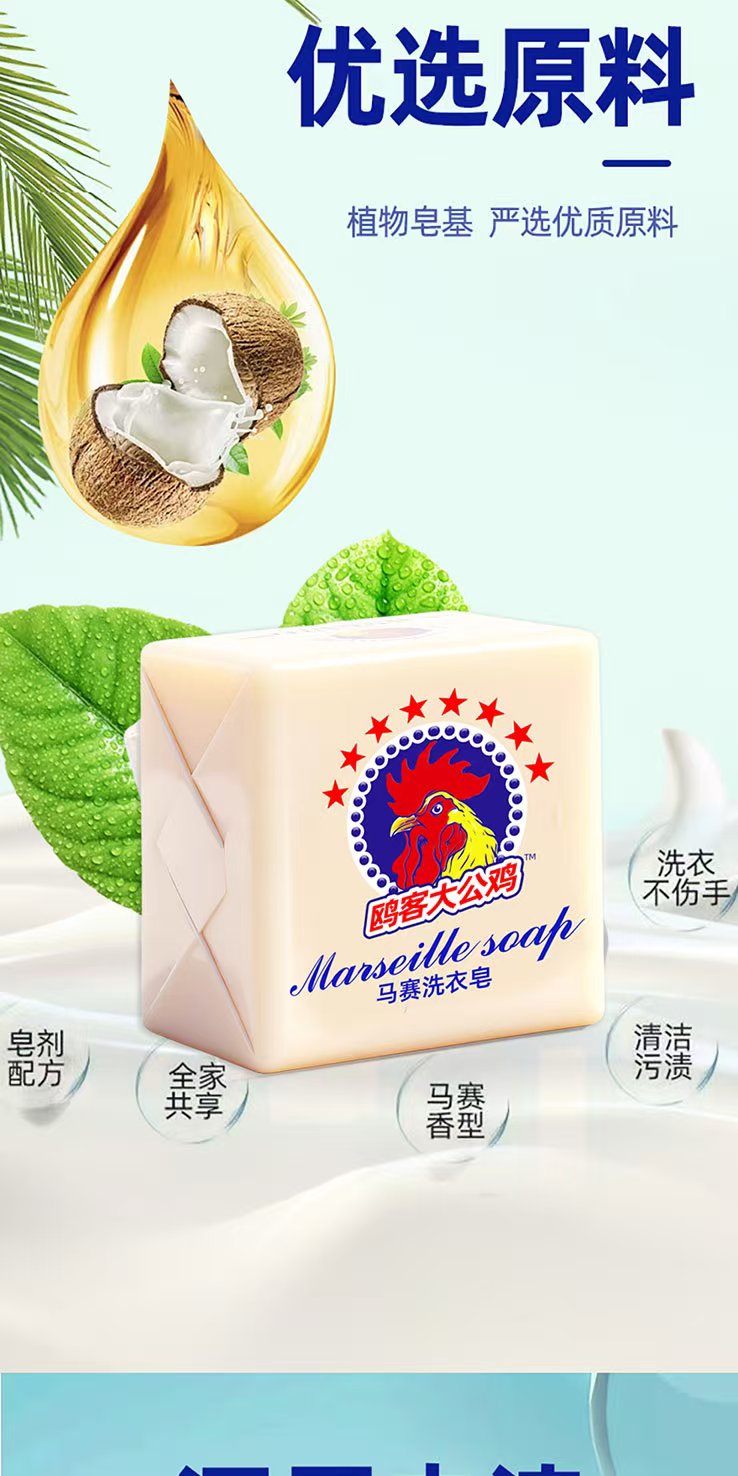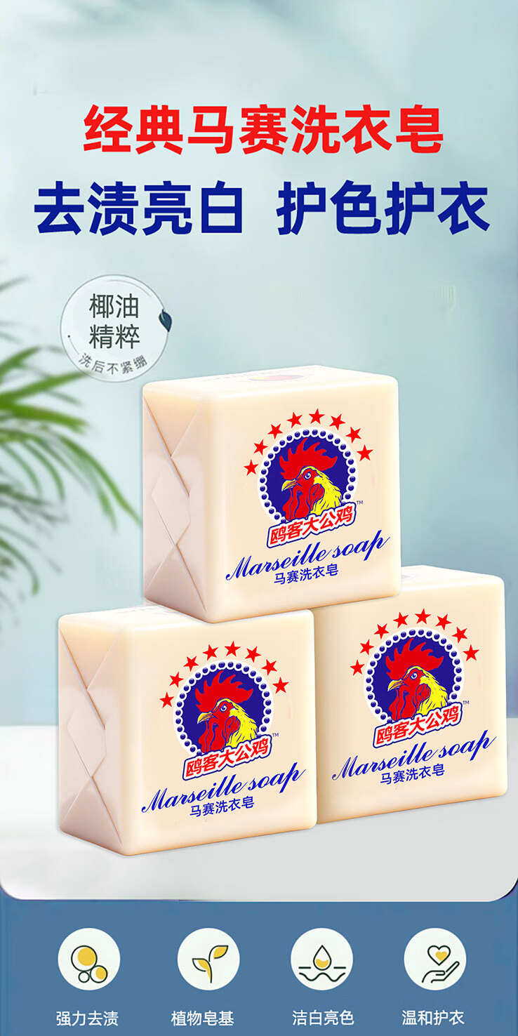 Rooster head laundry soap soap 300g strong decontamination underwear soap children's soap natural white preferred quality 300g*3 pieces