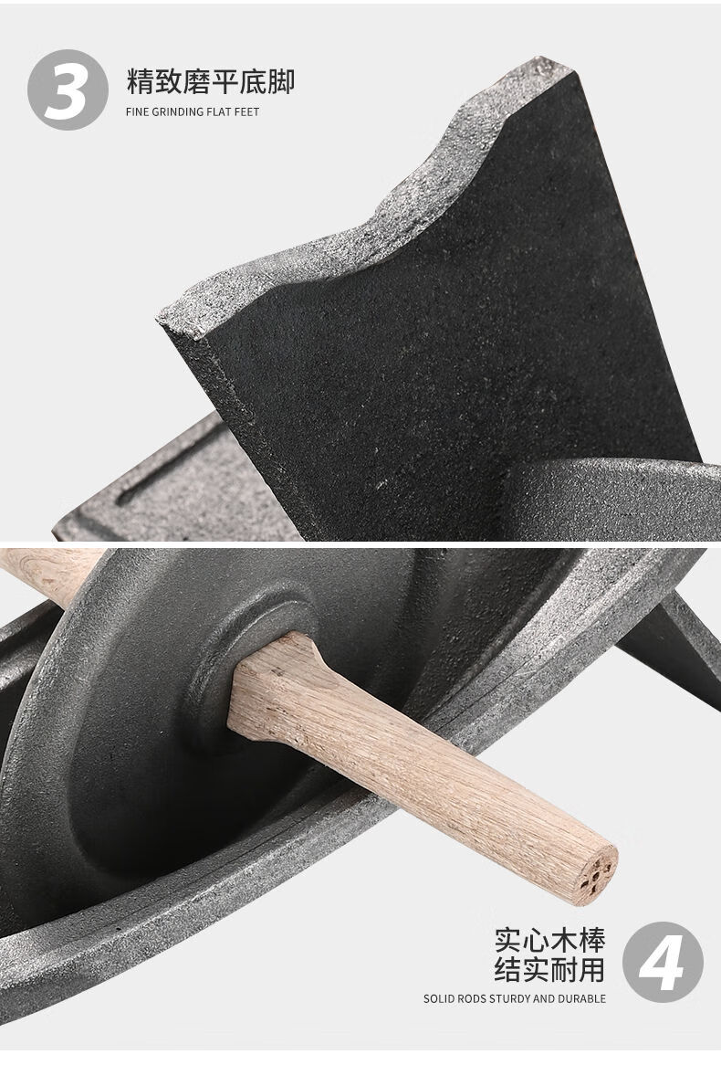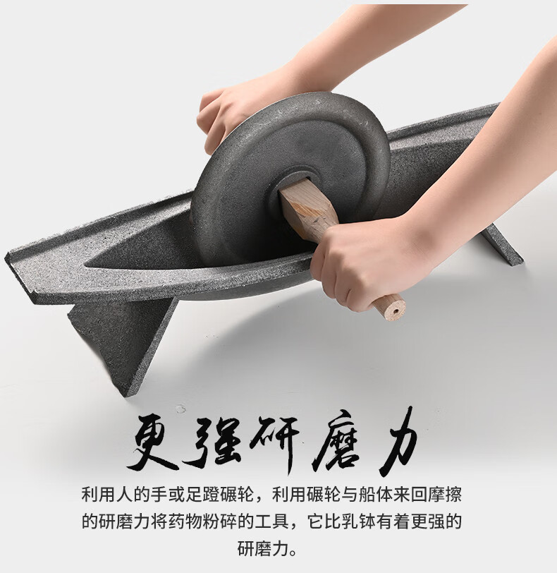Baiyada Chinese medicine roller, medicine grinding groove, medicine ship, cast iron medicine twister, groove tool crusher, old-fashioned pig iron manual grinder, extended 52cm*14cm, thickened and weighted wheel, 6 kg wooden stick