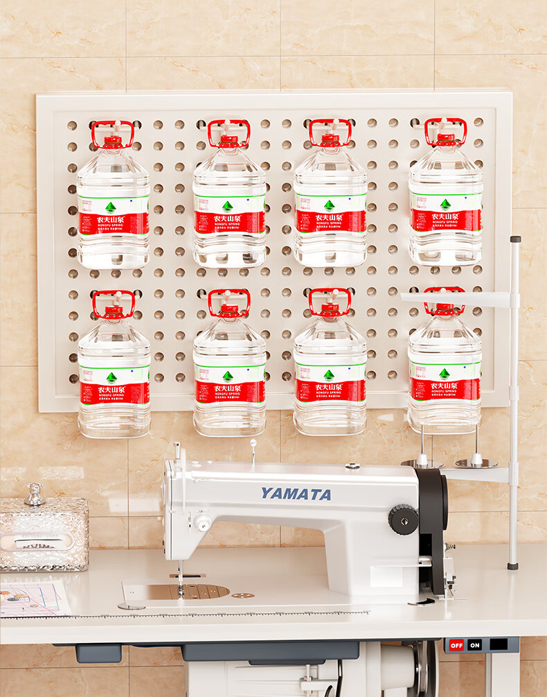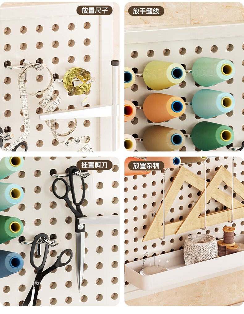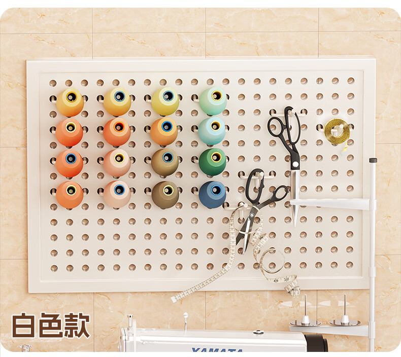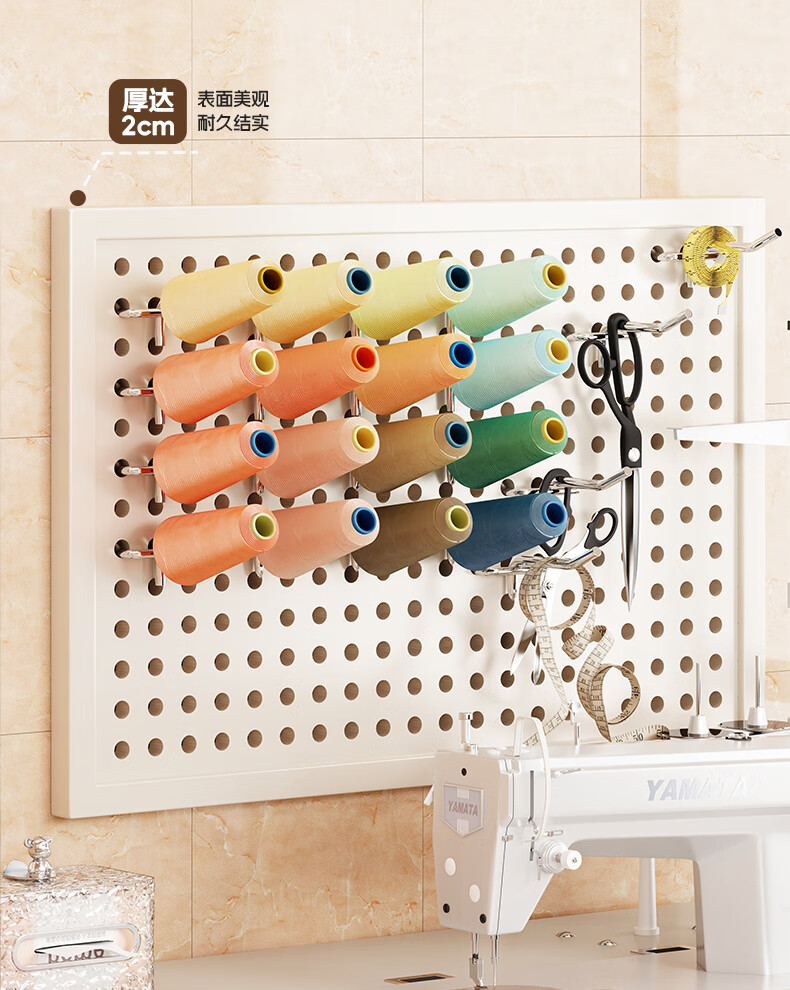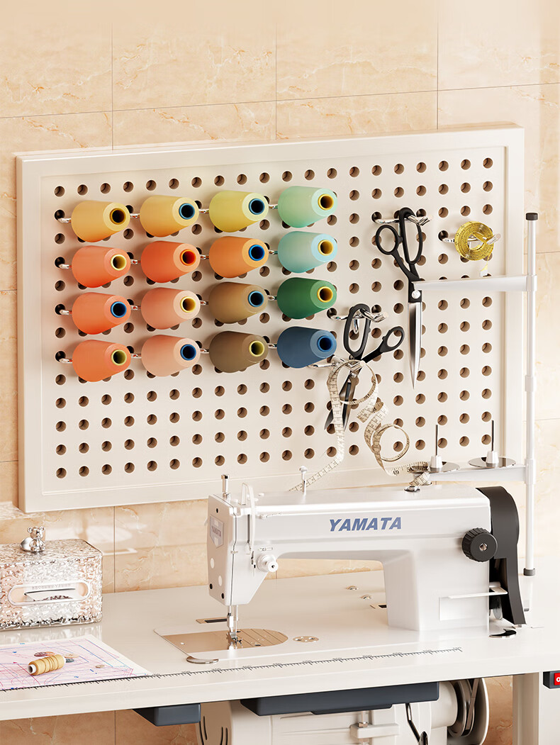 Wooden grid sewing machine thread rack wall hole board storage hanging board wrought iron punching board household woolen ball pagoda thread placement rack warm white with frame thickened version 100*50