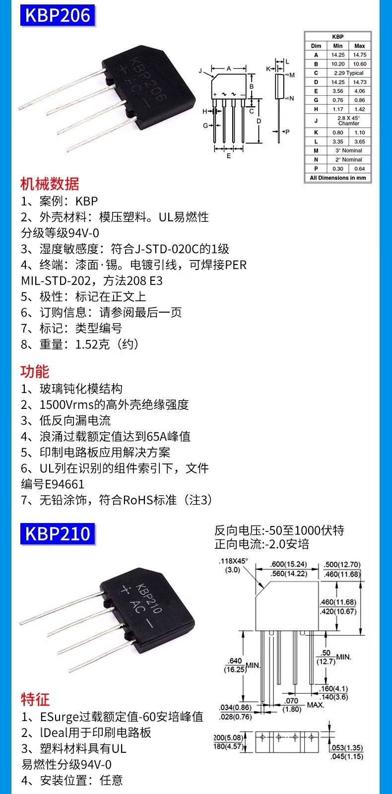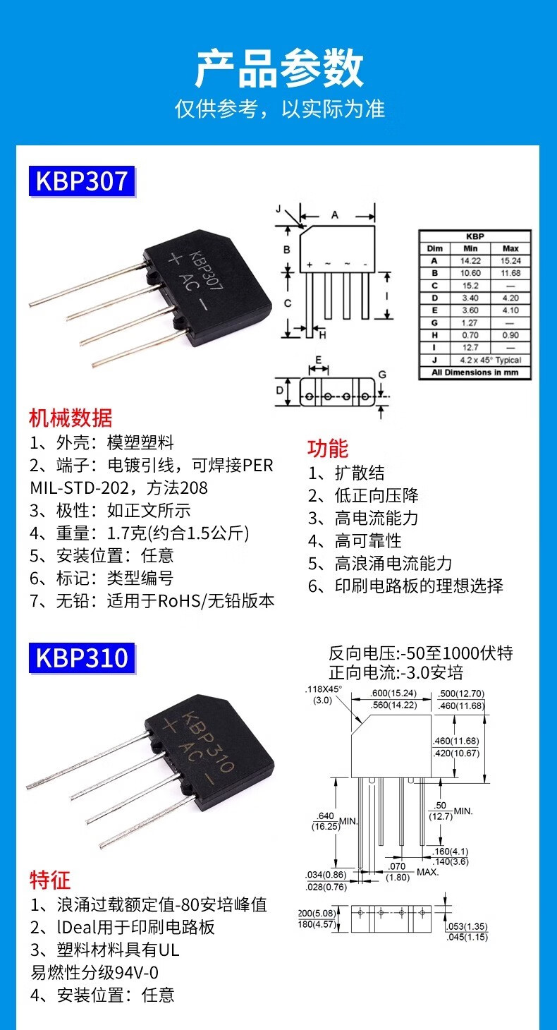 Rectifier bridge KBP307/310/206/210 2A3A KBU808/1510 RS507 flat bridge rectifier KBP310 (5 pieces)